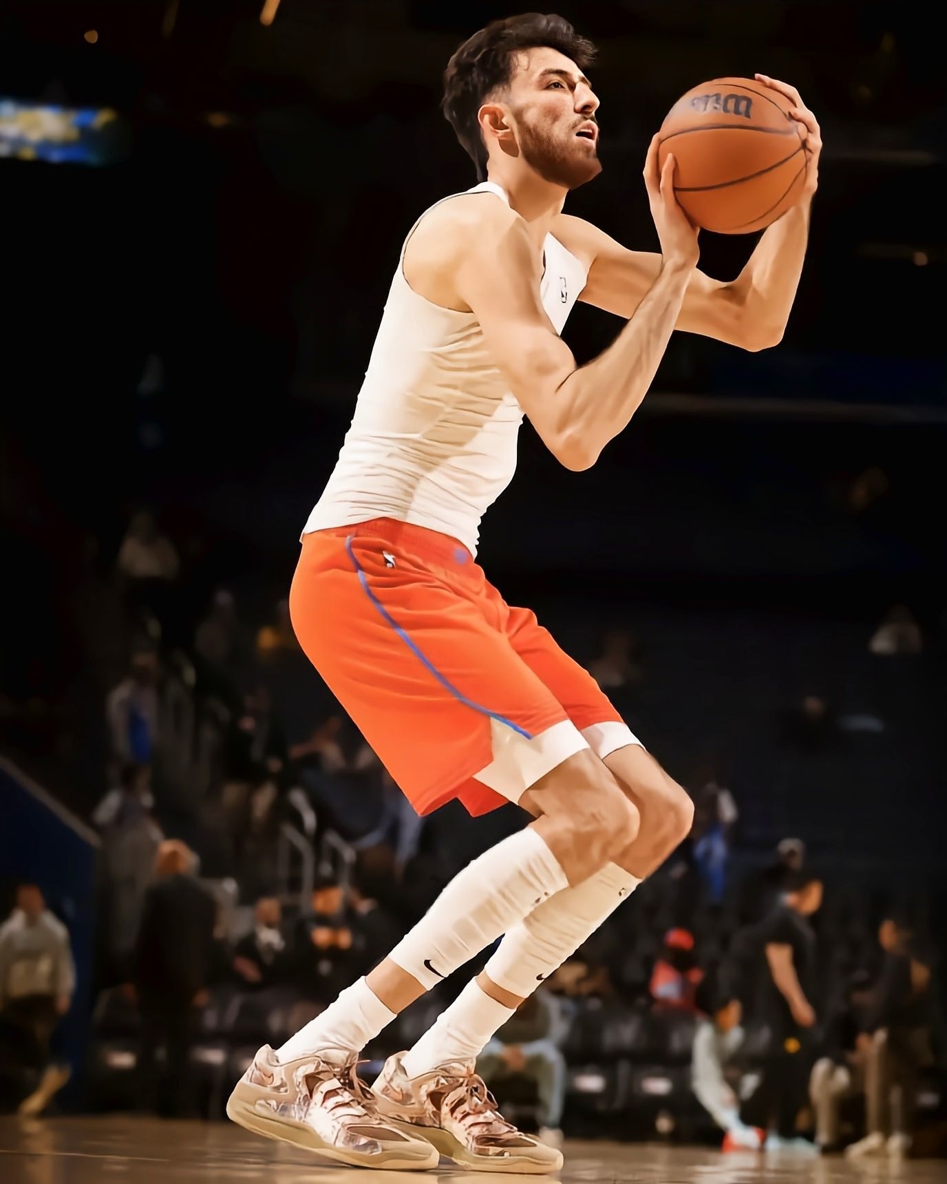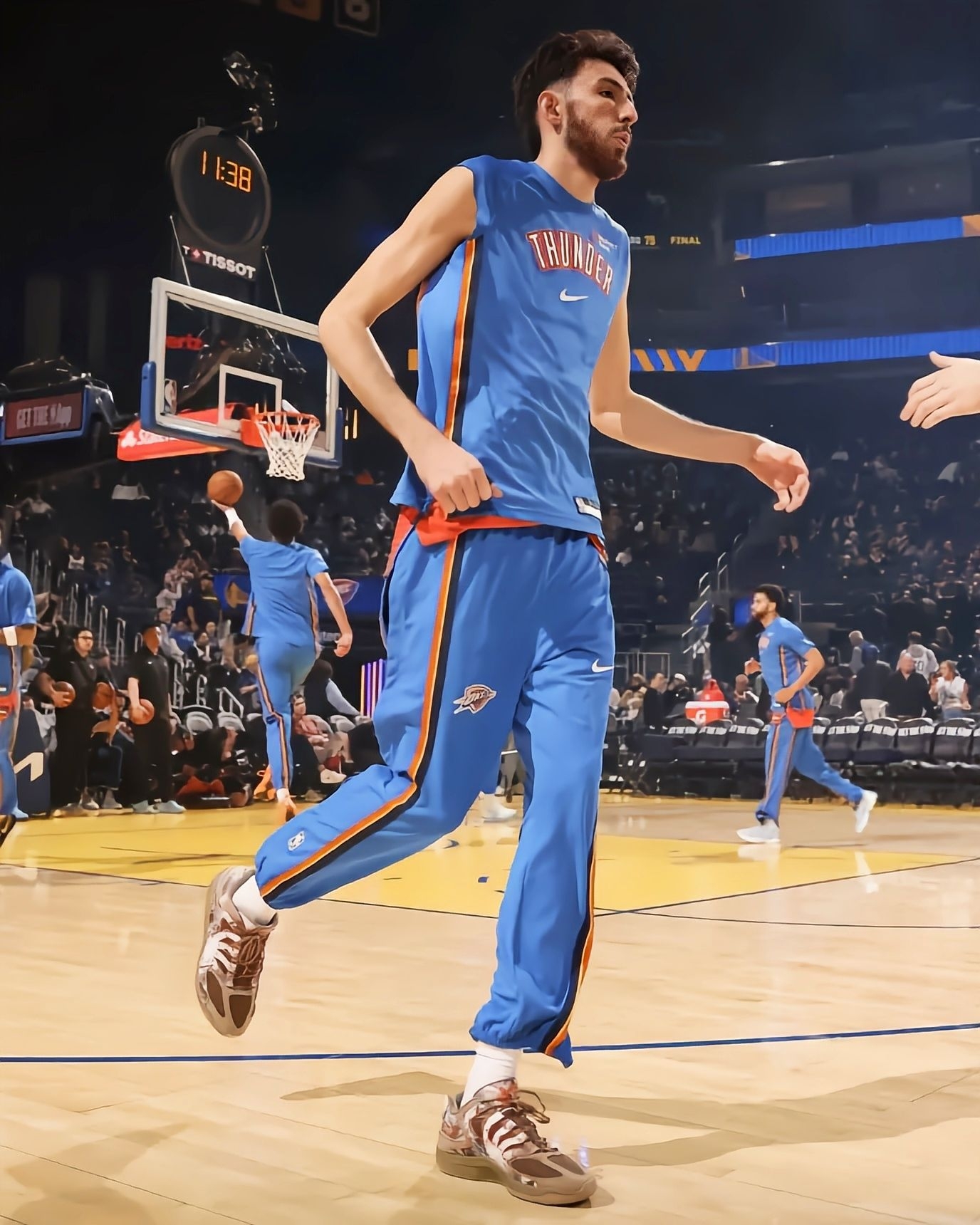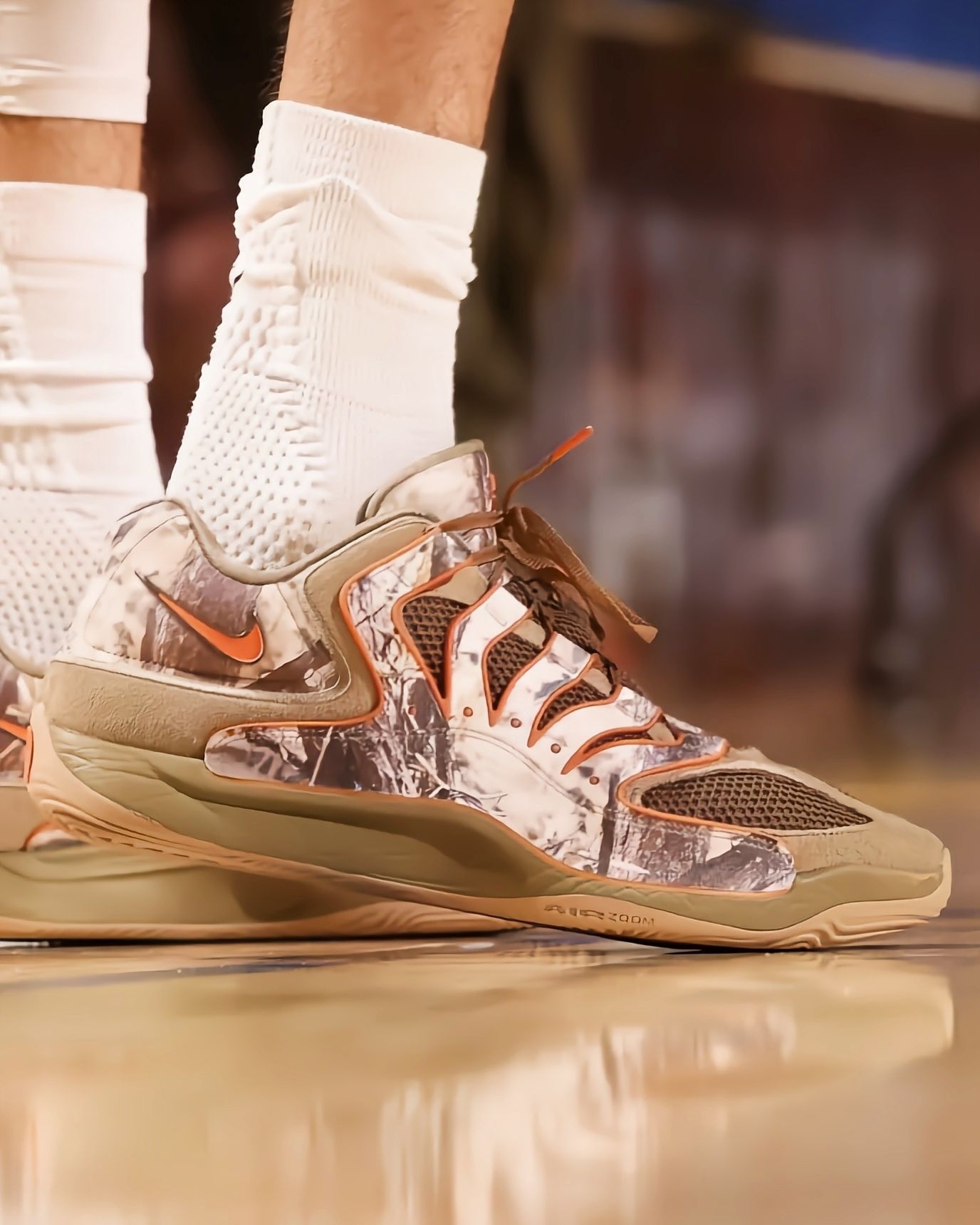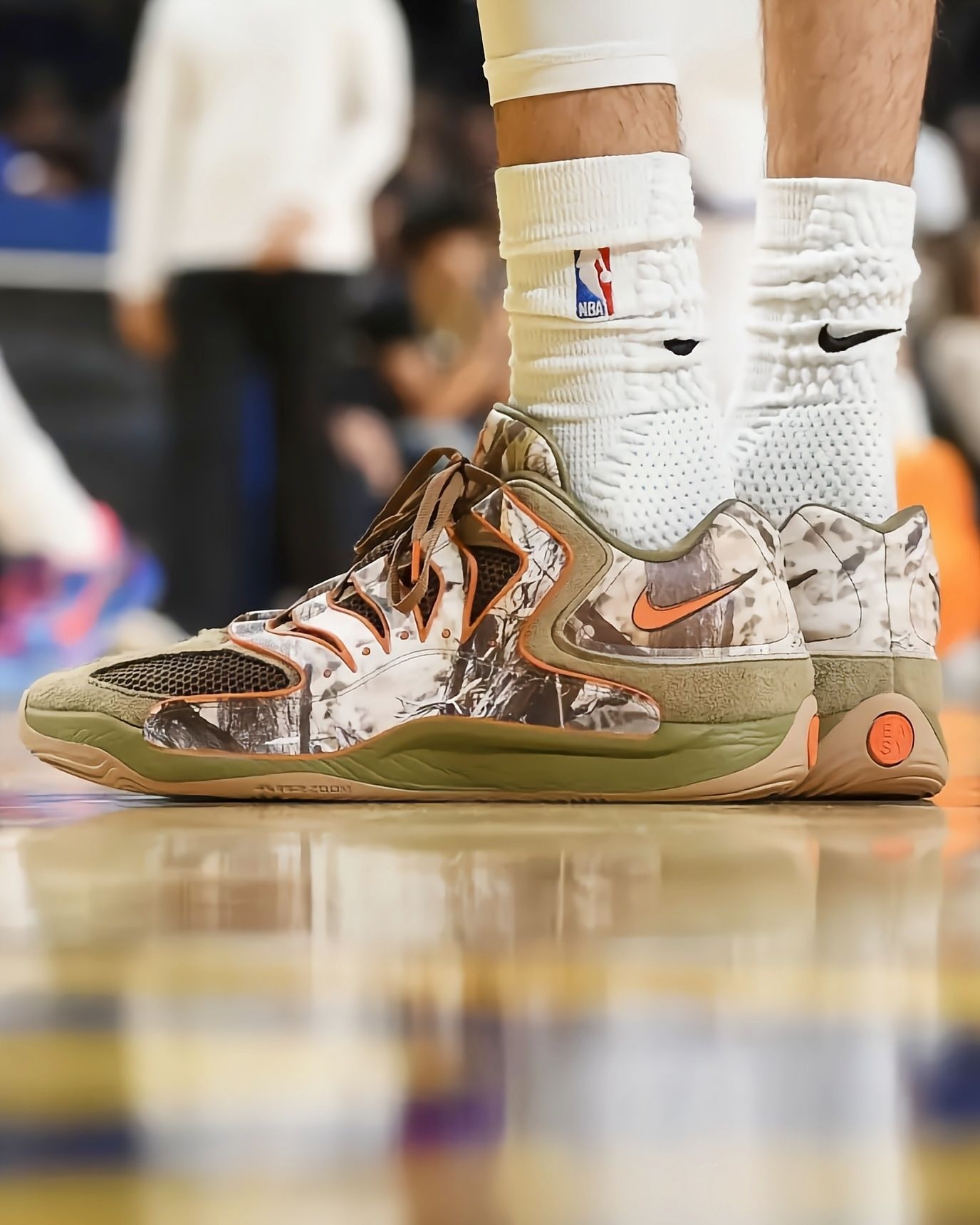 最近看雷霆比赛,总能被切特脚上这双落叶迷彩KD18 PE吸引,关键这鞋现在还买不到,要等到明年春天才正式发售,真的越看越期待!先说说从比赛里观察到的实战表现:切特作为瘦高型锋线,频繁要做变向突破和急停跳投,这鞋的中足TPU笼结构是真顶用,好几次对抗中他侧身发力,鞋身都没出现变形,支撑性肉眼可见靠谱。前掌Zoom气垫的反馈特别直接,他快攻时的蹬地加速,能感觉到气垫瞬间回弹,完全不拖启动节奏,比上一代...