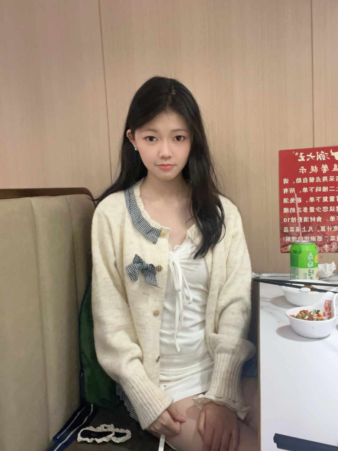身高|体重:158 80 🧍♂️ 穿搭风格:韩系 👔 上衣:针织开衫外套➕蕾丝花边小吊带 👖 下装:白色半身裙 一套下来巨好看 无敌显瘦! 大家一定要去尝试一下这样搭配 这个毛衣开衫外套配啥都特别有氛围感 👟 鞋子: 🎒配饰: