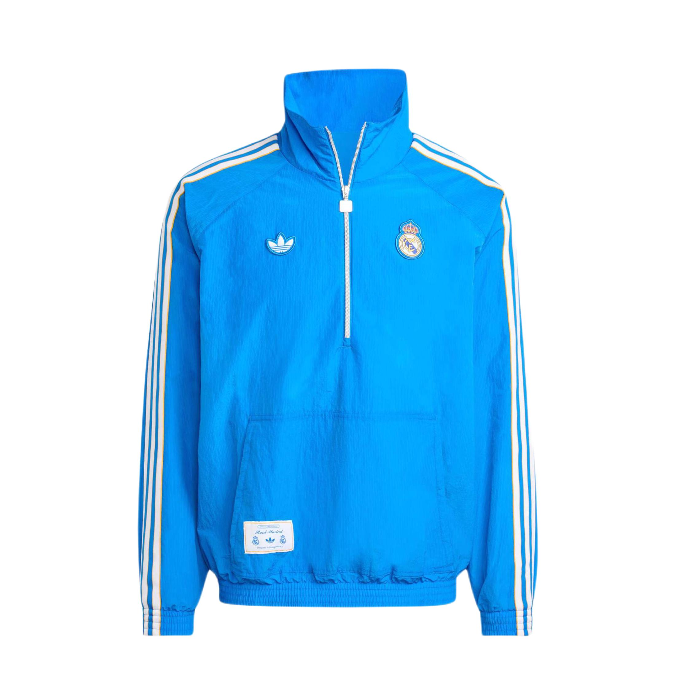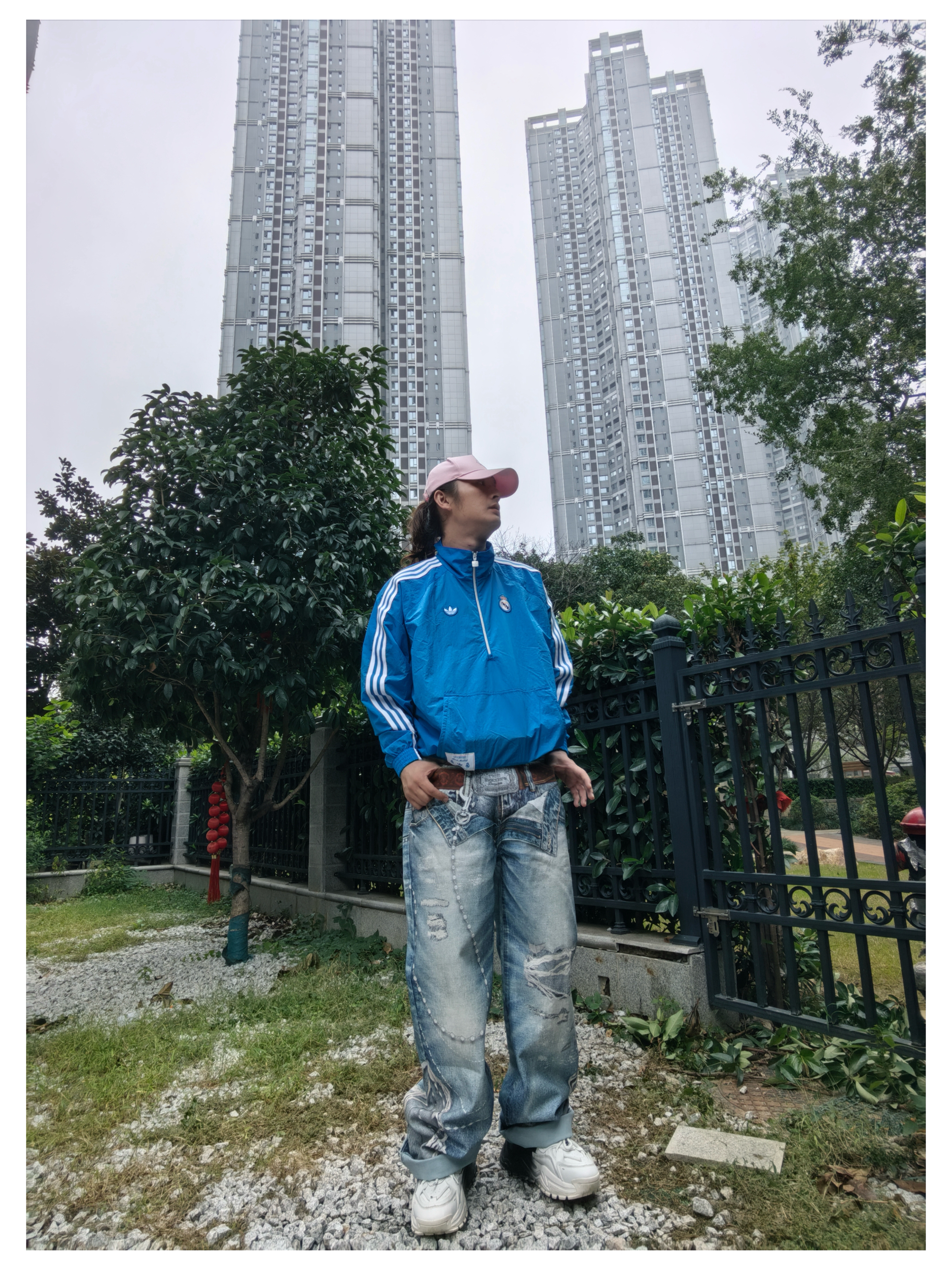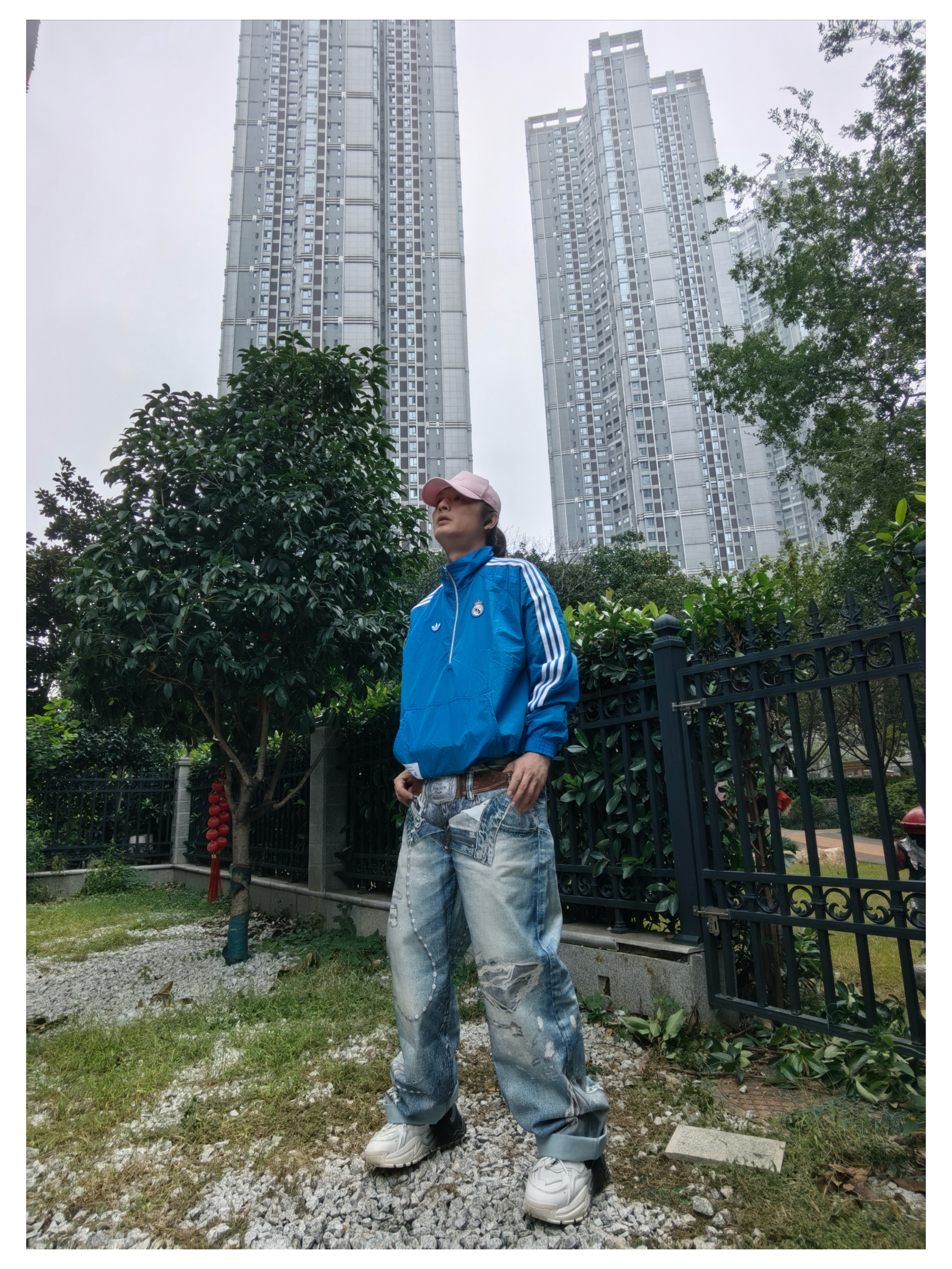 冬日时髦运动街头风穿搭日常 复古经典蓝白配色 运动上衣 +3D印花洗水牛仔裤 +拼色老爹鞋 出街帅气舒适 上衣:adidas 皇家马德里 联名 经典白蓝色系 半拉链 运动上衣,衣型宽松时髦高级 下装:3d 印花洗水牛仔裤 鞋子:黛西法罗 拼色黑白 明星同款 老爹鞋