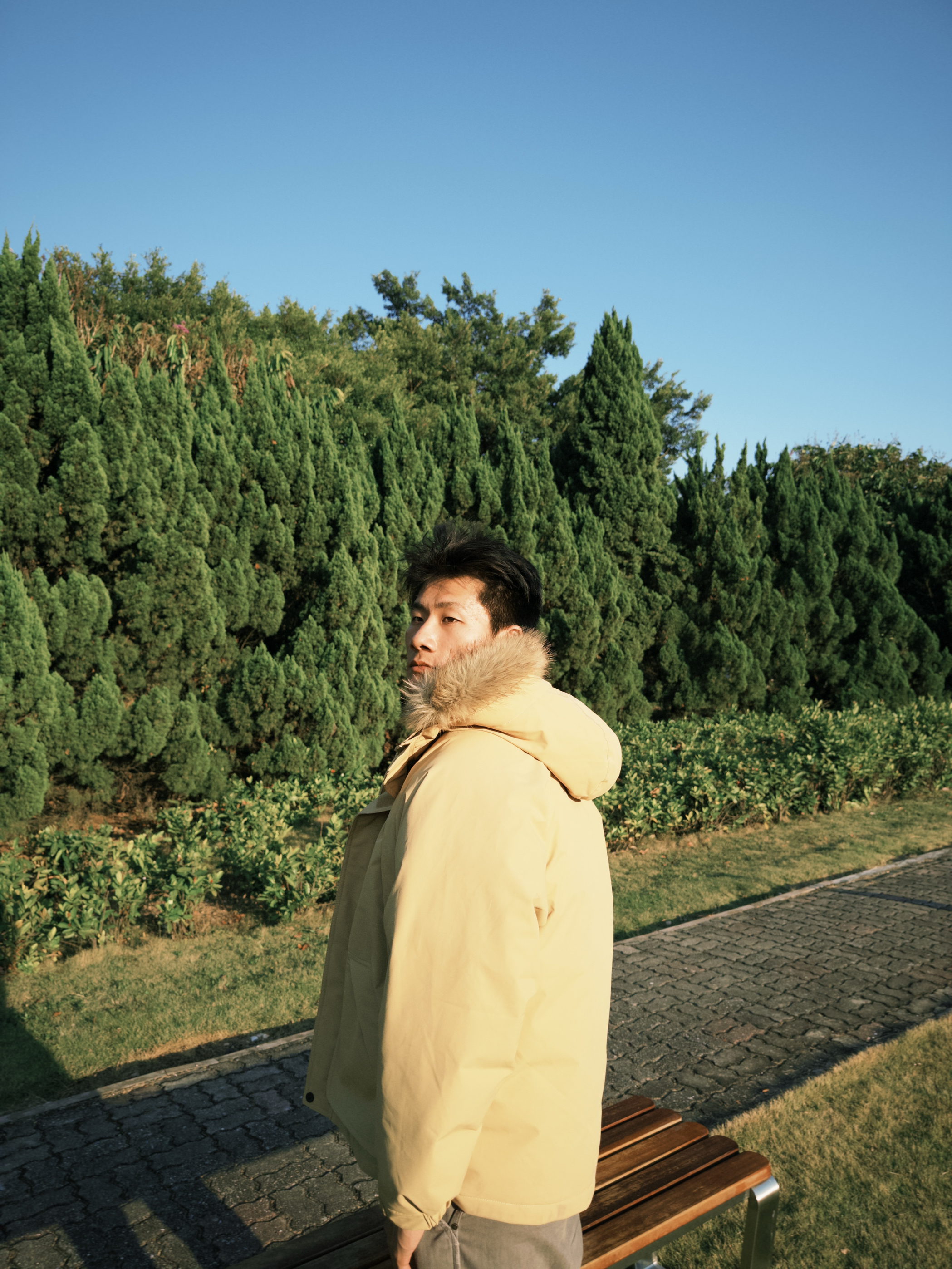 “这卡其座山雕美式棉服是我秋冬的‘氛围感利器’——大毛领往颈间一裹,林间风都透不进来,oversize廓形配白T灰裤,往绿植旁一站复古感直接拉满。三标里的防泼水标很实用,碰上下点小雨也不用慌,多口袋塞得下随身物,抬手舒展、走步道都灵活,属于‘保暖和腔调都占满’的款。”