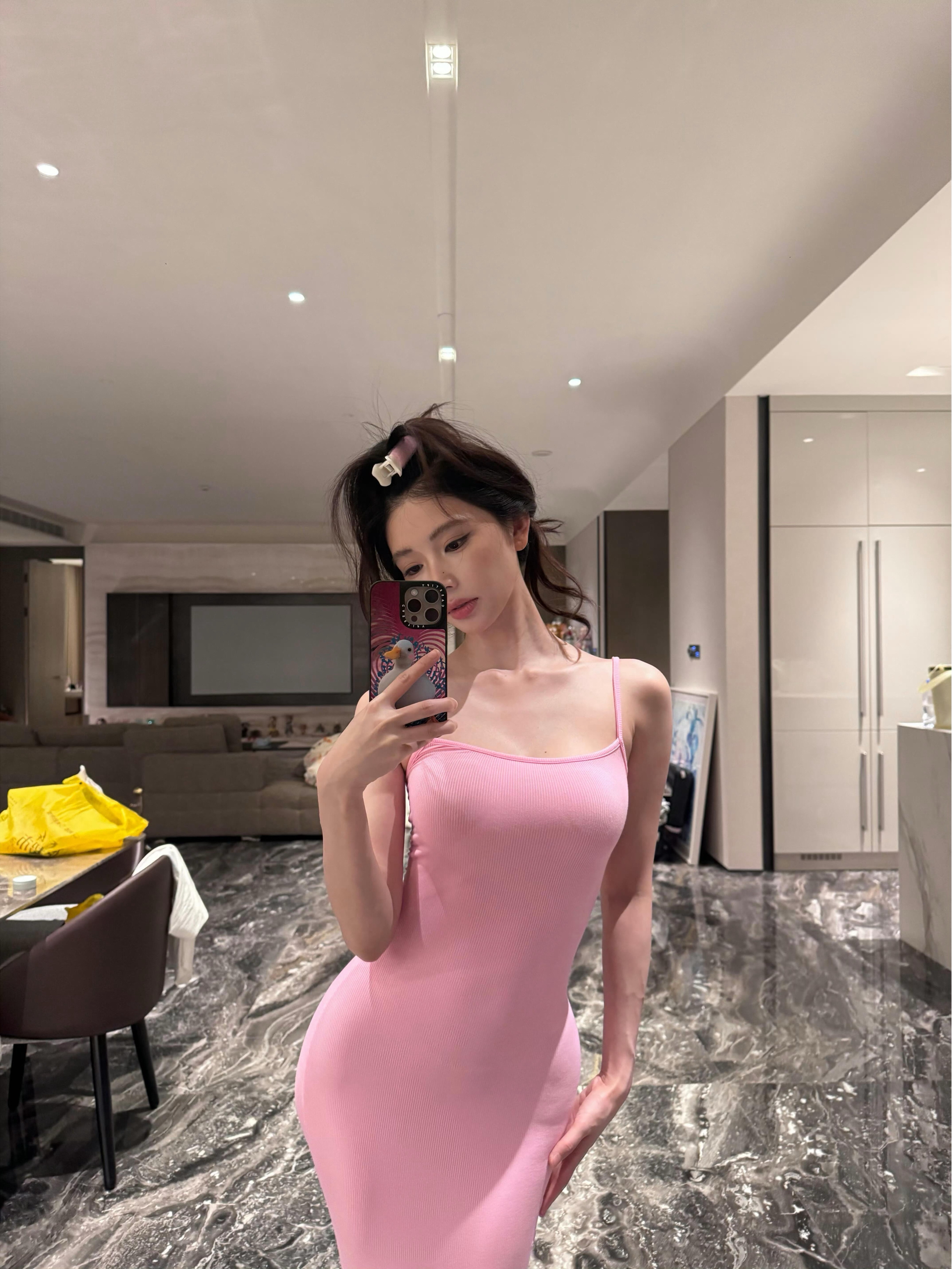 穿谁懂的SKIMS吊带裙! 针织面料贴肤又有弹性,淡粉色温柔不挑皮,紧身版型直接把身材曲线“锁”住~ 搭配CASETiFY的鸭鸭手机壳,甜酷感刚好中和裙装的性感,四百多块的可爱防摔壳天天看都不腻! 随手在家自拍都出片,这波999+409的搭配值得冲~ #SKIMS神裙 #甜辣穿搭