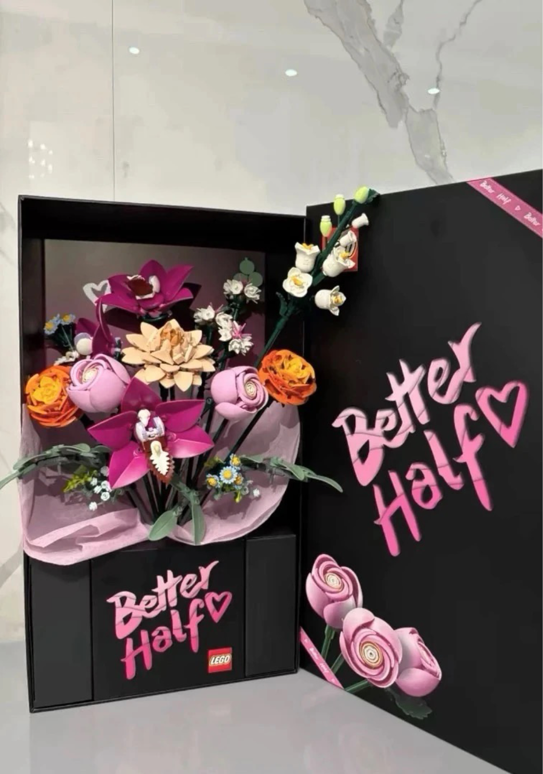 拆开快递时手都是软的——黑盒翻开的瞬间,粉紫花束裹着浅粉纱扑进眼里,连印着“Better Half”的字样都在发光。 花了一下午慢慢拼,把橙色小花对齐花瓣时,突然想起第一次和对象约会,他抱着支蔫蔫的向日葵说“下次给你买不会谢的”。现在这束积木花里,每片蝴蝶兰都卡着我们攒了半年的小默契。 摆在玄关柜上,每天回家都能撞进这簇不会褪色的甜,连室友都问“哪订的这么懂人心的花”。原来最好的礼物从不是转瞬...