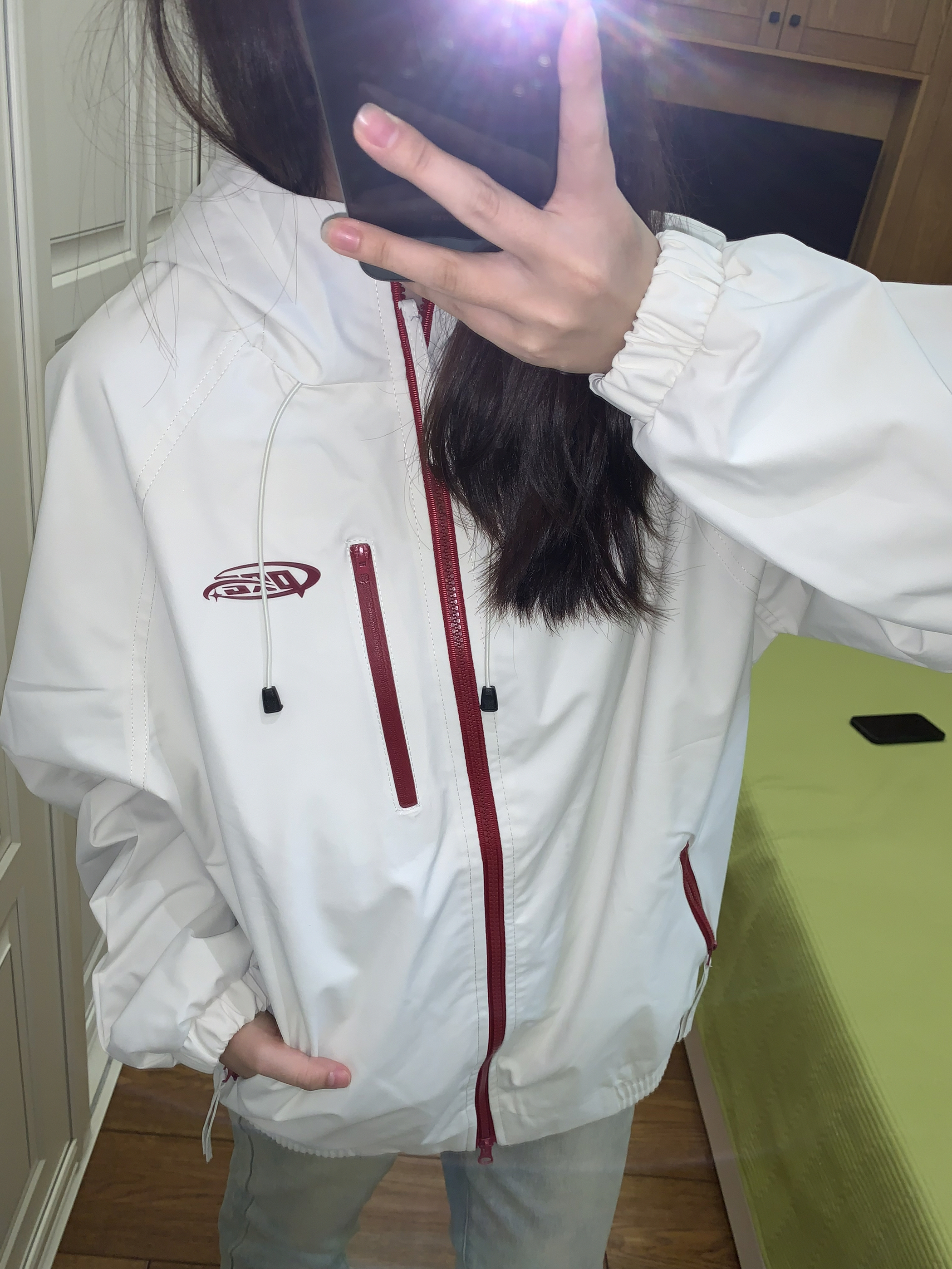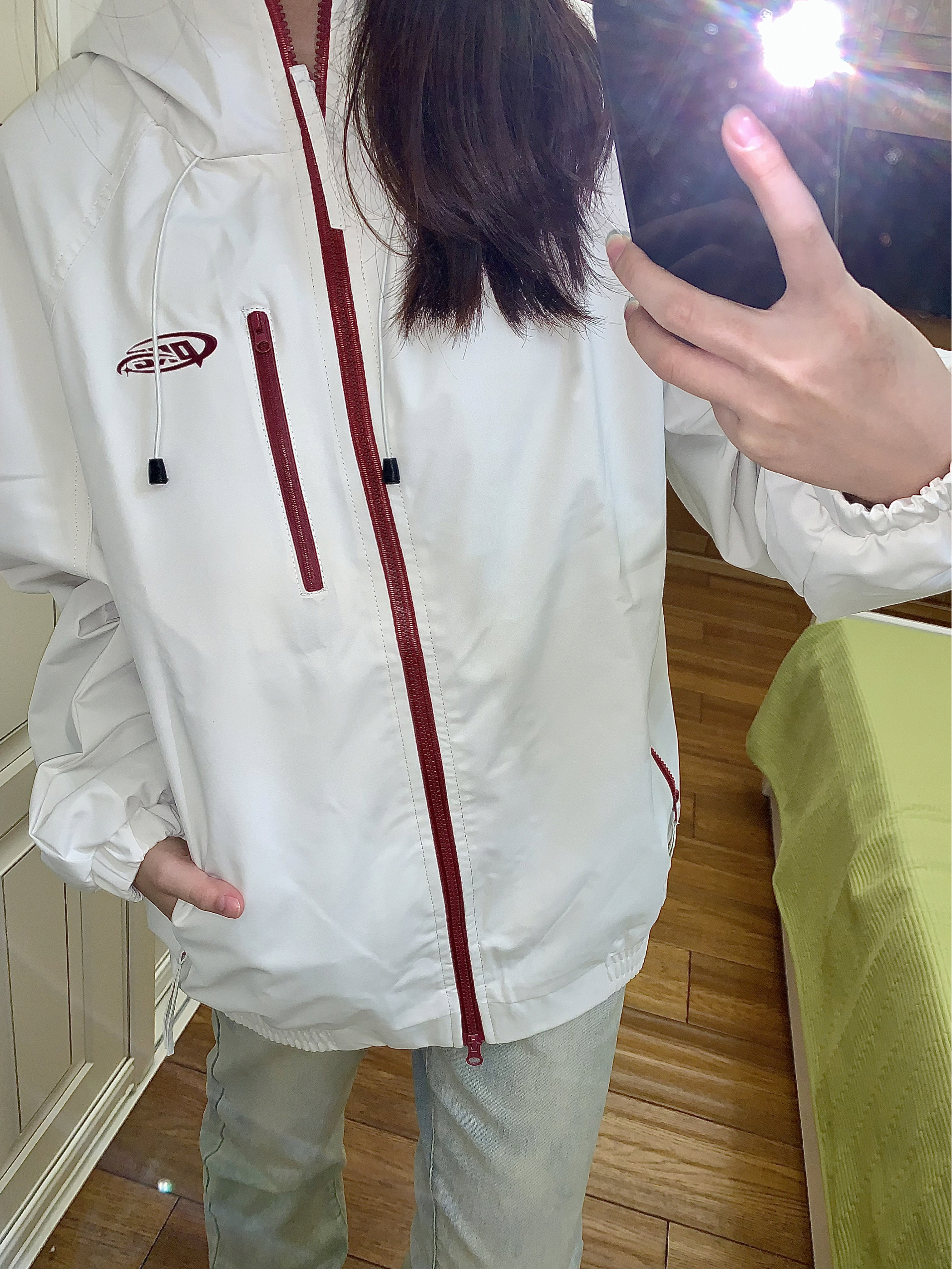今天穿什么呢 穿的一件米色系夹克!一个休闲运动风 米色与红色的搭配更加时尚大气 红色给予了这件衣服很多亮点 显得没有那么单调又很酷 我就随便搭配了一条黄泥色牛仔裤很清新~ 这一套很有秋冬氛围感~