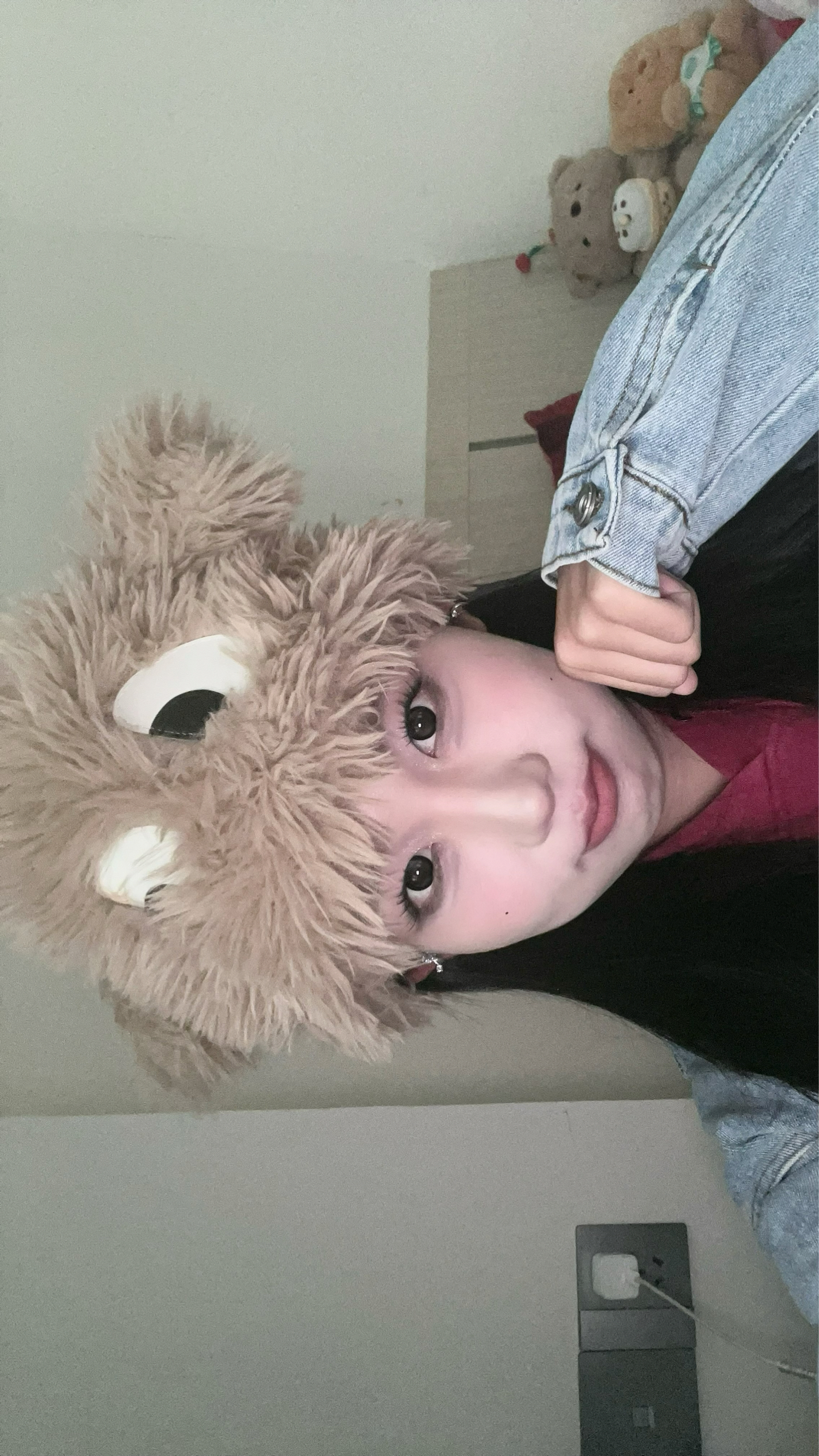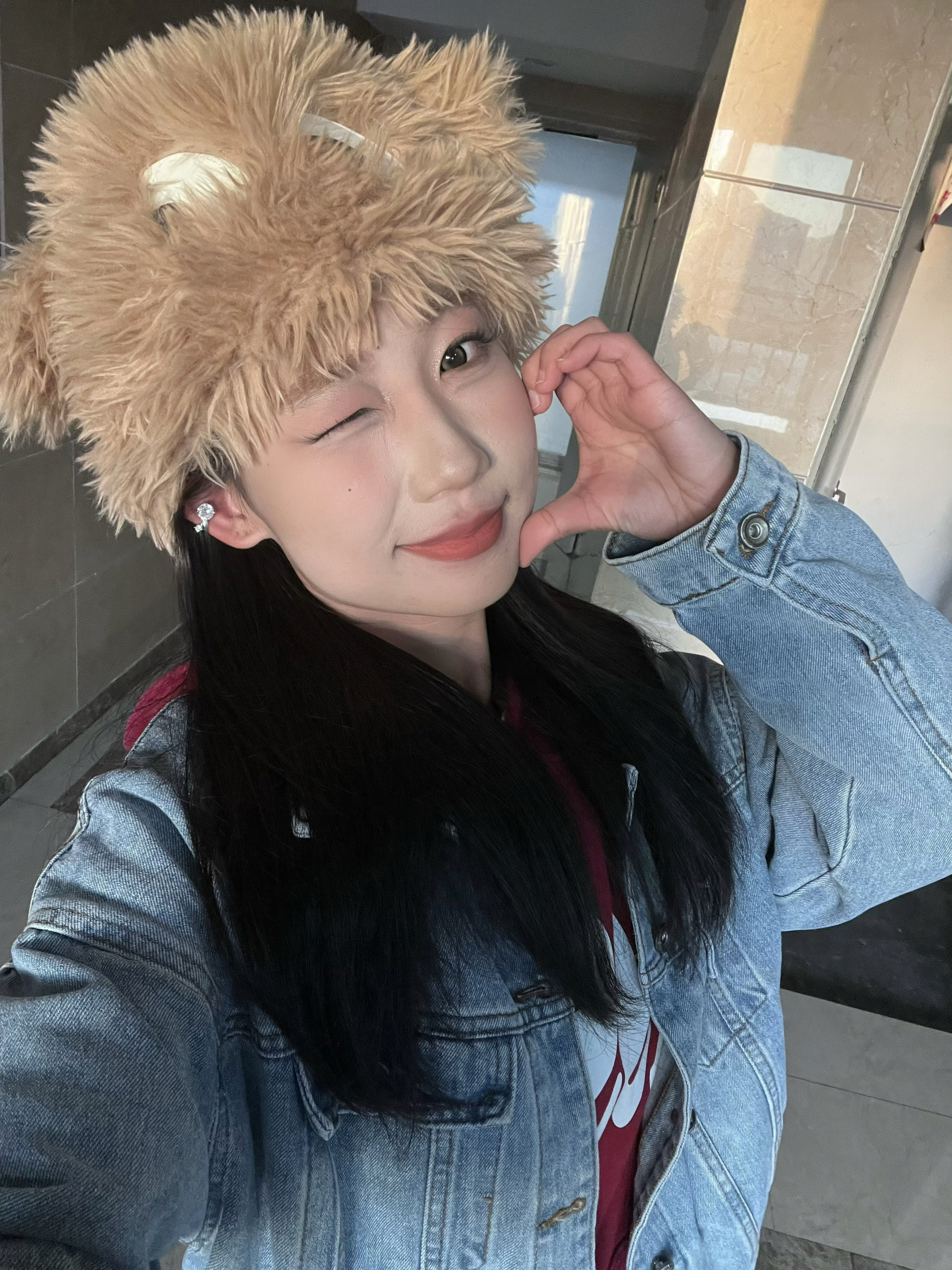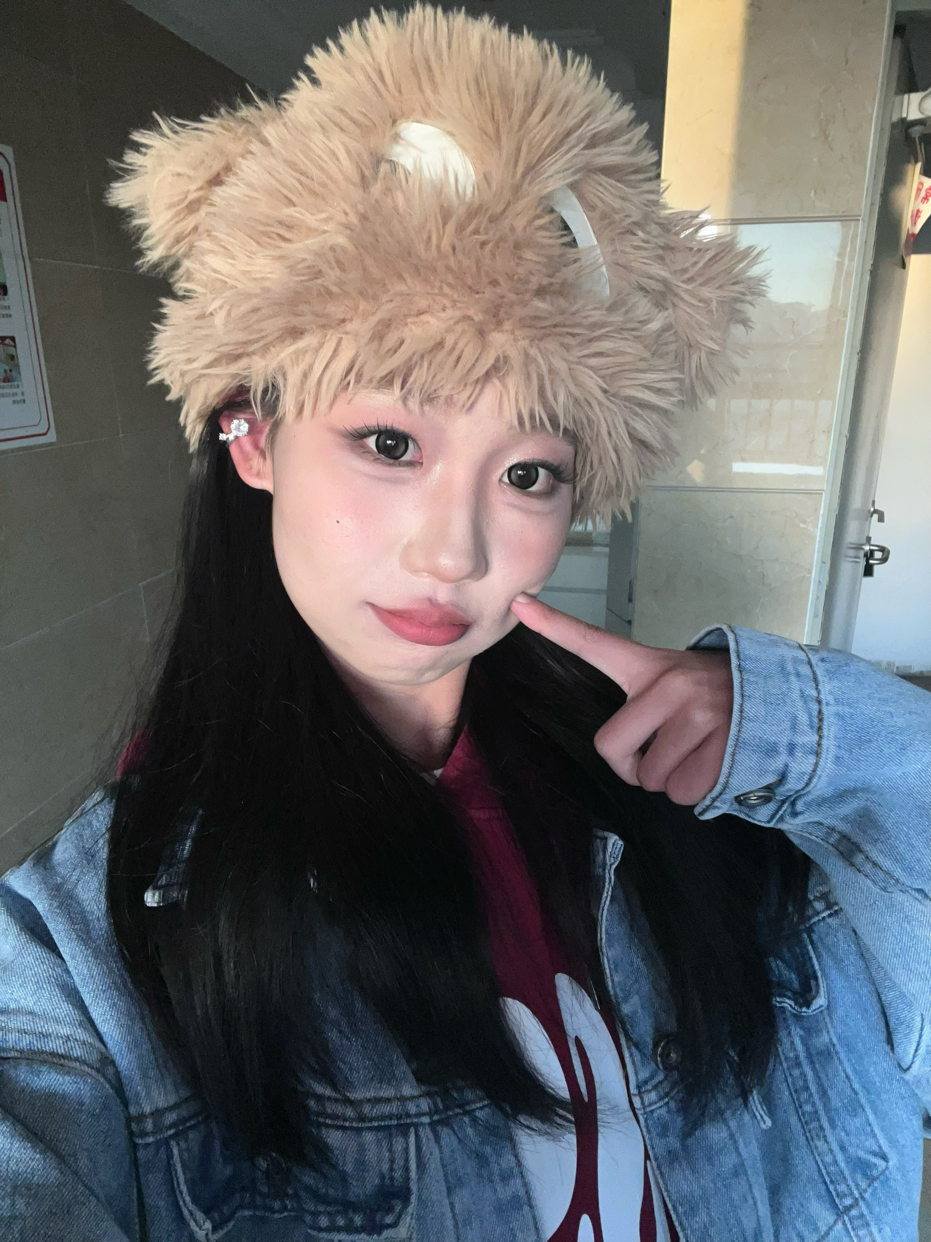 用深色修容粉在颧骨下方、下颌线和鼻侧轻轻晕染,瞬间打造小脸效果。 高光则提亮鼻梁、眉骨和下巴,让面部线条更柔和。修容不仅能让妆容更精致,还能提升整体气质,是日常化妆中不可或缺的小心机 奶咖色的毛绒材质柔软蓬松,两只圆润的耳朵随着动作轻轻晃动,瞬间增添可爱气息。 帽檐的毛绒自然散落,与清透妆容和玻璃唇相得益彰,保暖的同时让脸庞更显小巧。 搭配牛仔外套和卫衣,甜酷风拉满,出门被夸爆!