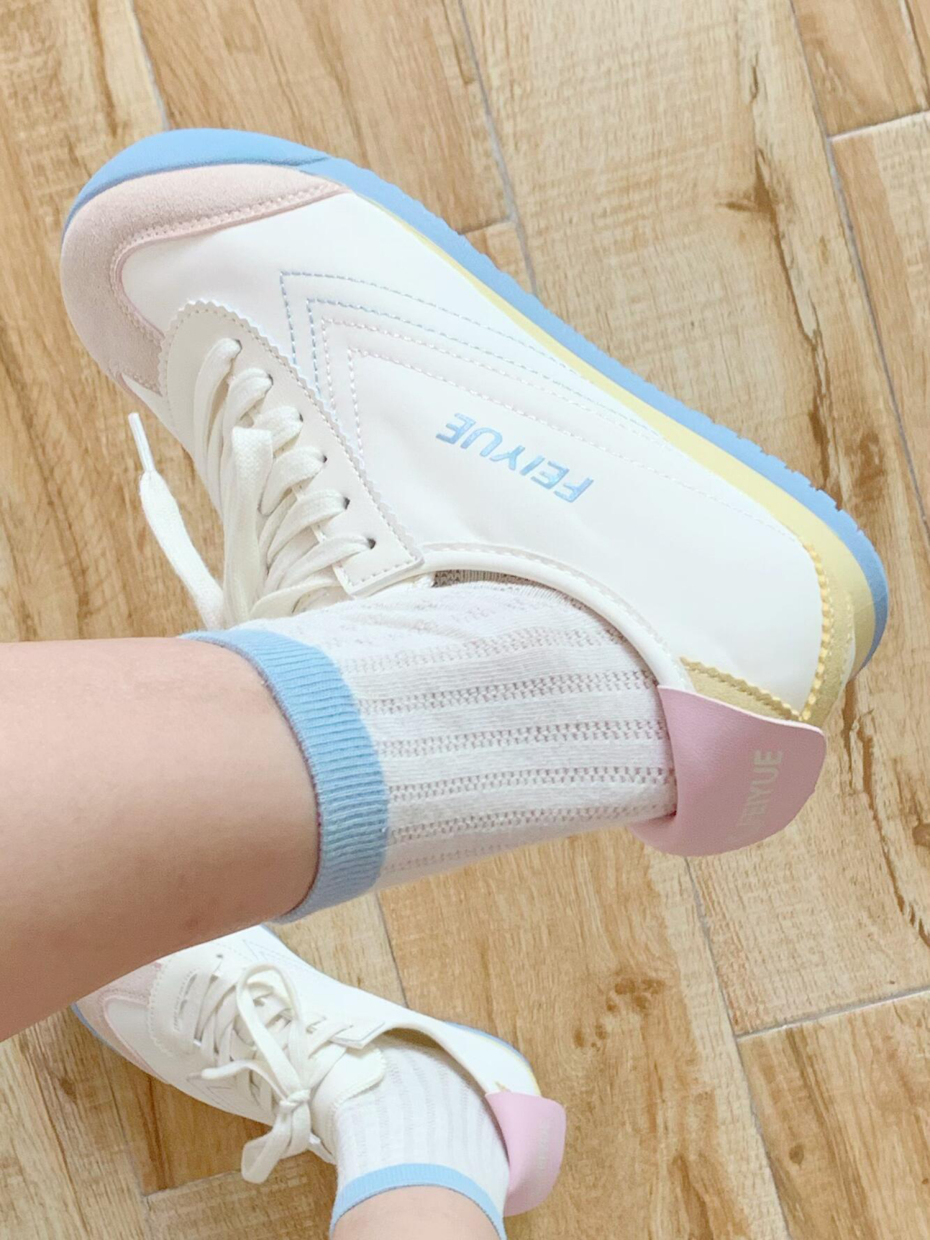 薄底鞋上脚好韩啊! 随便搭搭就很时髦的样子✌️ 脚感蛮软糯的,太舒服了~ 配色就比较清新百搭滴! 喜欢😍