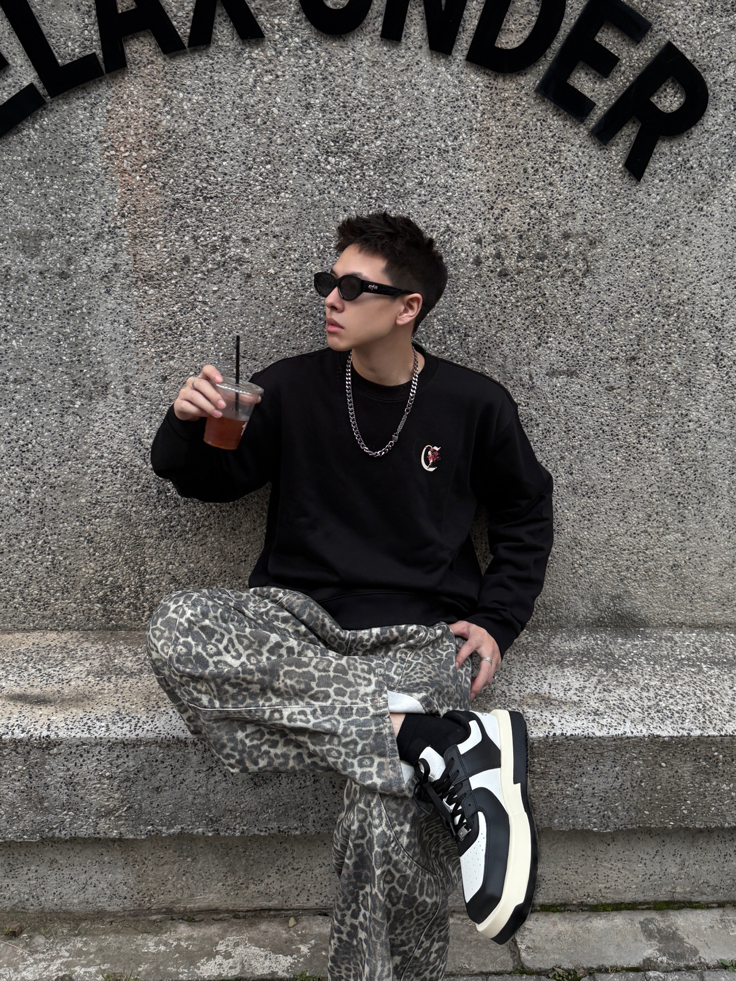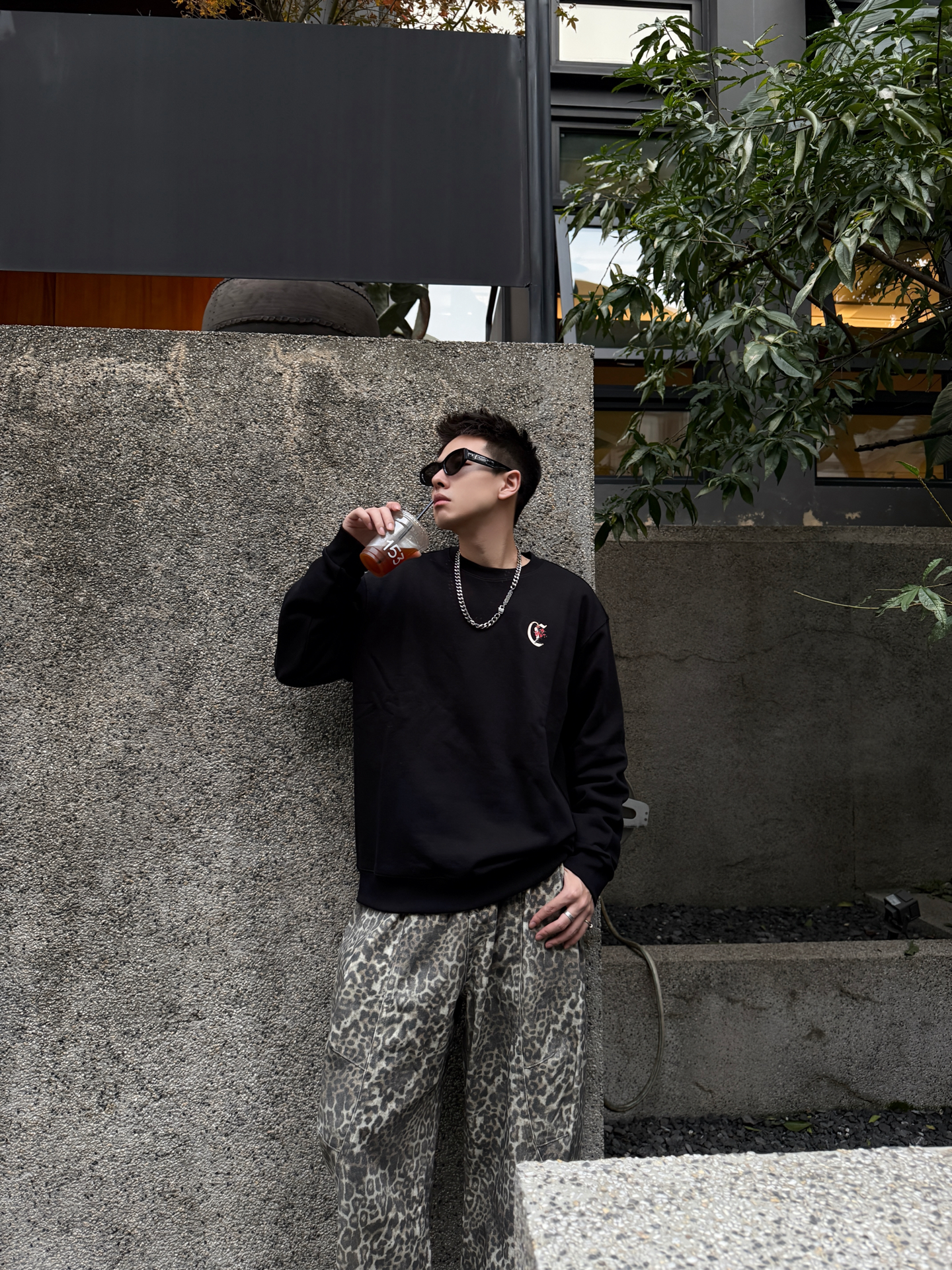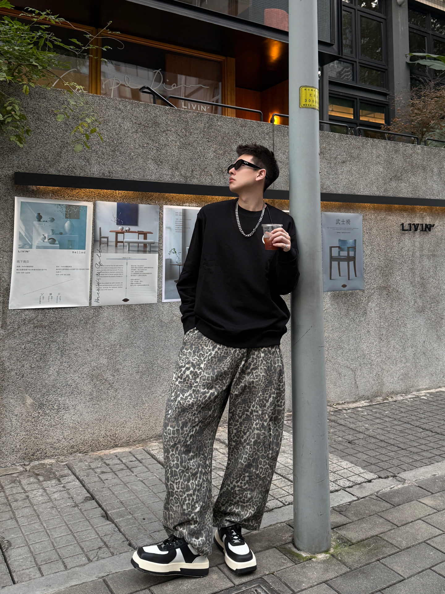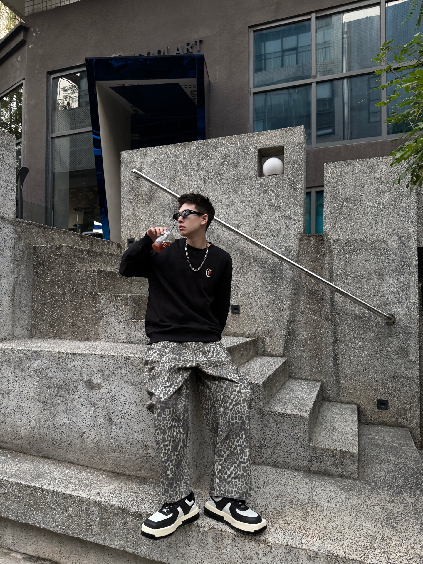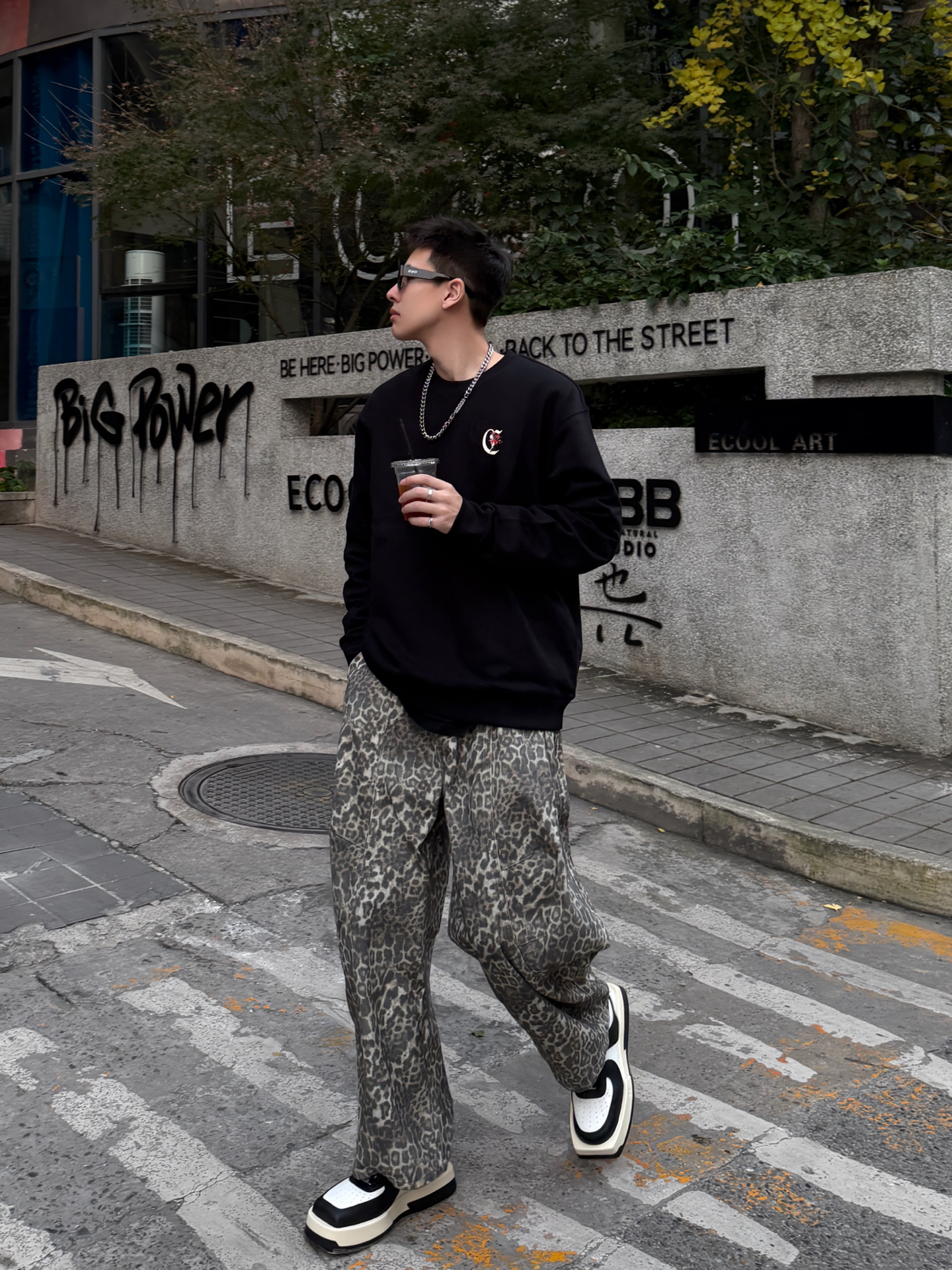 卡宾+豹纹裤+厚底鞋,这松弛感直接戳中潮男心巴 谁懂啊!卡宾黑卫衣+Climax Vision豹纹裤+Choco Concert厚底鞋,把街头慵懒焊在身上~ 卡宾卫衣软乎乎巨藏肉,后背大Logo暗戳戳秀细节;Climax Vision低饱和豹纹裤垂感拉满,复古还不浮夸;Choco Concert厚底鞋黑白撞色+软弹脚感,增高还能给整套搭出层次感。 男生穿这套,逛咖啡馆、压马路都适配,冷天里的...