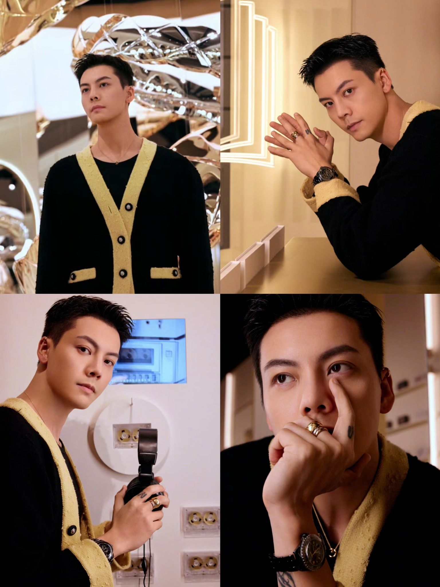 陈伟霆这套香奈儿24年秋冬系列造型也太绝了,男生穿香奈儿针织开衫居然能这么有范儿,贵气与慵懒感直接拉满👇 ✨ 核心单品:CHANEL香奈儿24秋冬系列单排扣V领长袖针织衫,经典的黑金配色自带高级感,宽松的版型弱化了女装的柔美,反而穿出了雅痞贵公子的腔调,把奢侈品的腔调拿捏得死死的; ✨ 搭配巧思:内搭简约黑T,没有多余装饰,让针织开衫成为视觉焦点,低调中尽显奢华,这种“减法搭配”反而更凸显单品...
