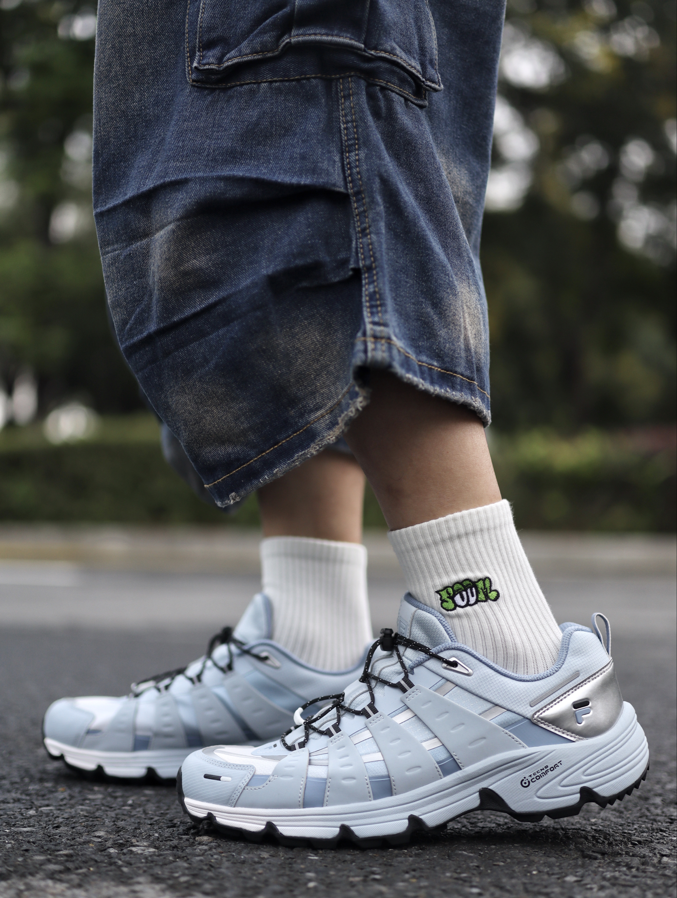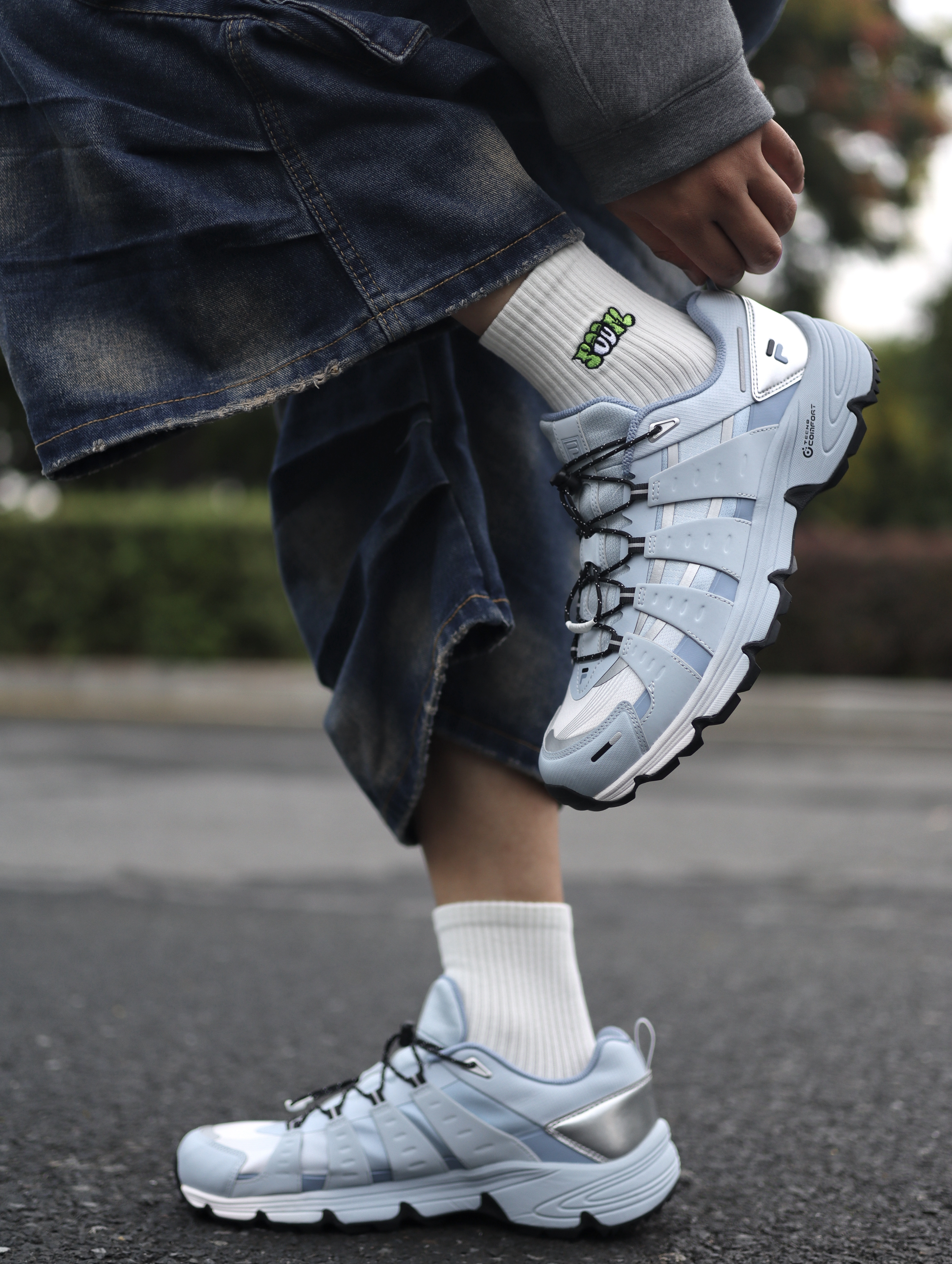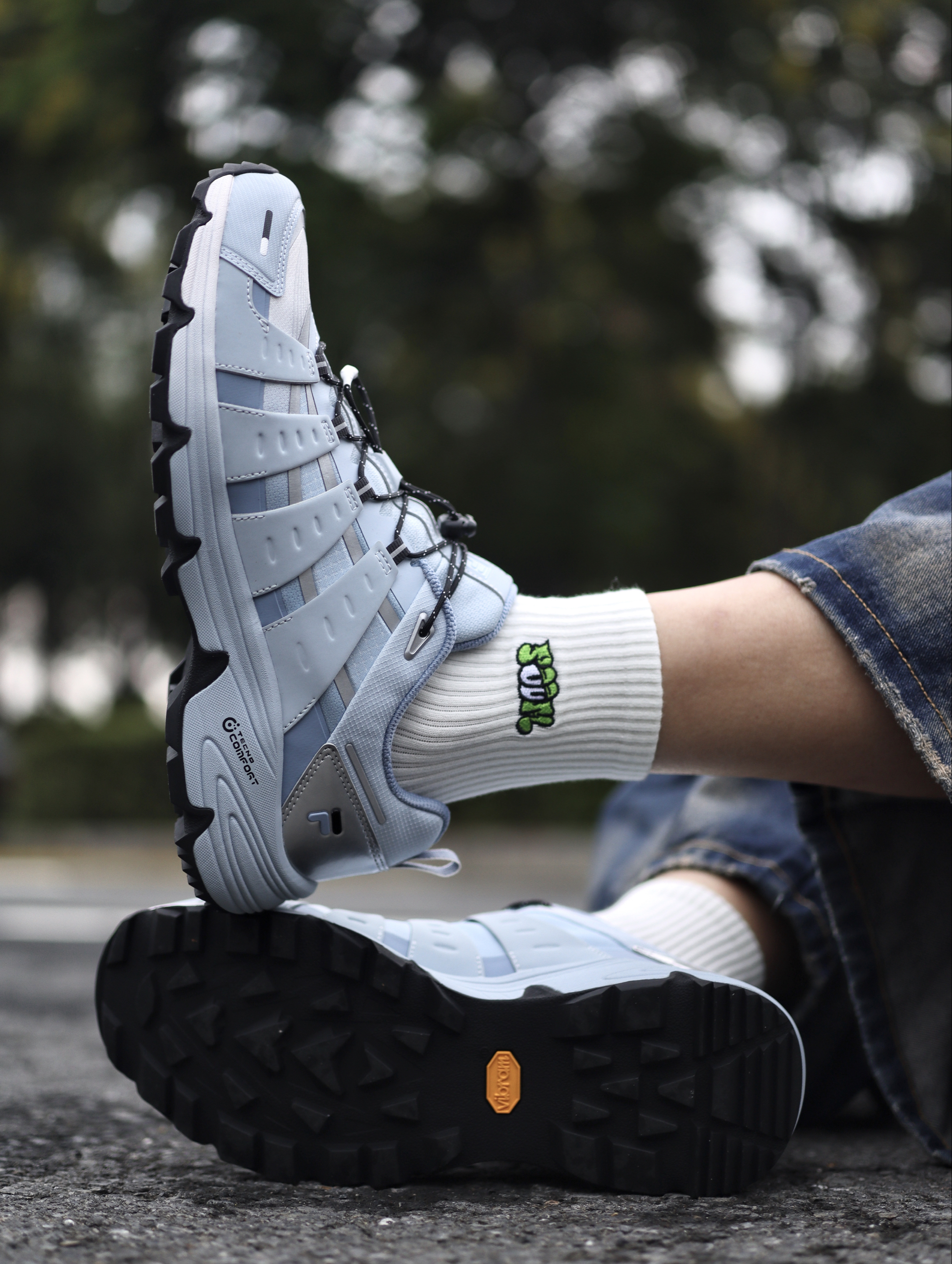 今天上脚的是这双FILA FUSION COMOX 「昊蓝」配色👟 这双FILA我也是穿了有段时间了,上脚给我的感受脚感属于比较舒适的,周末户外比较多,所以防滑性我也是比较看重的,VIBRAM大底能够给我足够的安全感了,鞋子外观配色也是比较百搭,像搭配牛仔裤或者束腿裤都是蛮百搭的。 鞋子尺码我是按照正常尺码选择的,穿起来也是刚好。