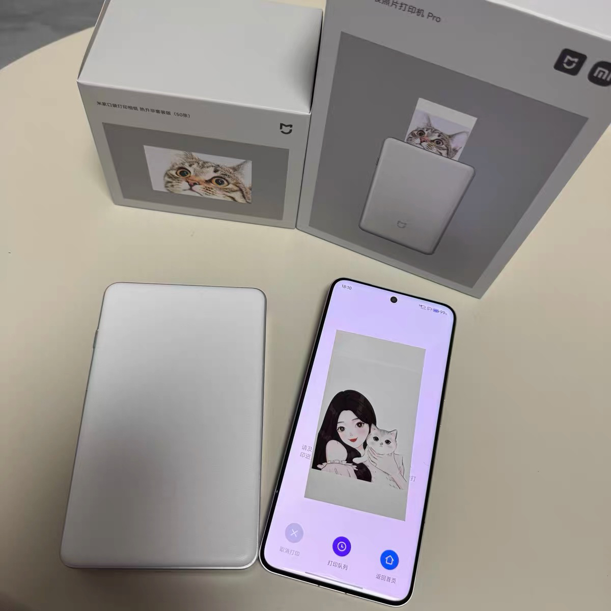 刚拆箱这一套直接戳中我的“随手记录”DNA——打印机本体+50张相纸套装,米家这简约包装里的质感是真在线~ 聊聊实际体验: 1️⃣ 操作零门槛:手机APP秒连,界面直接能预览、调滤镜,我试了实拍猫咪和卡通插画,点“打印照片”按钮就出片,连我妈拿过去都能上手; 2️⃣ 打印效果超惊喜:相纸是绒面质感,实拍猫咪的瞳孔细节、插画的色彩都没跑偏——不会发灰也不过饱和,打出来贴手账本/冰箱门,生活感直接拉...