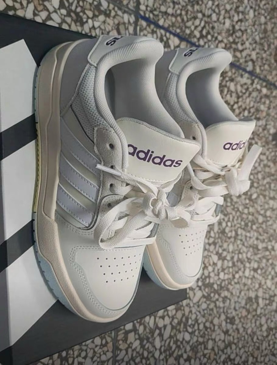 舒适度:全天候的轻松陪伴 上脚的第一感受就是“无负担”。轻质的鞋身与缓震中底相结合,无论是长时间步行、通勤还是周末闲逛,双脚都能保持松弛。鞋面材质柔软透气,包裹感恰到好处,没有压迫感,非常适合日常穿着。 外观设计:简约百搭的潮流感 Entrap的设计语言干净利落,线条流畅。它没有过于繁复的装饰,经典的运动鞋轮廓搭配adidas的标志性三条纹,简约却不简单。配色通常清新活泼(如纯白、浅灰、活力亮色...