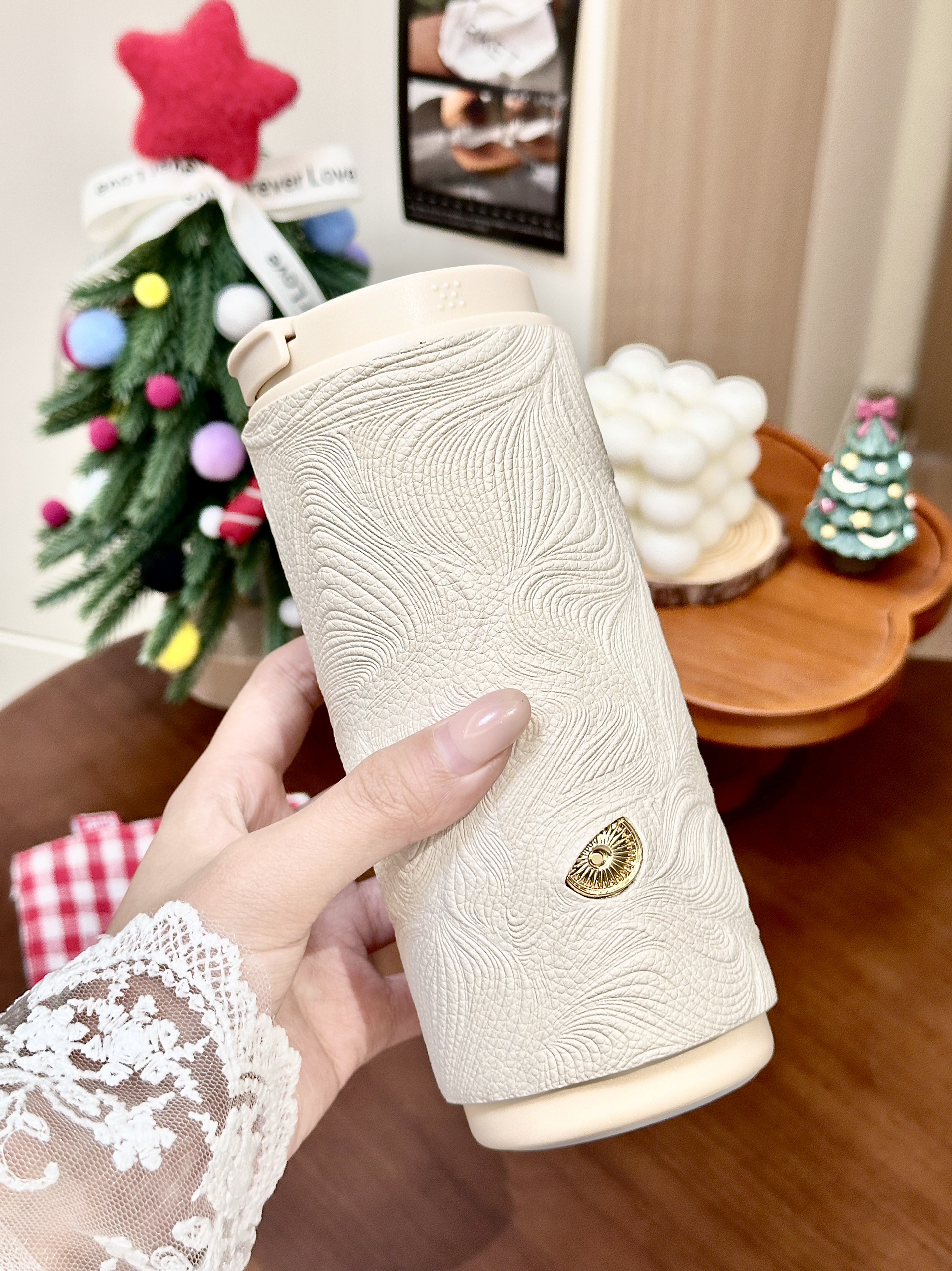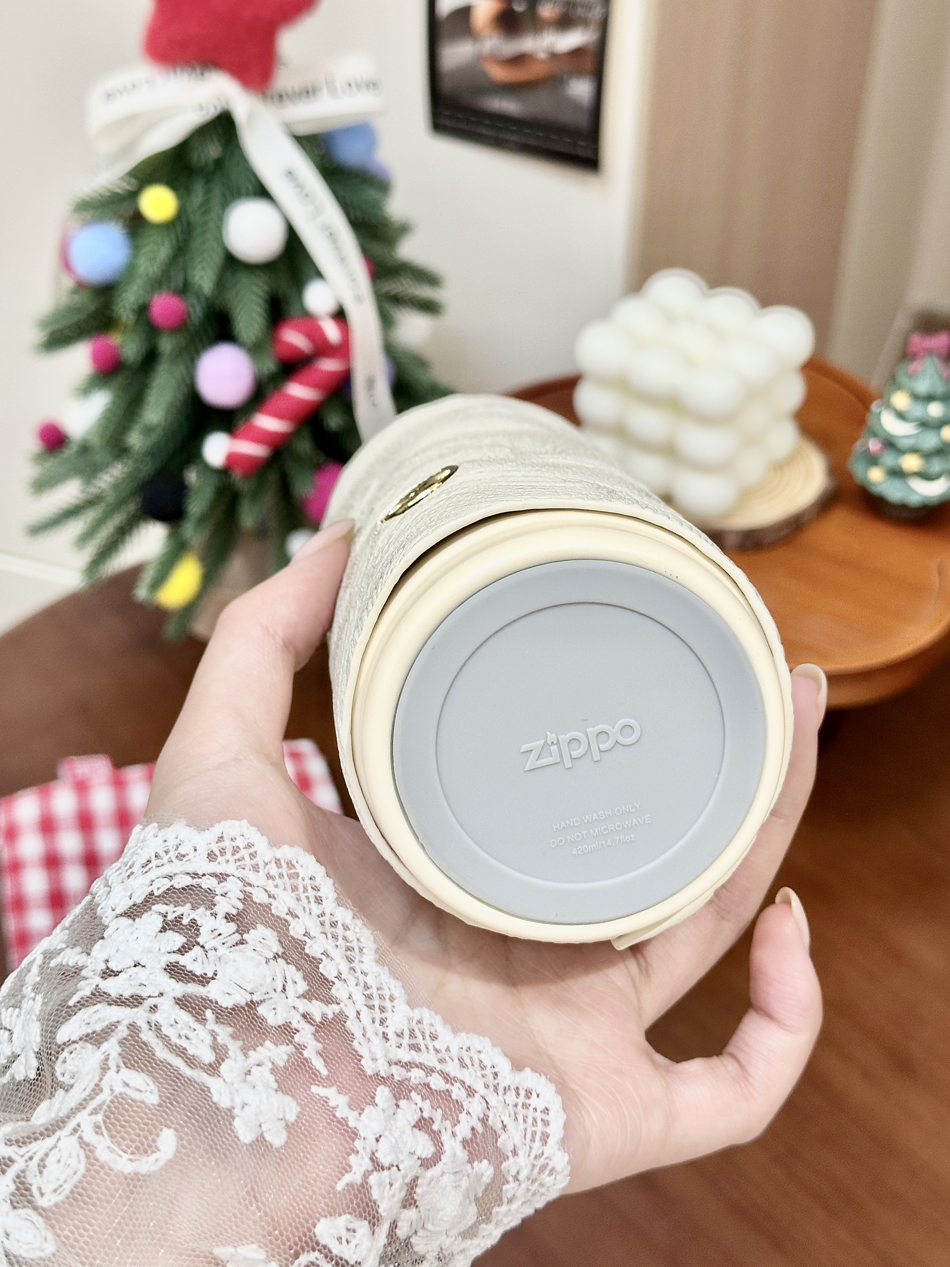 又被 Zippo 的设计师拿捏住了 我的圣诞仪式感٩(ˊᗜˋ*)و🎄 好稀饭我的新杯杯 是介个秋水含情保温杯 杯套是浮雕的纹理,摸起来质感很好 刚好秋冬可以在里边泡点奶茶~ 下午喝还是暖呼呼的,好方便