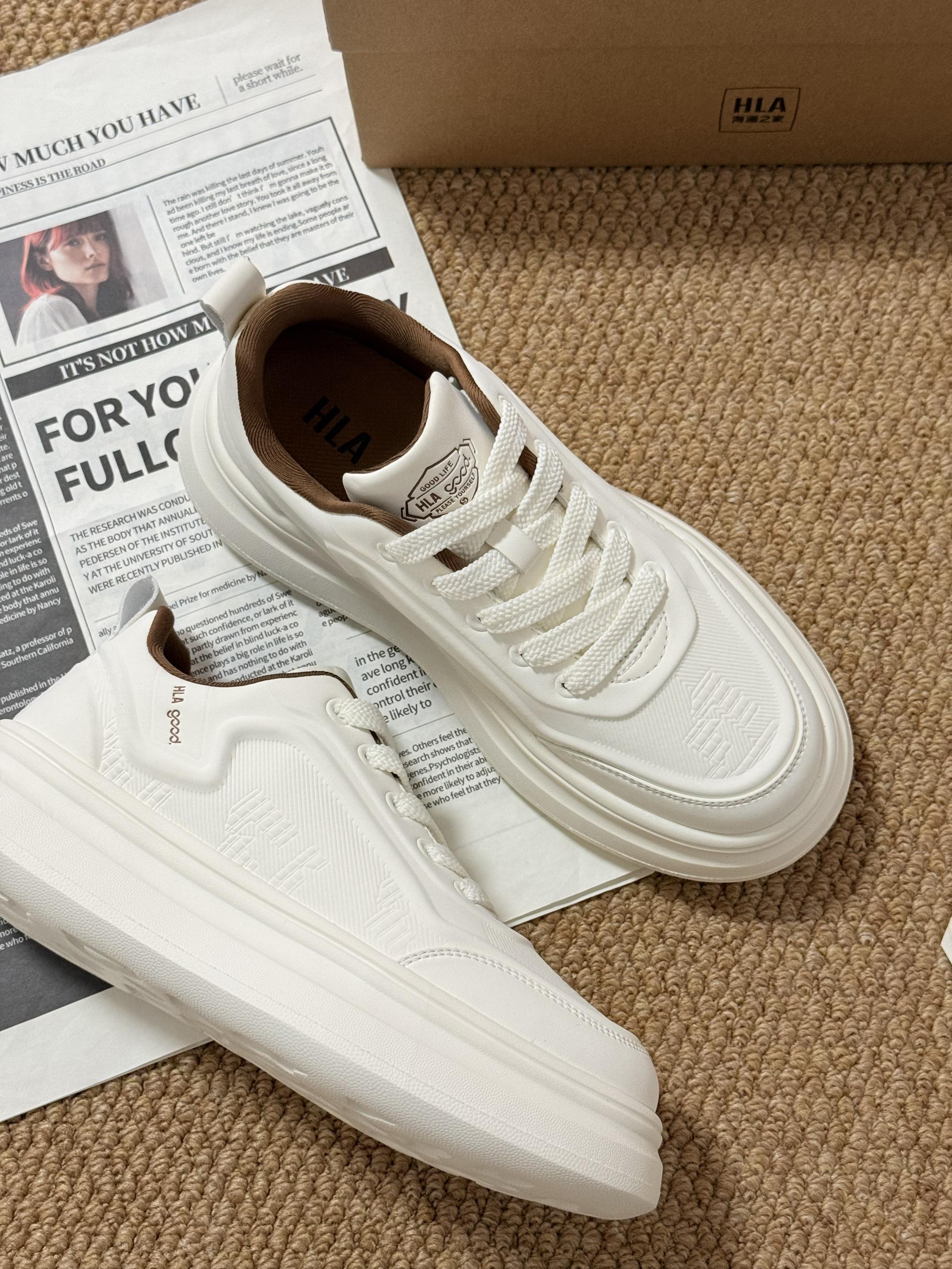 🤎哈喽大家~ 小白鞋的确是四季的常青款诶~ HLA海澜之家的衣服经常买 但是鞋子👟也可以介么舒服 整体白色鞋面 ➕ 棕色内里整体的高级感我觉得还是蛮不错的 加上鞋面的整体印花 皮质还是比较柔软的 鞋盒也是牛皮纸的鞋盒👆🏻 送礼也是一个不错的选择诶🎁
