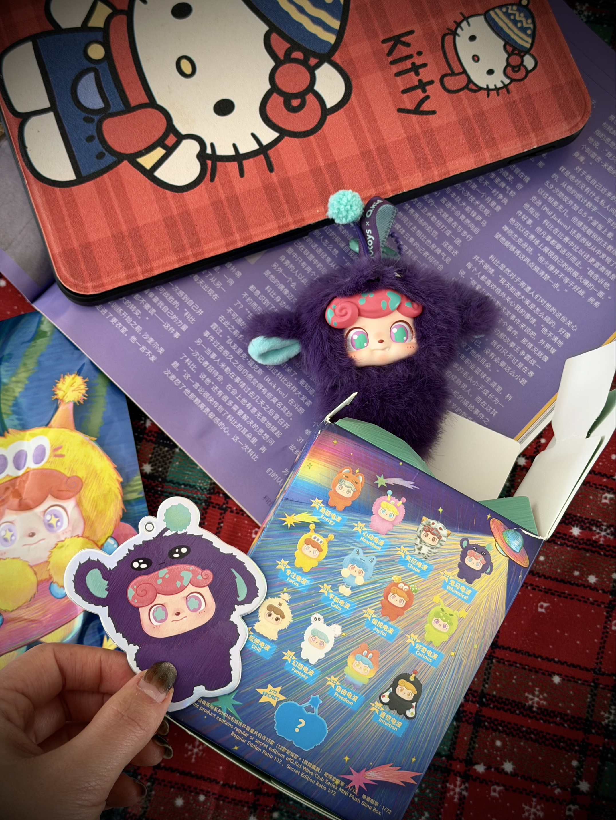 又来分享盲盒啦~ 这次是超可爱的Q宝⚡️电波俱乐部⚡️,赶上圣诞妥妥的节日惊喜! 抽到了紫色鬼马电波💜,搭配圣诞彩灯背景,怎么拍都乖到不行!手感软乎乎超治愈~ 带它出门开启圣诞美好一天,走到哪都是满满的节日幸福感,能量满满🔋!