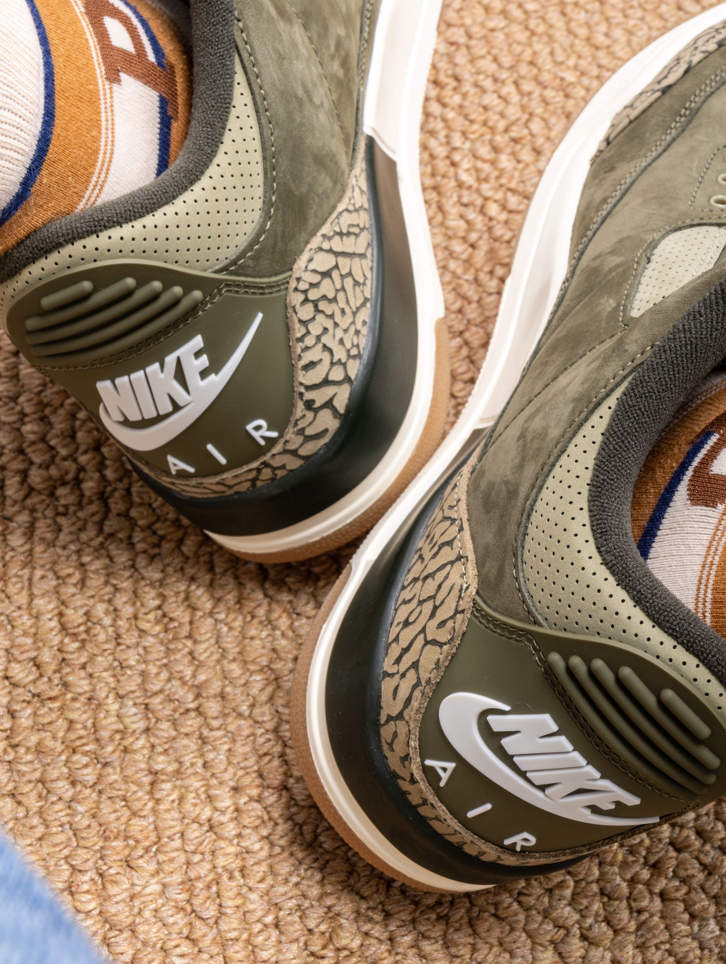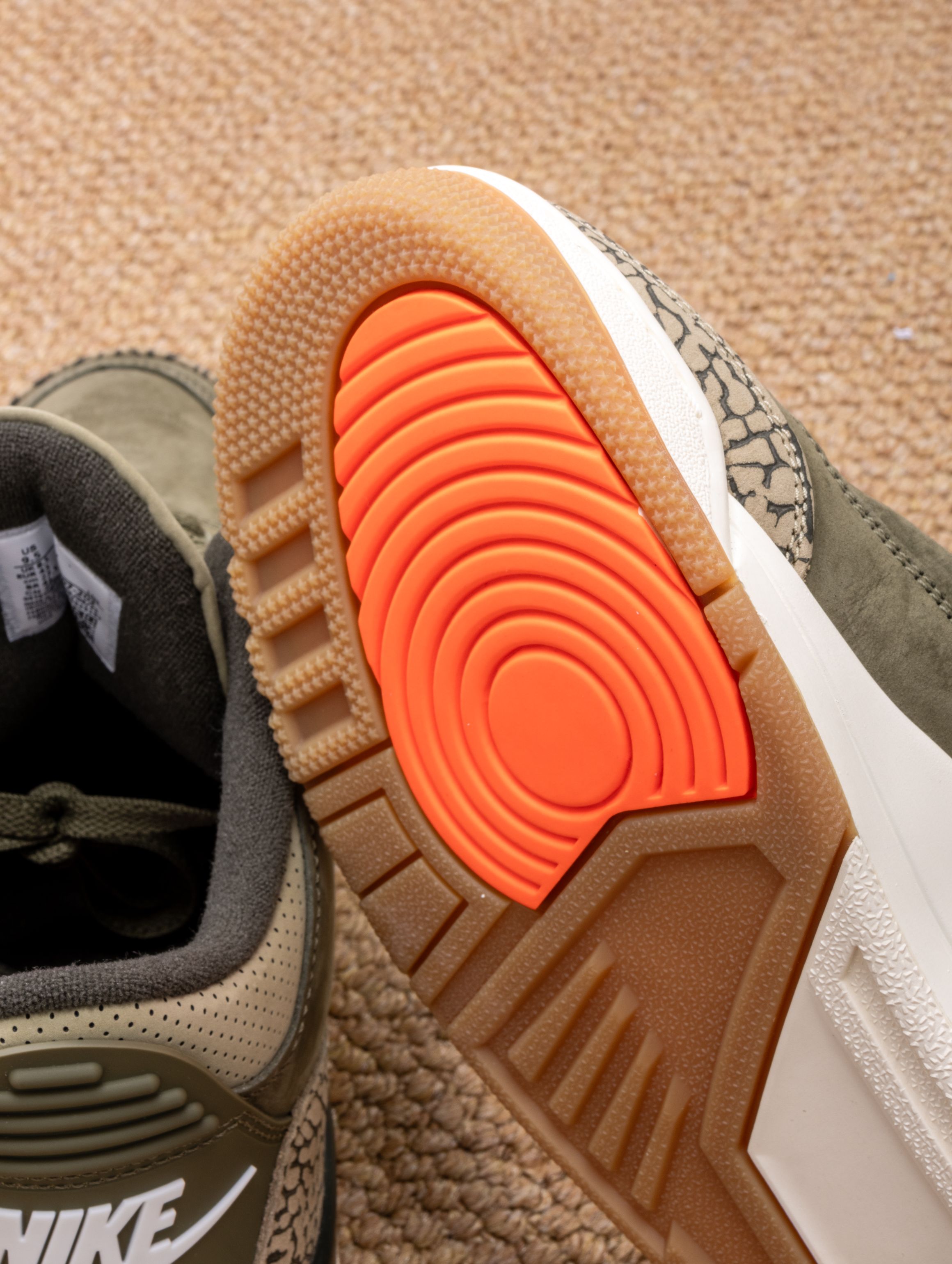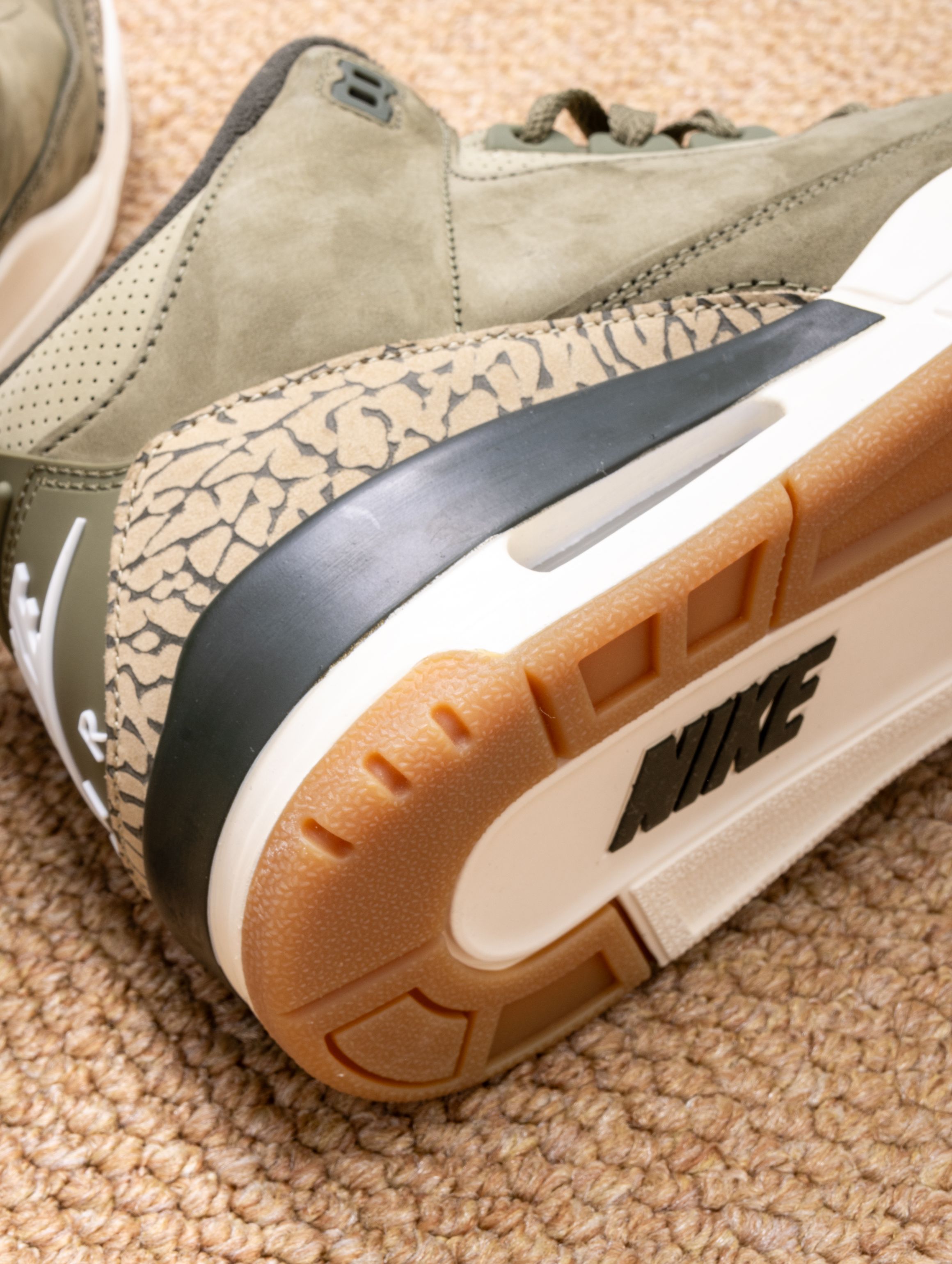 AJ3 “Family Affair”开箱瞬间真的有被暖到。军绿色很适合这个季节。 上脚还是熟悉的AJ3舒适感,后跟Air缓震走一天都不累,中帮设计对脚踝的包裹感刚刚好。奶油色皮革搭配做旧中底,复古味很浓,属于四季都能穿的配色。 每次穿都能感受到设计里藏着的“家”的温度。这双不止是球鞋,更像一份温暖的陪伴。