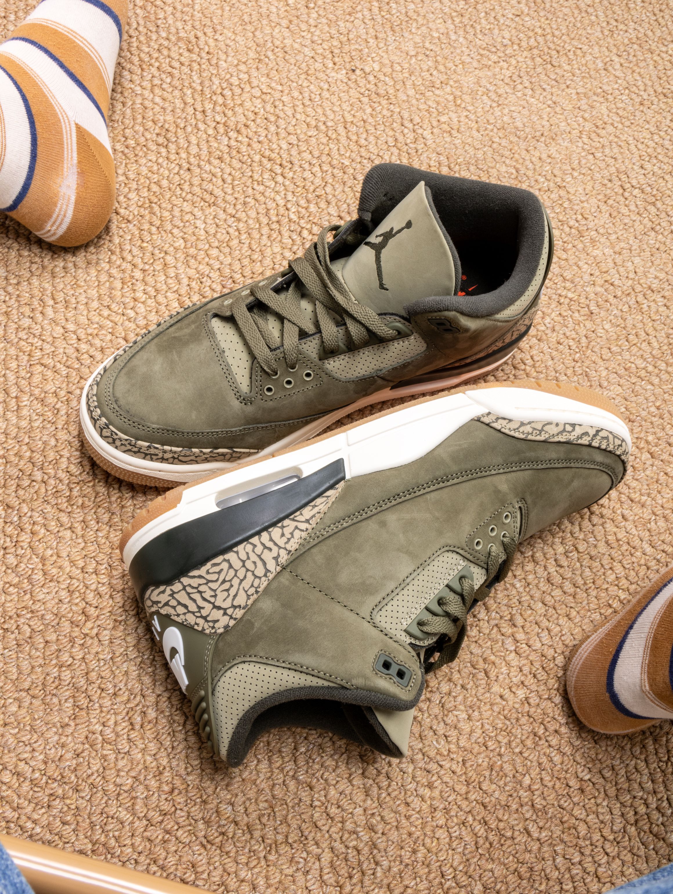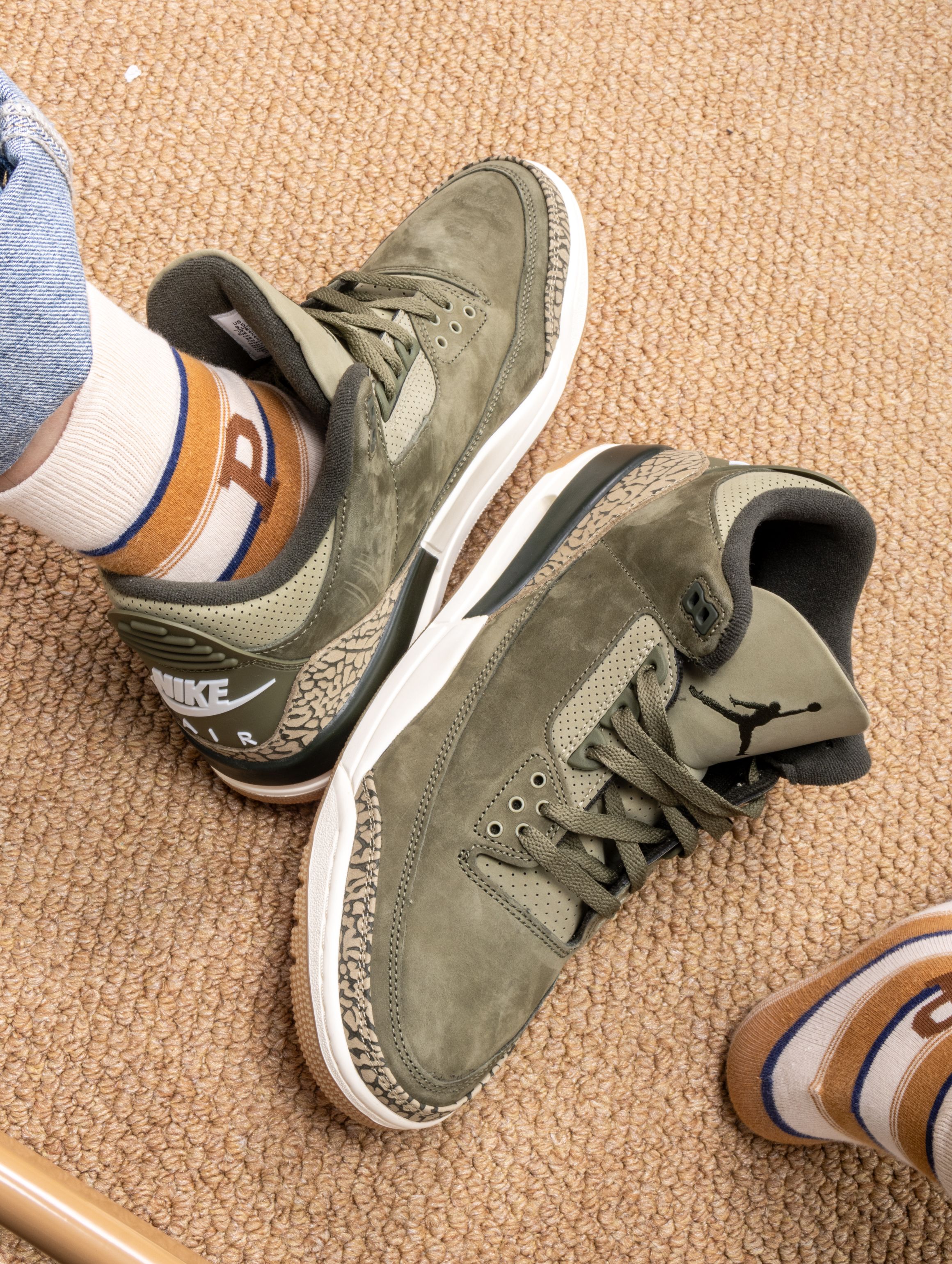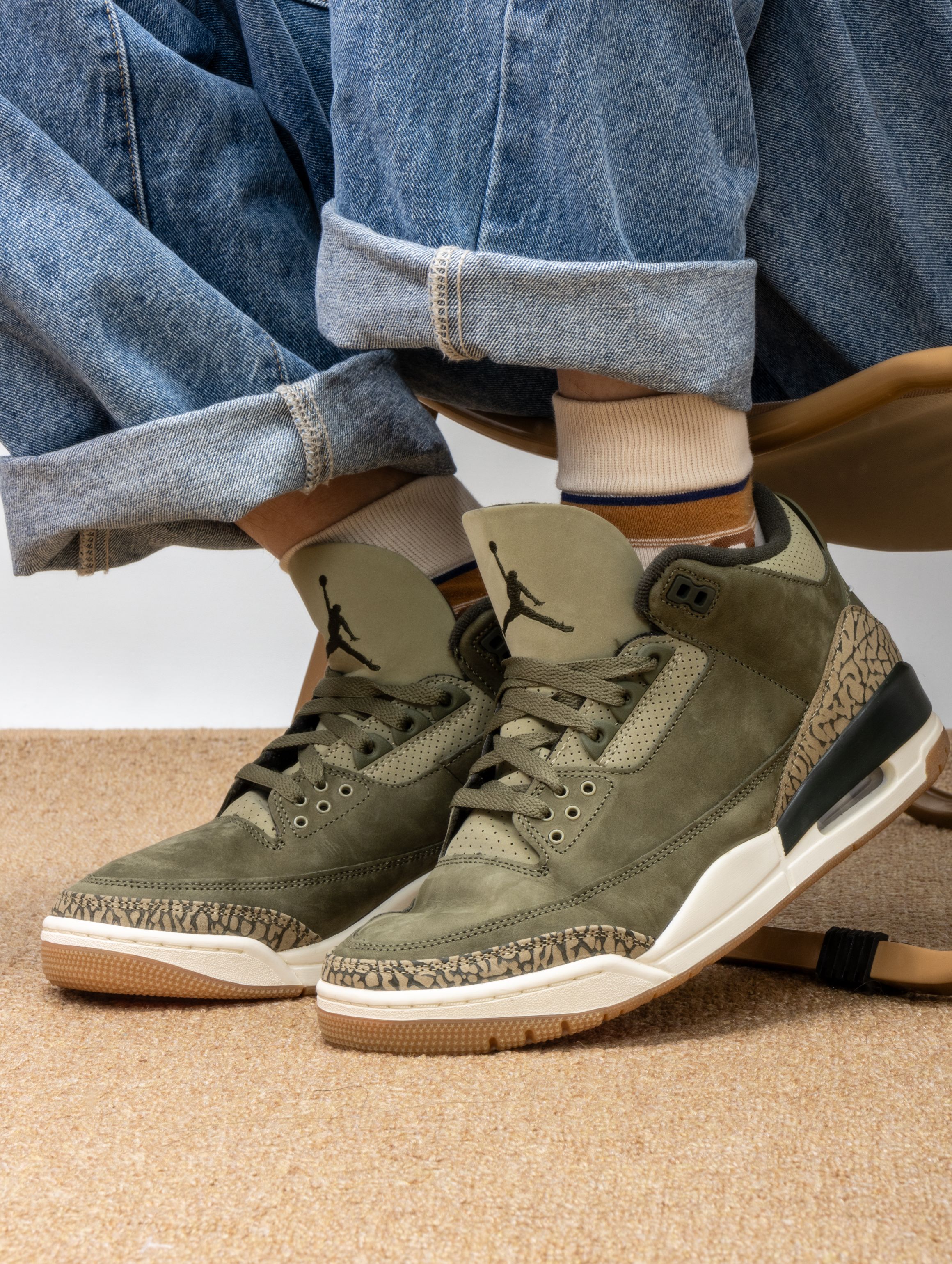 AJ3 “Family Affair”开箱瞬间真的有被暖到。军绿色很适合这个季节。 上脚还是熟悉的AJ3舒适感,后跟Air缓震走一天都不累,中帮设计对脚踝的包裹感刚刚好。奶油色皮革搭配做旧中底,复古味很浓,属于四季都能穿的配色。 每次穿都能感受到设计里藏着的“家”的温度。这双不止是球鞋,更像一份温暖的陪伴。
