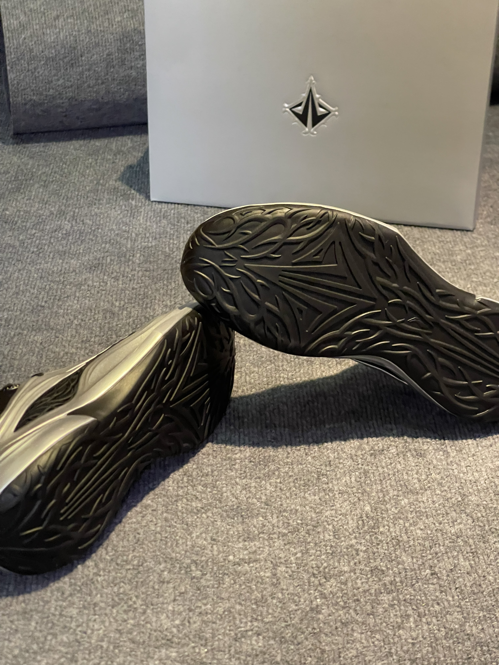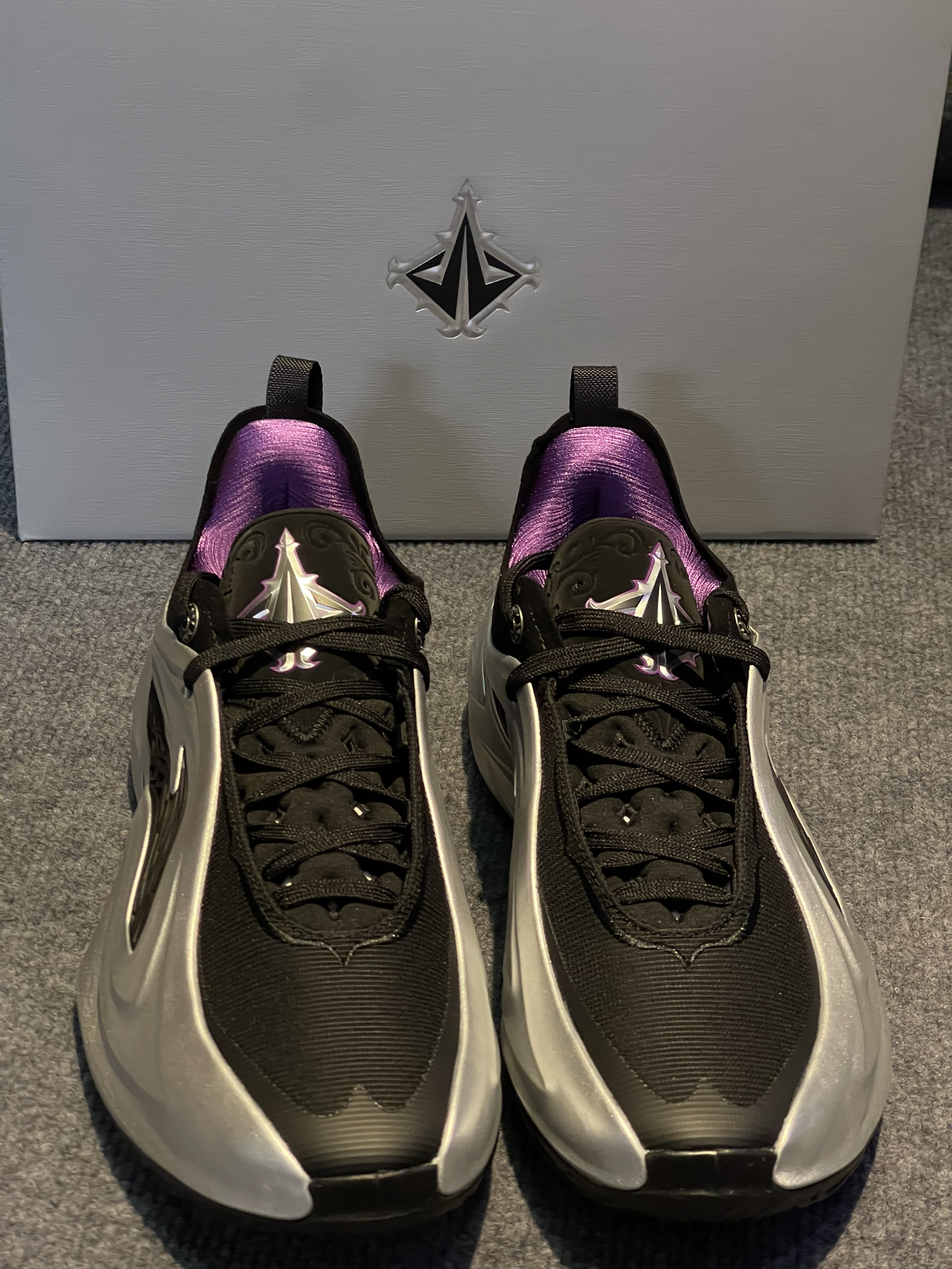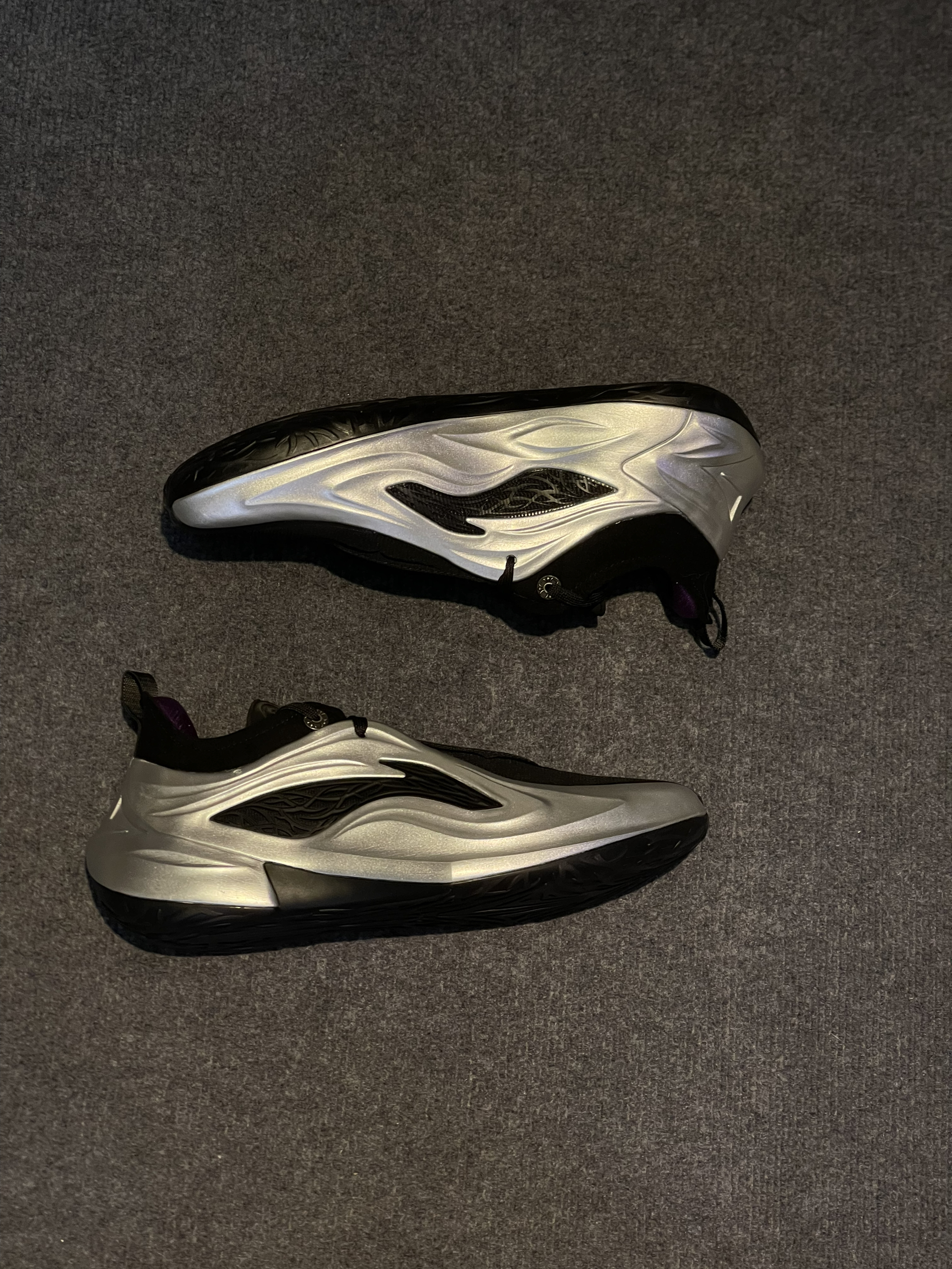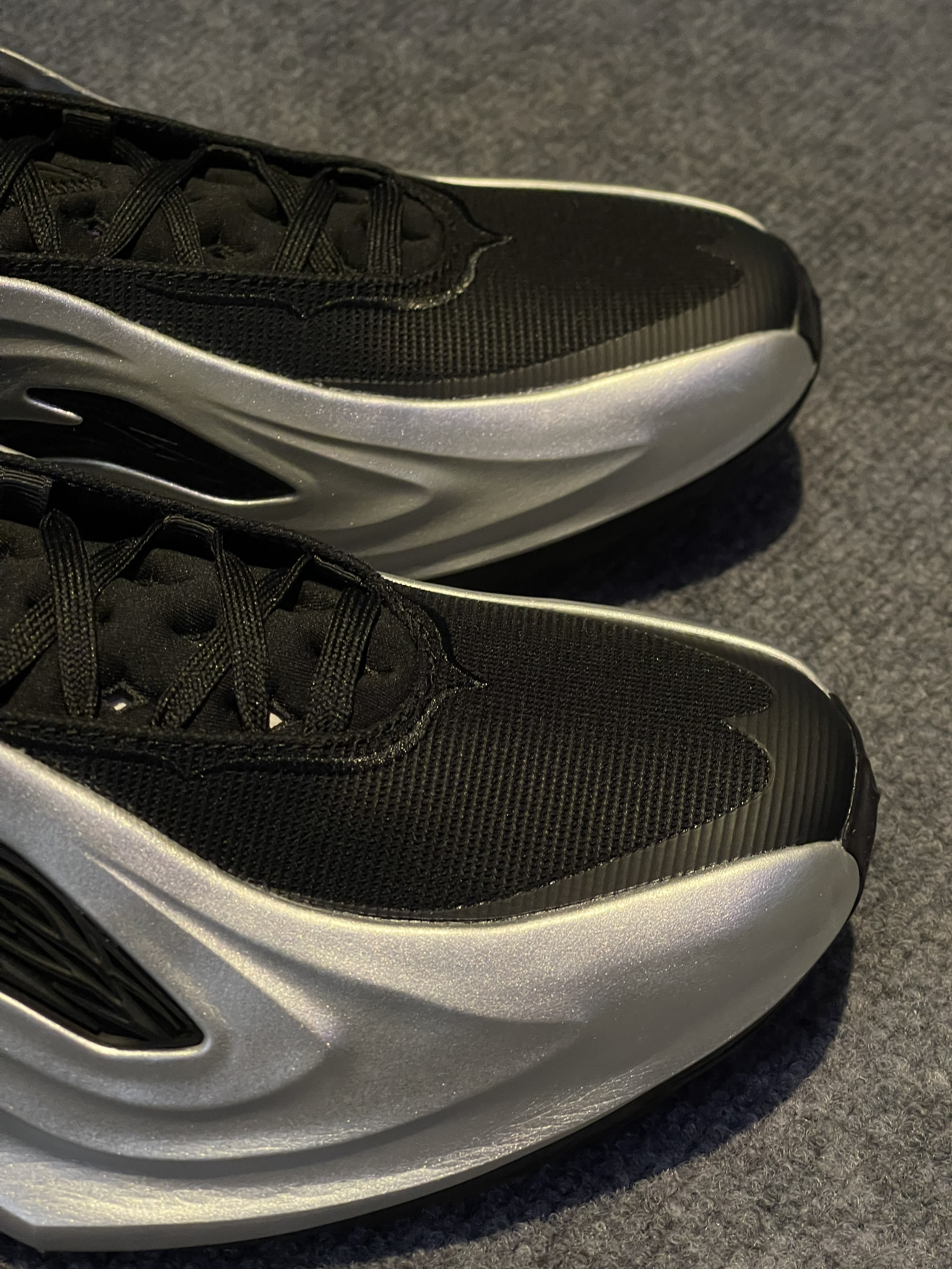 这个感觉有点科技感的配色,为什么会起一个荆棘呢💔,整体看起来鞋身很厚重,刚上脚穿着没有什么跑动感🏃, 细节虽然很多,但实战鞋还是得以性能为主,轻体重后卫就不建议了,锋线更为适合一点🏀,还有就是鞋底耐磨性表示质疑🤨,虽然荆棘的纹路很好看,但前掌内外侧纹路很淡真的能耐磨吗?🤔优点就是鞋脚一体性不错,后跟锁定很稳,不拖沓👟,码数不偏我正常47.5没什么问题,你们觉得它还有哪里符合荆棘配色?评论区聊聊吧🫨