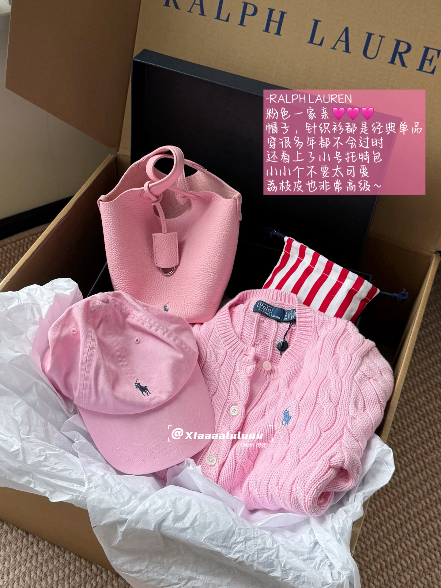 -RALPH LAUREN 粉色一家亲🩷🩷🩷 帽子,针织衫都是非常经典的单品 穿很多年都不会过时 还看上了小号托特包 小小个不要太可爱,荔枝皮也非常高级 #拉夫劳伦 #粉色系穿搭 #粉色系帽子 #给冬天点颜色瞧瞧 #天冷我就穿这件
