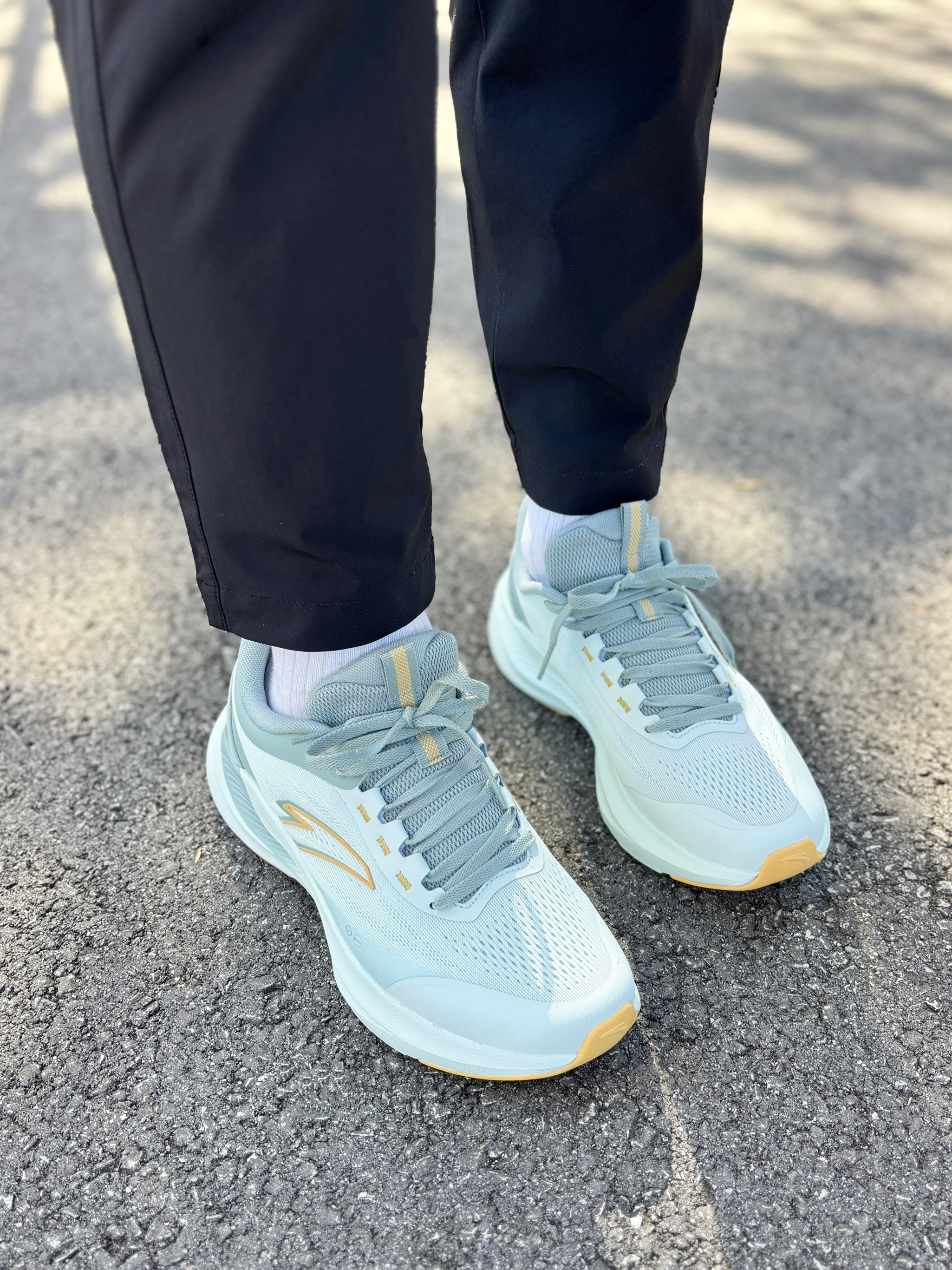 这双 安踏 城际'冰晶' 跑鞋👟真的有点东西,能通勤能穿搭还能跑步🏃🏻♂️忍不住给兄弟们分享分享一下~ 首先是这个鱼目青配色拿捏了🍃 低饱和的青绿色清爽又耐看,春夏搭配各种衣服都没压力,属于随手一穿就很好看的类型~ 脚感比我预想的要舒服!虽然是基础EVA中底,但调校得特别软弹💨走路带点微微的回弹感,强度合适,长时间穿着也不会累脚,体重大的朋友穿也是完全ok的~ 再一个就是抓地力很稳!下雨天...