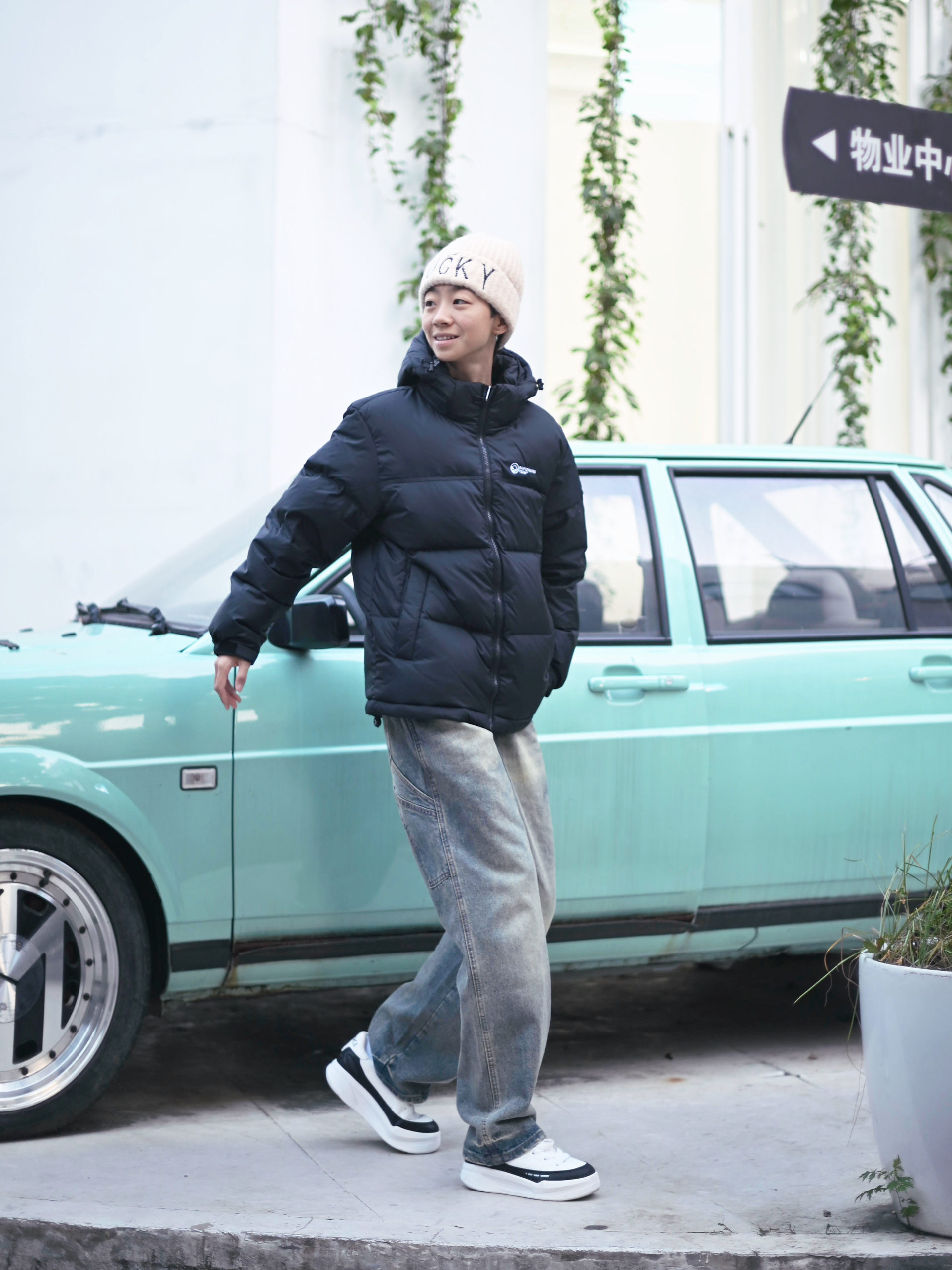 172CM|55KG 👔:m👖:m|👟:39码 一件能盘活整个衣橱的羽绒服 大概就是这样子吧 穿上俺的鸭鸭山系户外羽绒服啦~ 美式落肩轮廓撑起松弛感 搭配浅蓝直筒牛仔裤和厚底运动鞋 轻松穿出层次感。