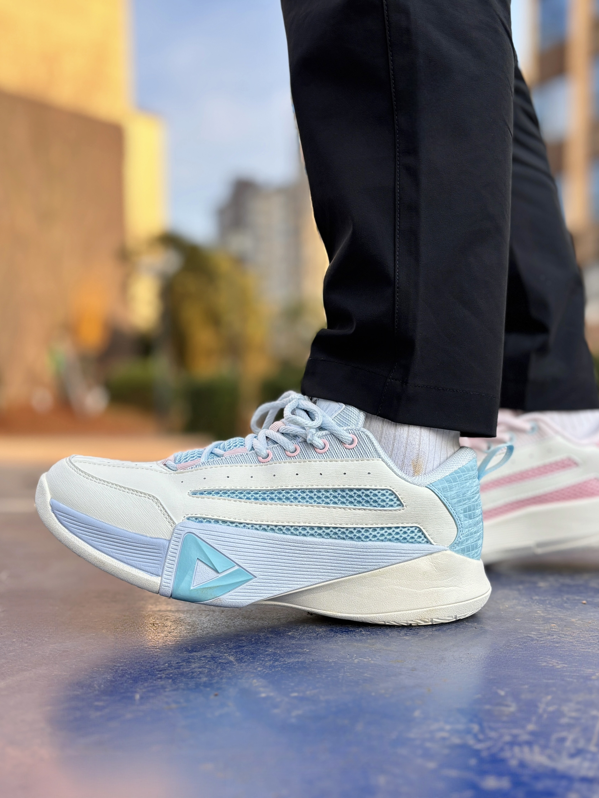 战神系列大家都不陌生!今天也是带来这双 匹克 态极战神2.0 篮球鞋👟和一代比变化真心大,除了侧面那两道熟悉的透气条,整个鞋都换了种设计语言,线条特别利落,力量感满满🌪️ 颜值方面,大底分层切割太帅了,立体感十足!前掌的logo融合得恰到好处,又醒目又不突兀。另外粉蓝鸳鸯配色真的敢玩,上脚也比较好搭,是属于那种低调里带点骚气的帅😎 实穿感受: 1⃣️ 中底明显加料了,重心比一代高,不是贴地飞...