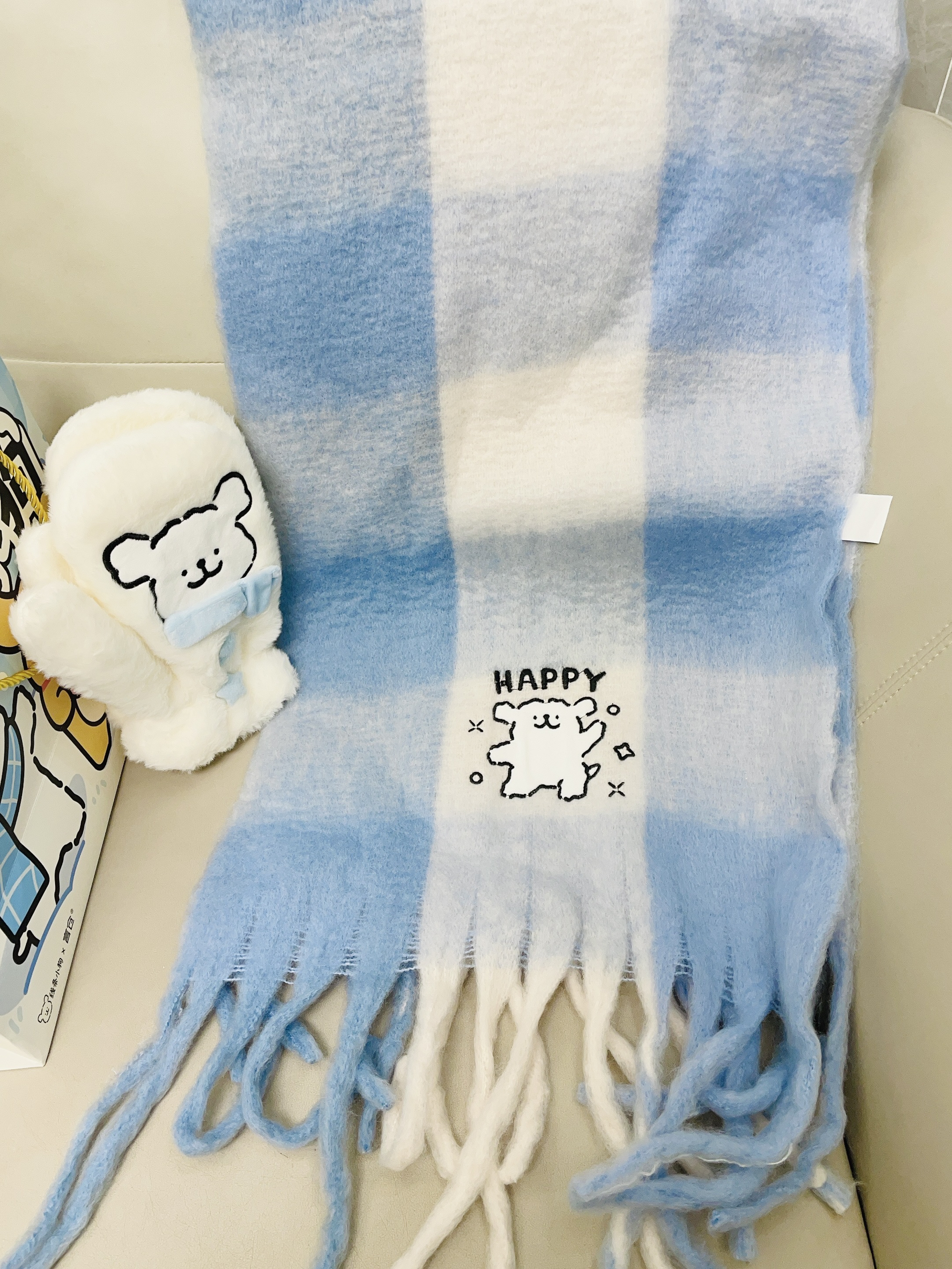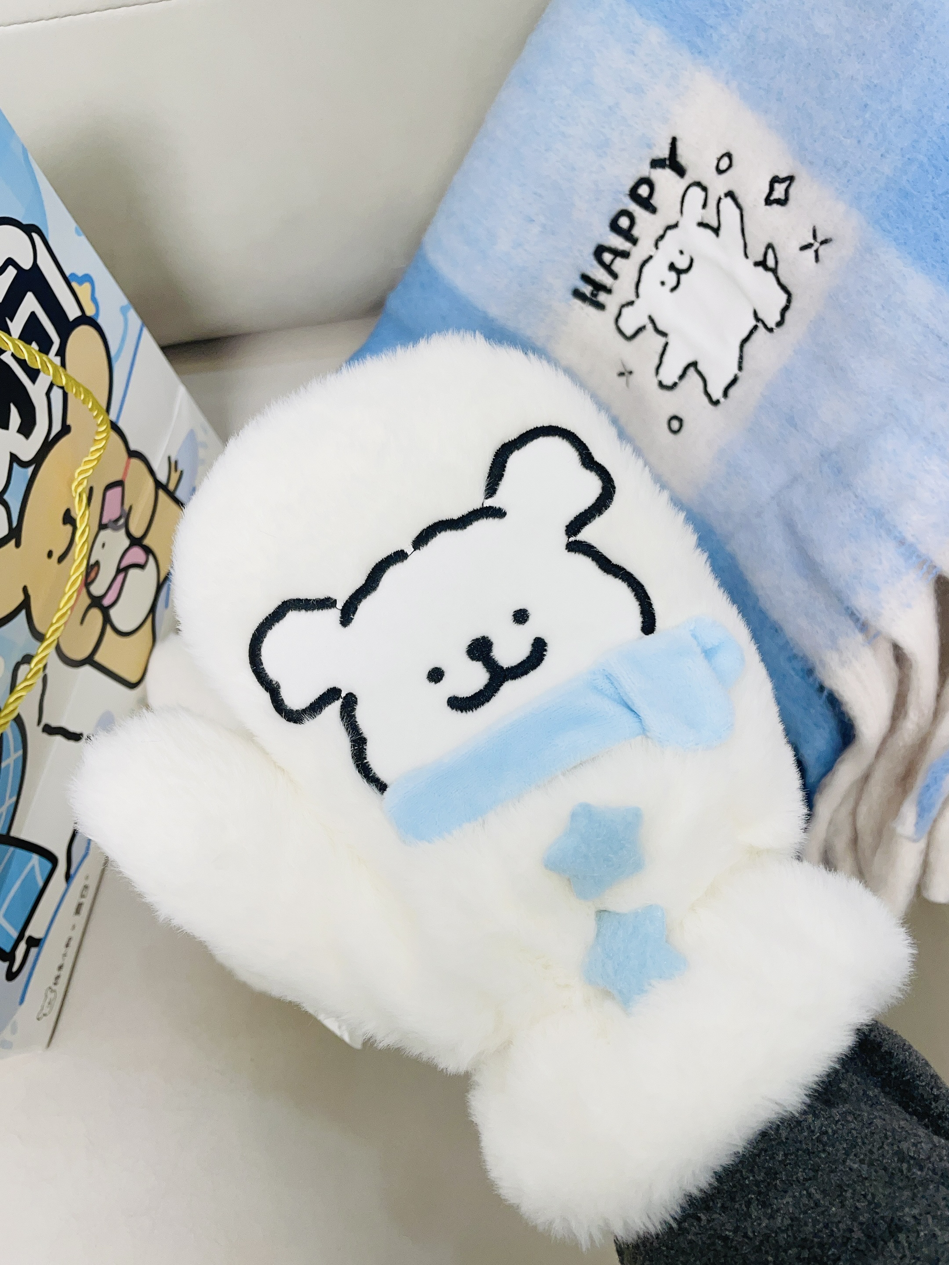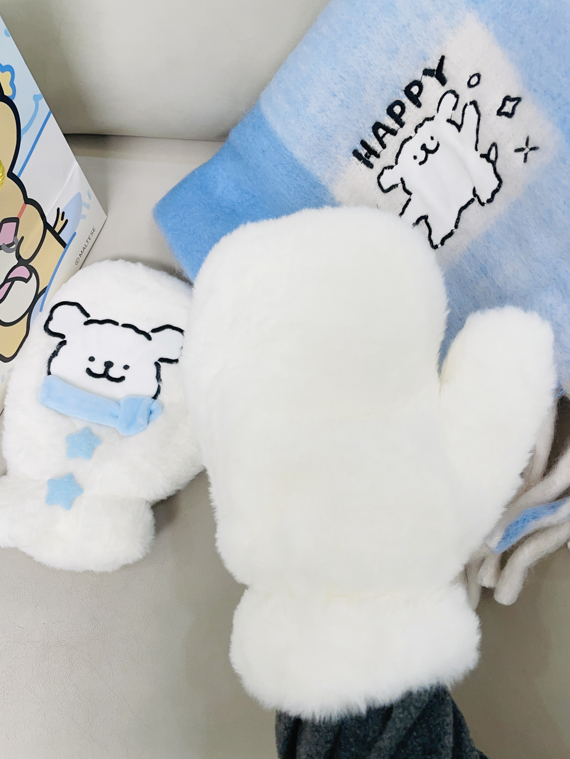 这不十二月啦天气比较冷 加上又是年末的时候 我给自己安排了新的围巾 手套 言仓×线条小狗联名的这款围巾 手套可可爱爱的 蓝色小清新 摸着柔软舒适 细节做的可以蛮好的 我带着好暖和 下雪都不怕冻 包装精致 用来送礼都可