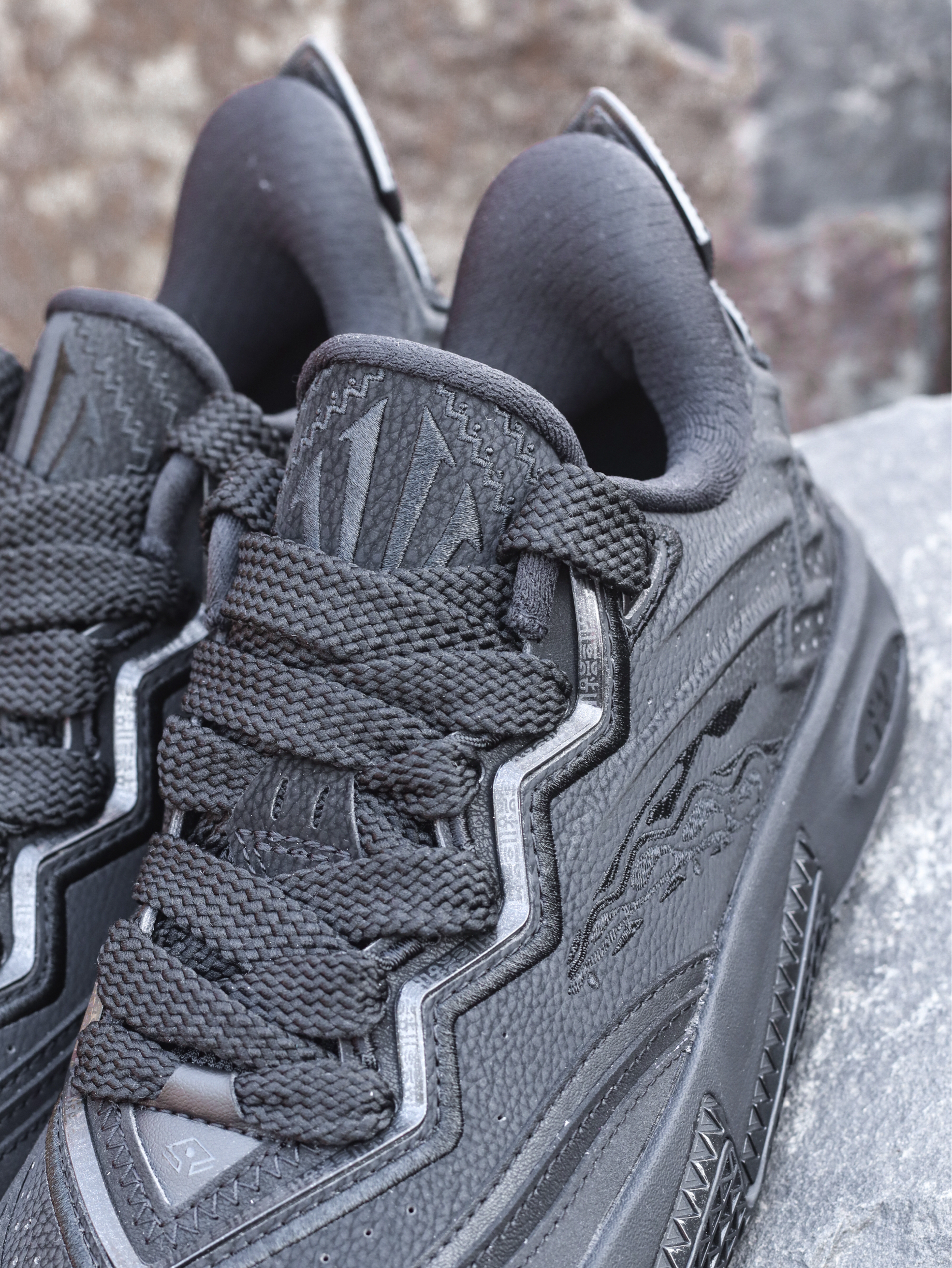 不得不说,欧文二代「黑玛瑙」感觉比之前发的「黑武士」要更像黑武士配色~ 不过后跟是紫色刺绣点缀,我个人是很喜欢紫色的~整体属于低调百搭,又不乏一些小亮点的感觉! 鞋面材质从之前的网面换成皮革了,质感整得还不错!虽然是纯黑,但是层次感挺丰富的!我感觉这款「黑玛瑙」就很适合秋冬季,也更适合日常通勤~大家觉得这个收官配色怎么样?