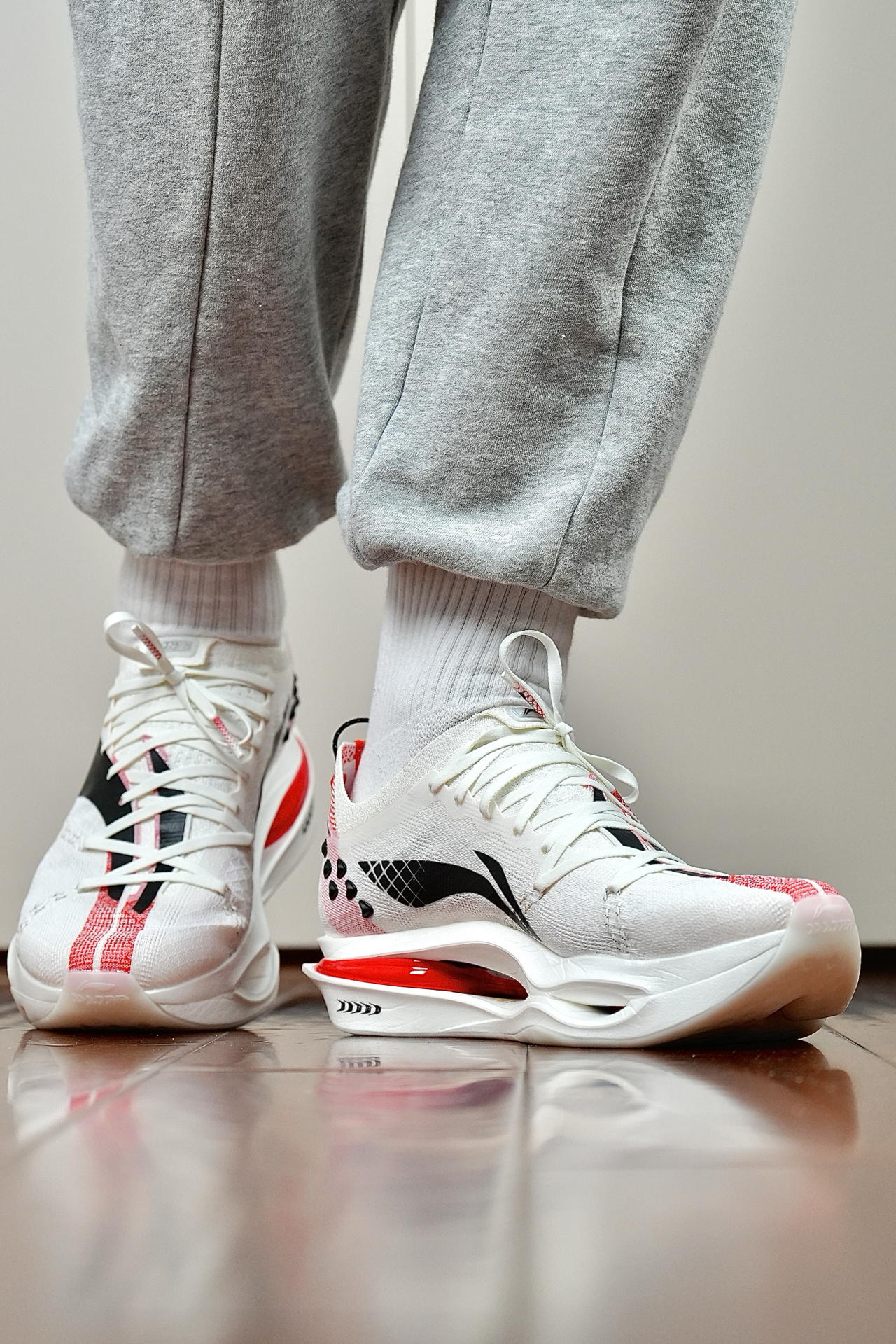 今天分享的跑步鞋为 李宁 飞电6Ultra,鞋子配色以米白色鞋面,搭配黑色LOGO与红色点缀,比较吸睛的地方是鞋型,外观看着科技感十足,配色挺简单的 配置简单说:上下层超䨻材料,超䨻胶囊中底+T1000双拱碳板+䨻丝鞋面,GCU网状大底 上脚后,中底的弹性很澎湃,碳板搭配双弜结构,推进迅猛,但驾驭门槛实在是太高了,我穿了一会脚底板就酸的很,另外依旧是“禁穿”款,职业赛事不能用 适配人群,只推...