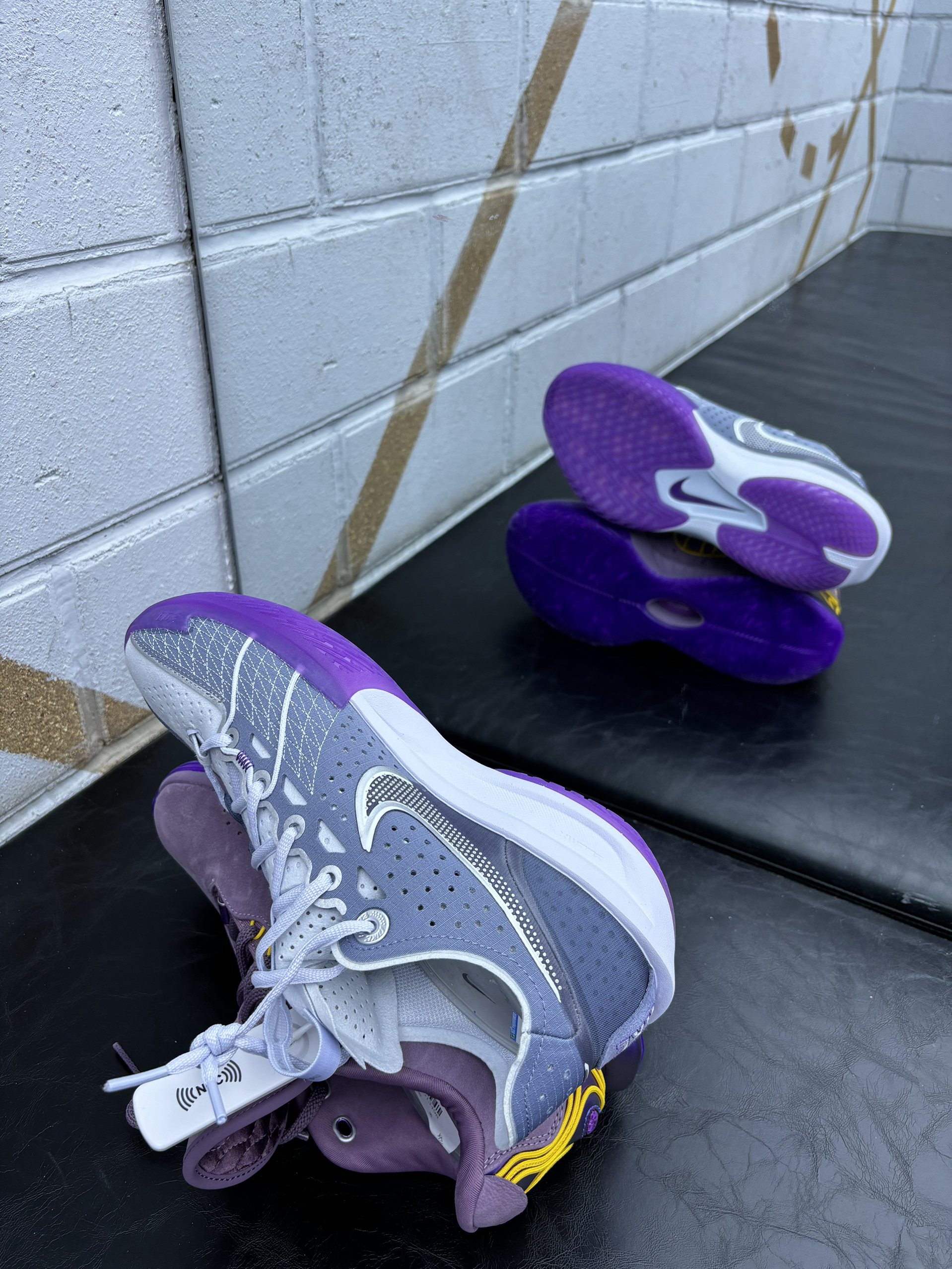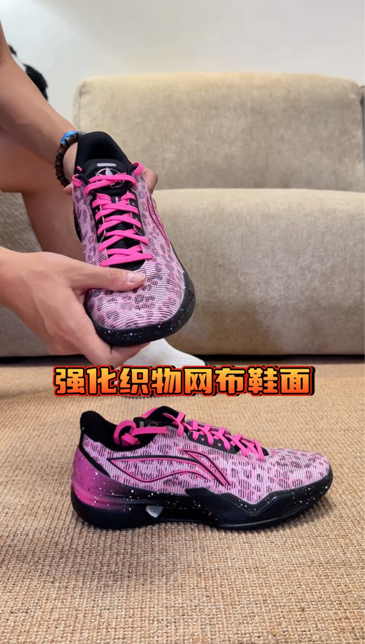 黑粉+亮粉的撞色,加上鞋面的豹纹纹理,视觉冲击力直接拉满,在球场或日常出街都属于“一眼吸睛”的存在,连鞋带都是亮眼的粉色,细节上把个性感拉满了。
