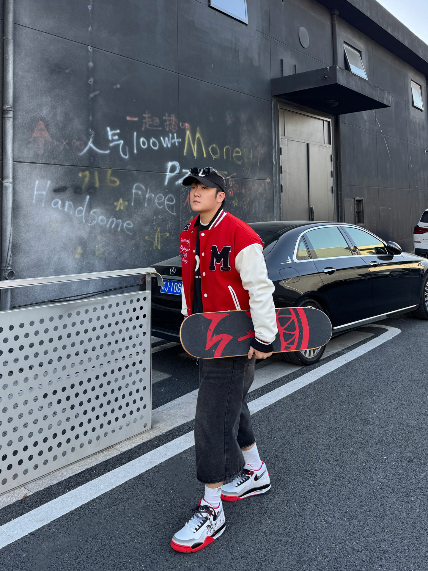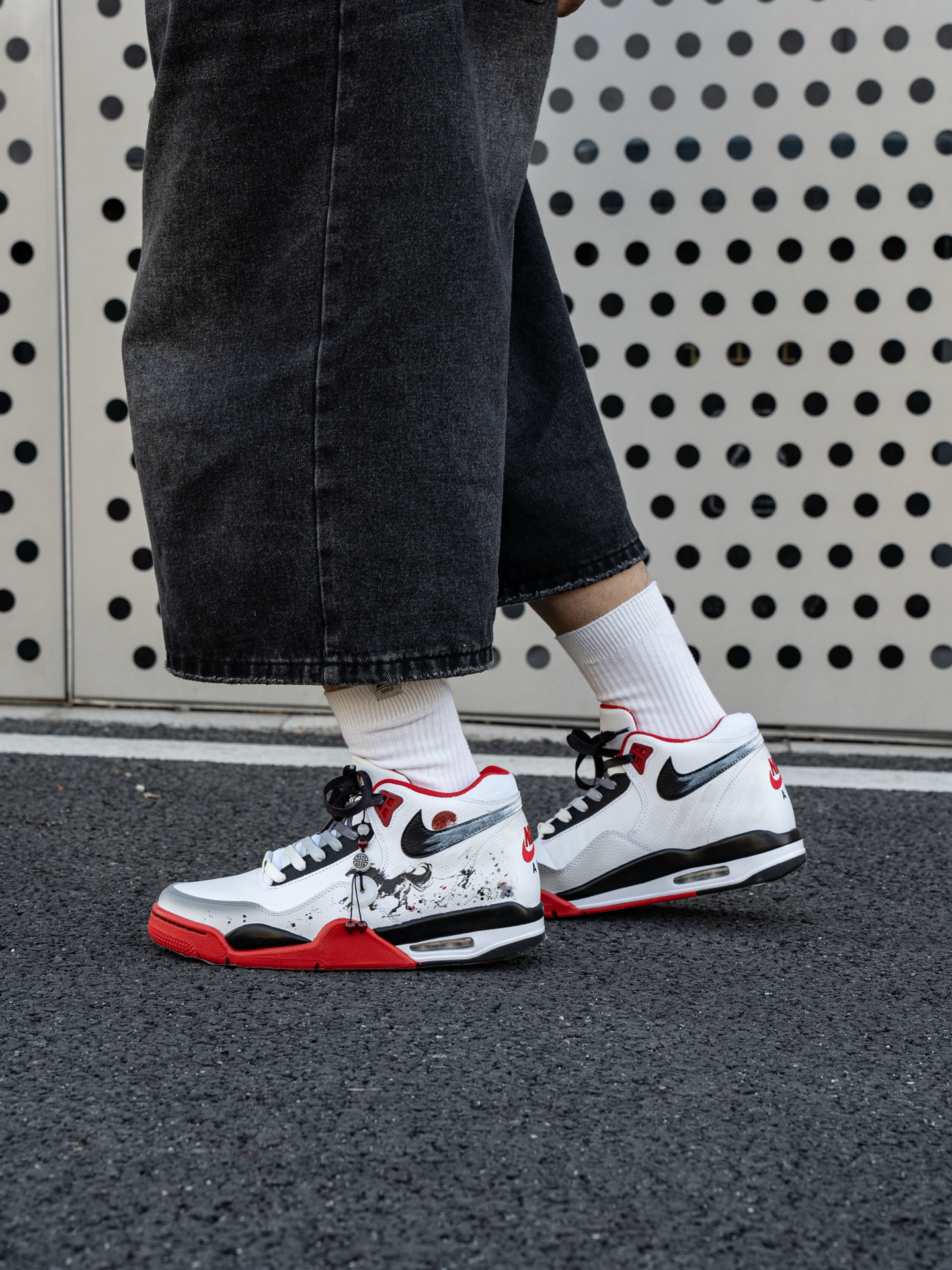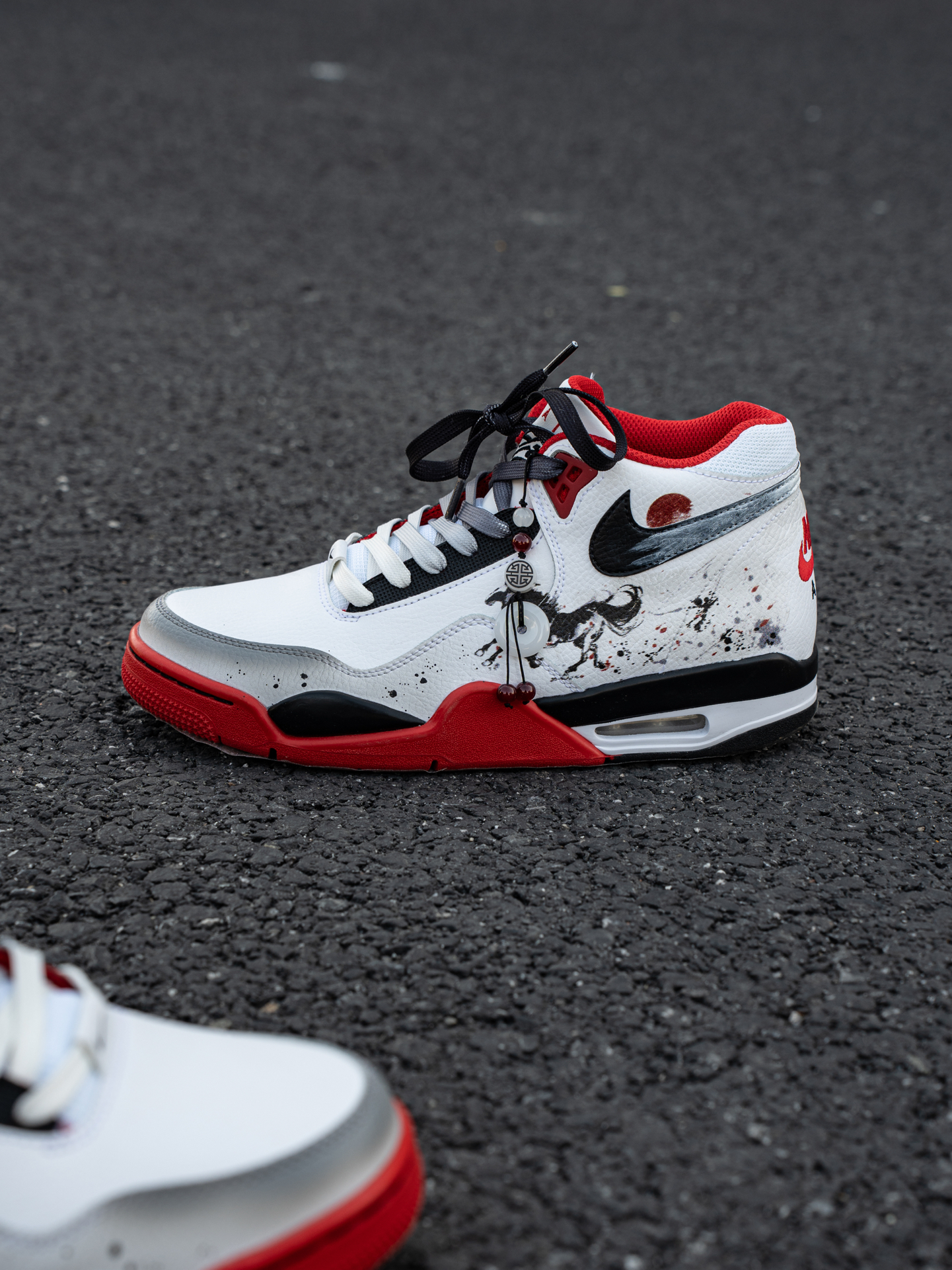 ~ 给大家分享一双 #Nike 的定制红鞋👟 ⚫️➕⚪➕️🔴的经典配色足够耐看👀 可以看到鞋后跟的位置是做了奔腾的黑🐴 马年➕国风元素的融合 整双鞋真的不要太酷了😎 我选择用一件红色的棒球服来搭配🕹️ 整体的感觉红红火火 很显朝气 脚感还蛮轻便的 比较偏运动风✌︎' ֊' 尺码小建议: 徐哥平常穿的40这双40刚好合适‼️ @万花弄定制 #被这双鞋帅到 #韩系入冬穿这双 #年度潮流关键...