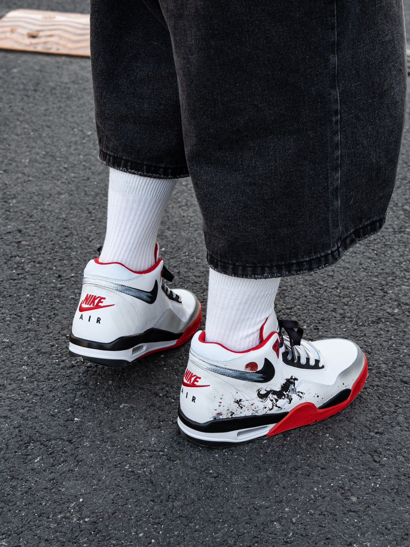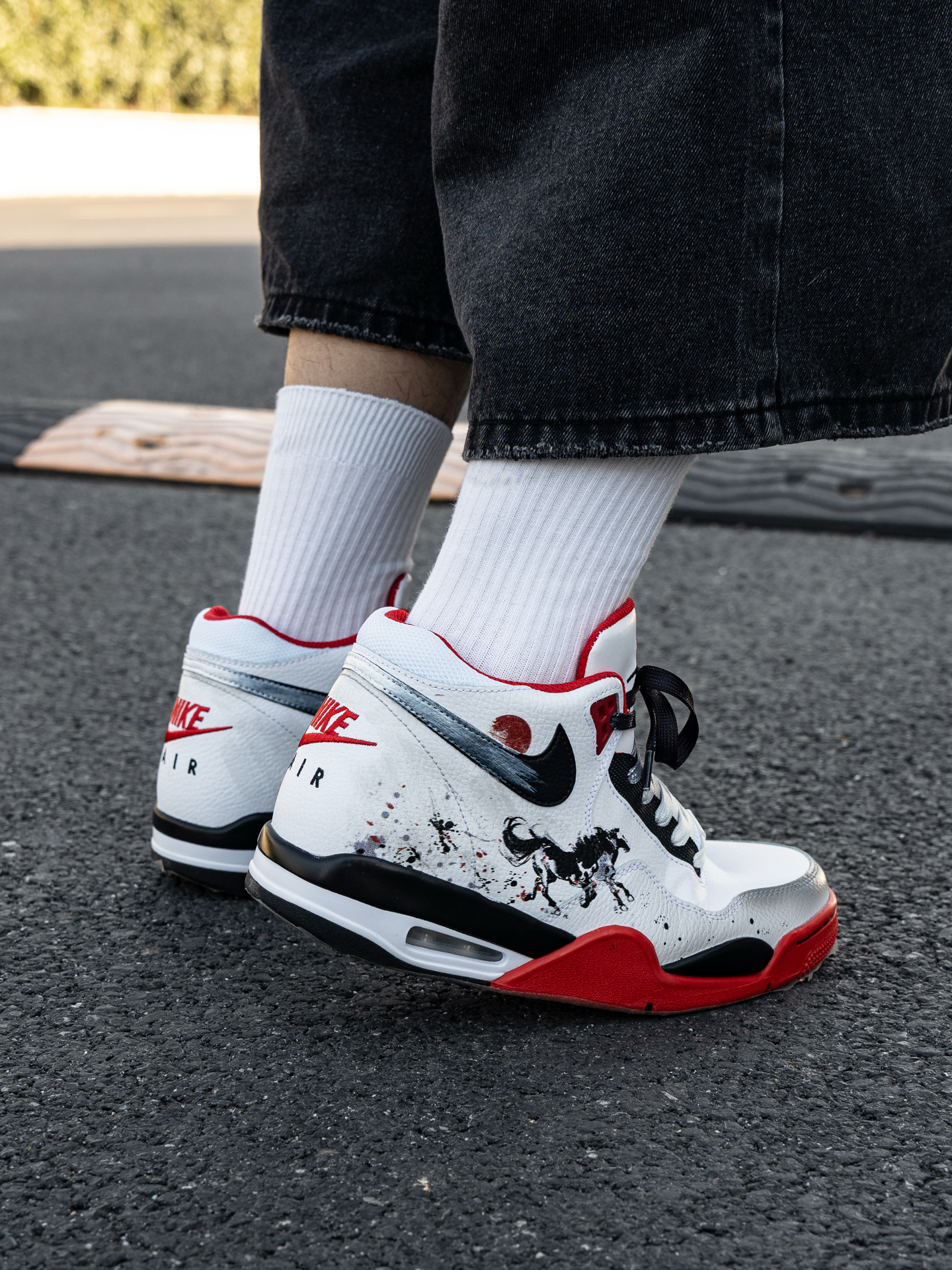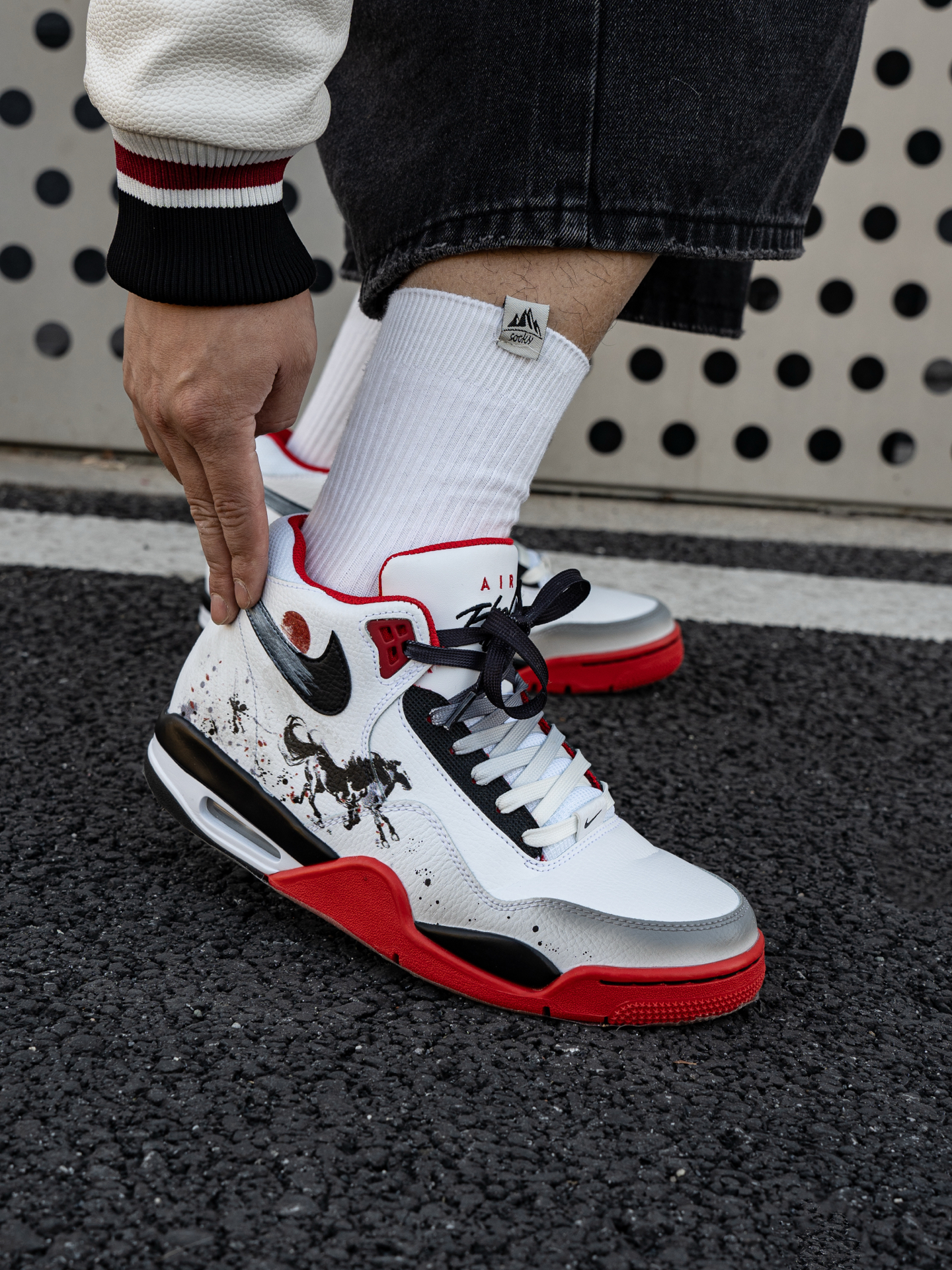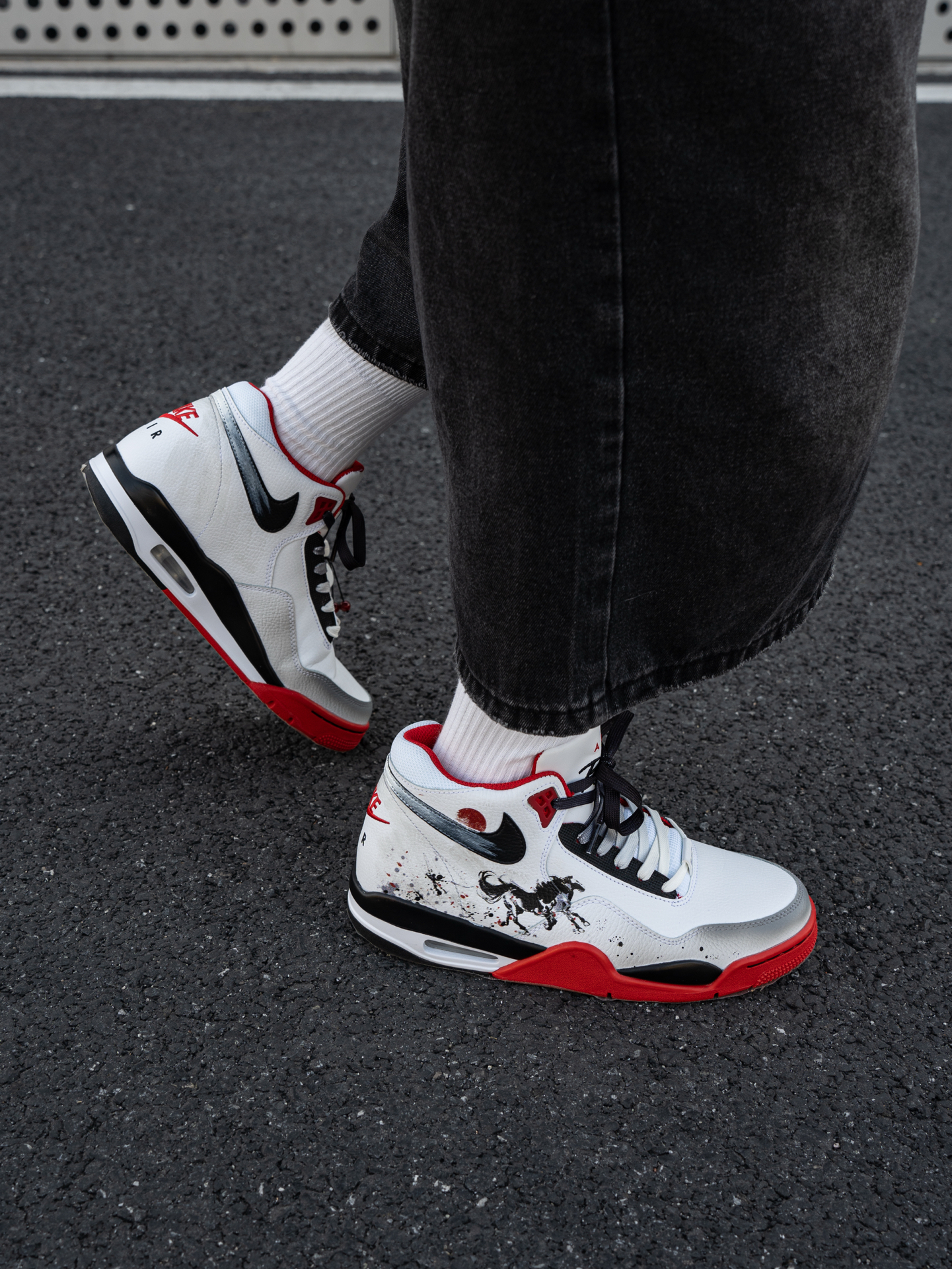 ~ 给大家分享一双 #Nike 的定制红鞋👟 ⚫️➕⚪➕️🔴的经典配色足够耐看👀 可以看到鞋后跟的位置是做了奔腾的黑🐴 马年➕国风元素的融合 整双鞋真的不要太酷了😎 我选择用一件红色的棒球服来搭配🕹️ 整体的感觉红红火火 很显朝气 脚感还蛮轻便的 比较偏运动风✌︎' ֊' 尺码小建议: 徐哥平常穿的40这双40刚好合适‼️ @万花弄定制 #被这双鞋帅到 #韩系入冬穿这双 #年度潮流关键...