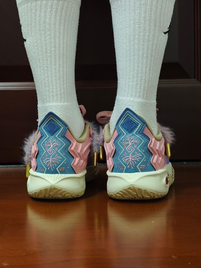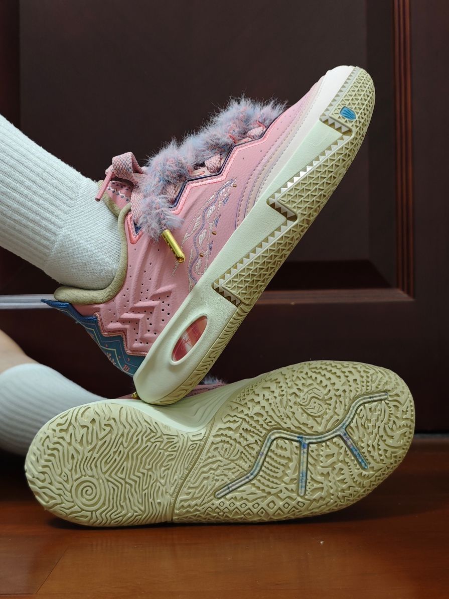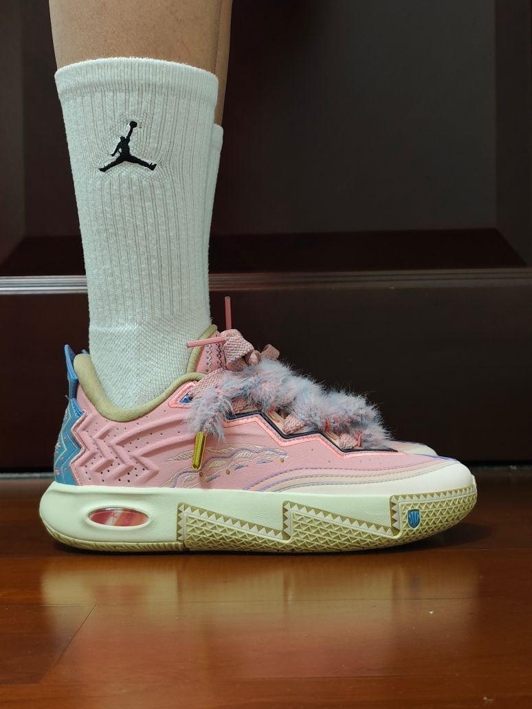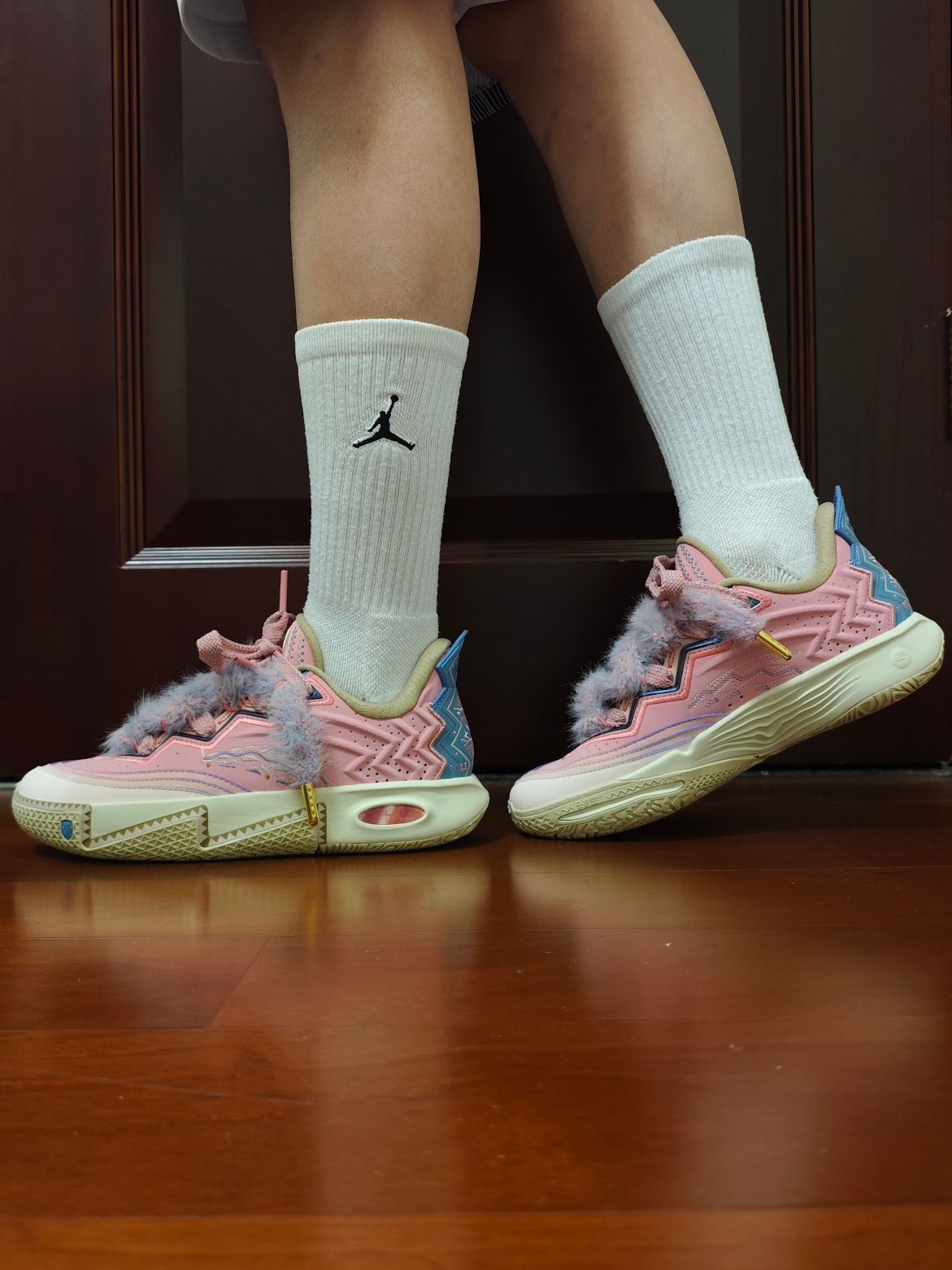 配色粉嫩,上脚也是毛绒绒, 实际却是球场利器、变向狂魔, 妥妥的“金刚芭比”。