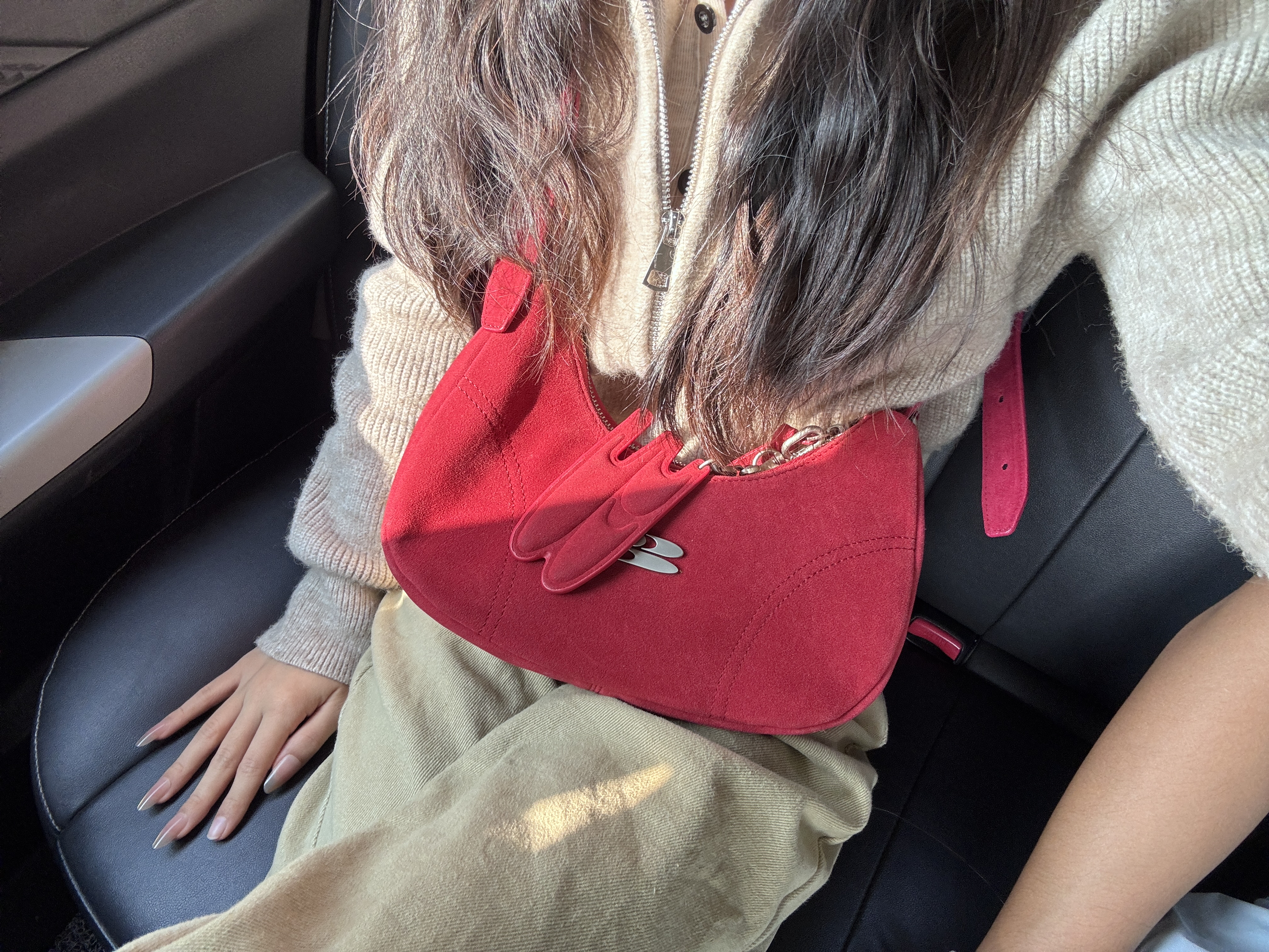 好看的包包要跟好闺闺们分享 真的很出片红的太正了 绒布非常适合秋冬,撞色款