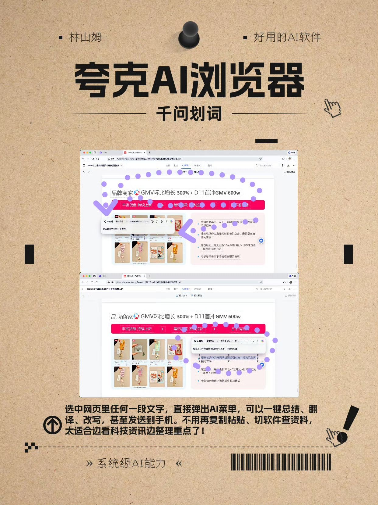 选中网页里任何一段文字,直接弹出AI菜单,可以一键总结、翻译、改写,甚至发送到手机。不用再复制粘贴、切软件查资料,太适合边看科技资讯边整理重点了!