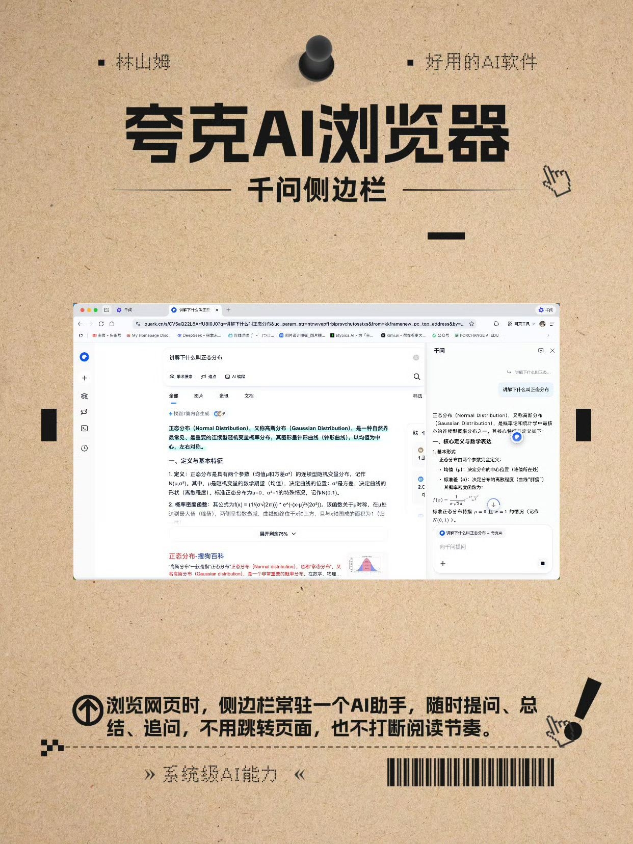 整个过程几乎没有离开当前页面,也不需要反复切换软件。这才是AI浏览器该有的样子——不打断、不复杂、不等待。如果你也厌倦了广告多、卡顿、AI功能还要装插件的传统浏览器,真的可以试试这款夸克AI浏览器。它不一定是最华丽的,但一定是最懂你工作流的那个。