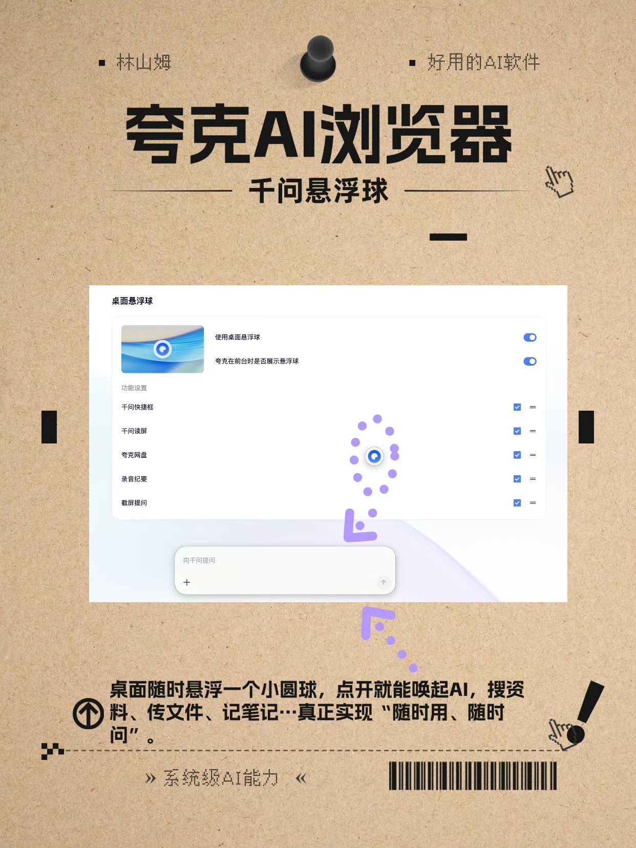 桌面随时悬浮一个小圆球,点开就能唤起AI,搜资料、传文件、记笔记…真正实现“随时用、随时问”。