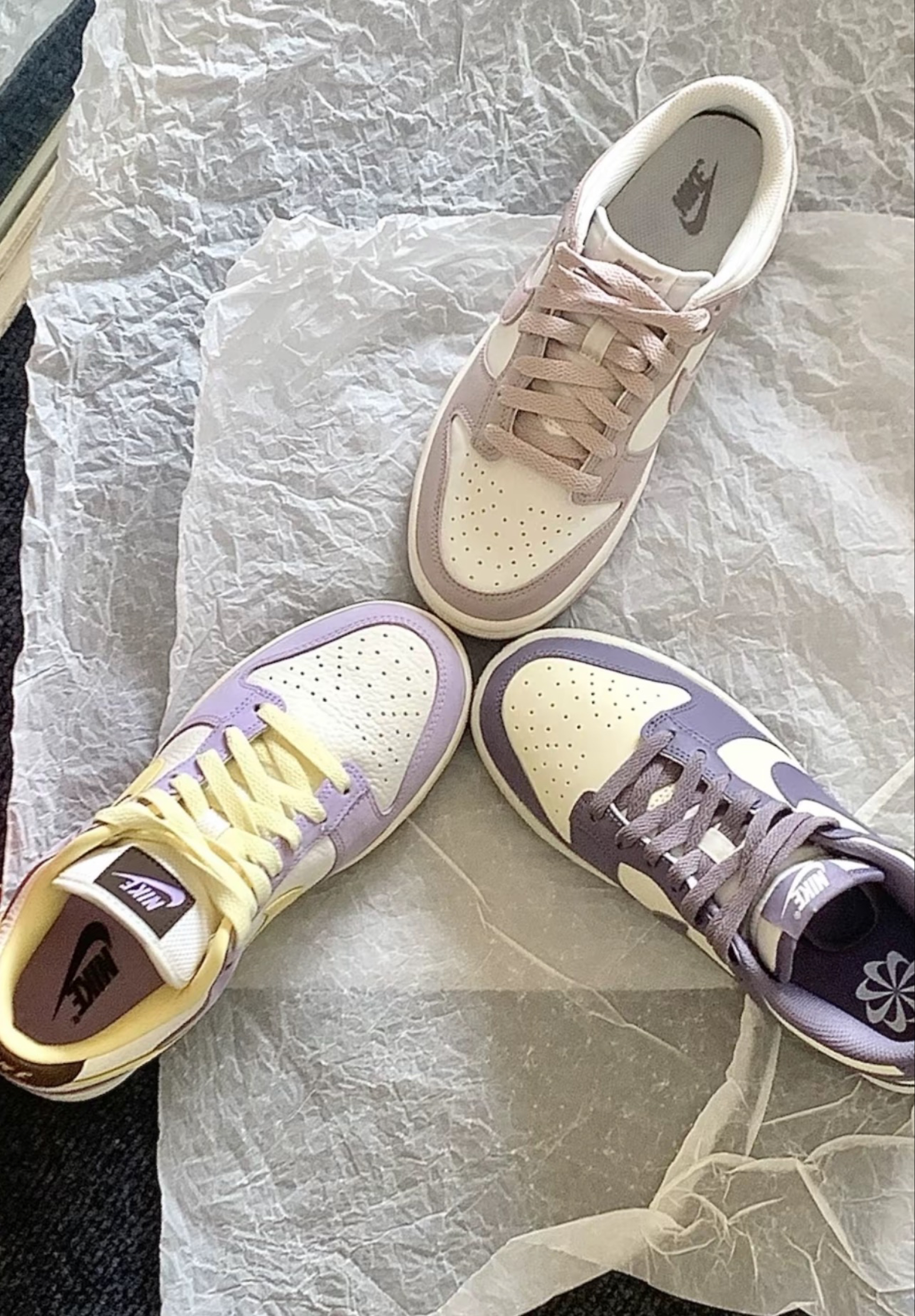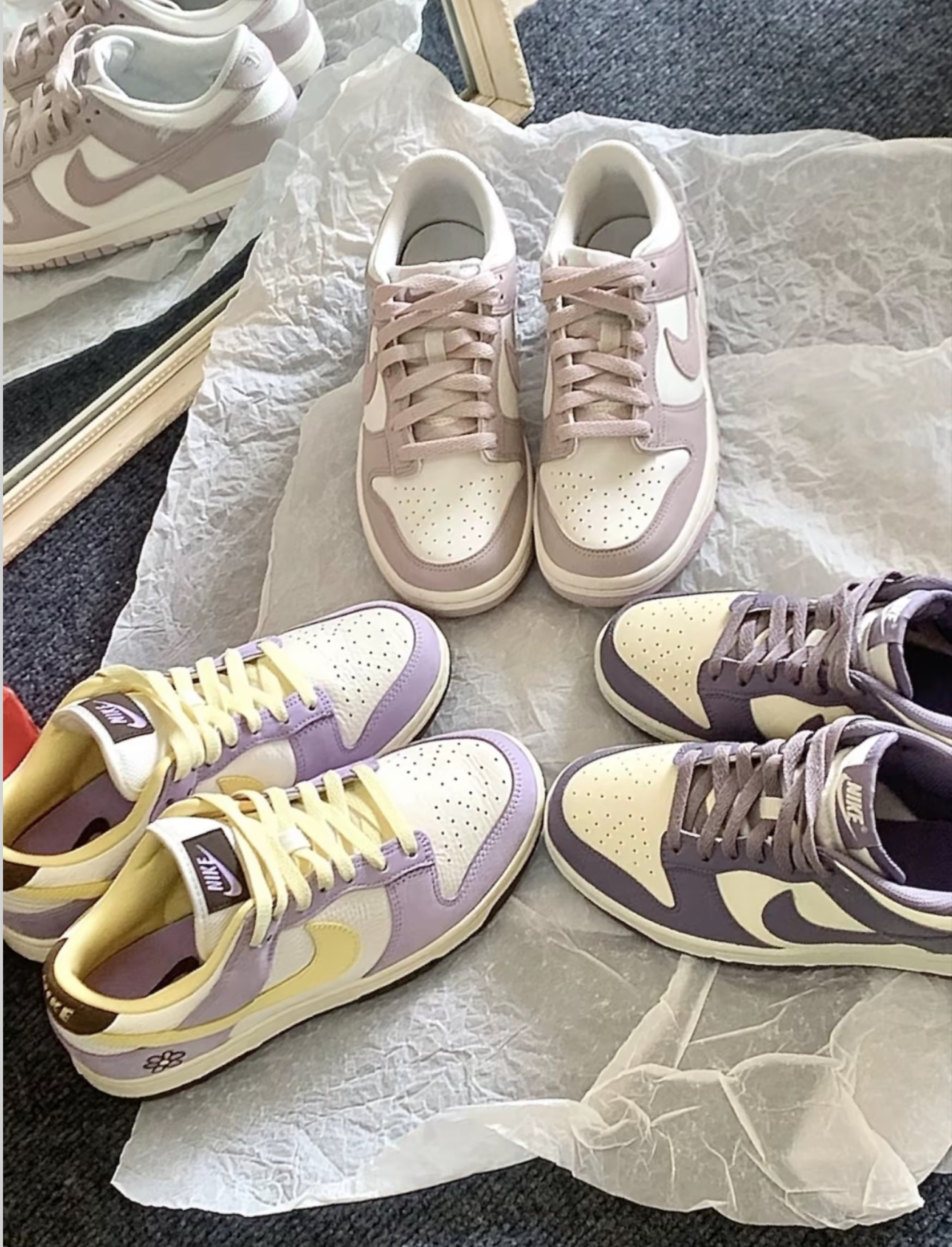 不同饱和度的紫色都好好看 精致感满分的皮革 质感hin不戳 低帮的Dunk鞋型好好穿 日常搭配满满氛围感