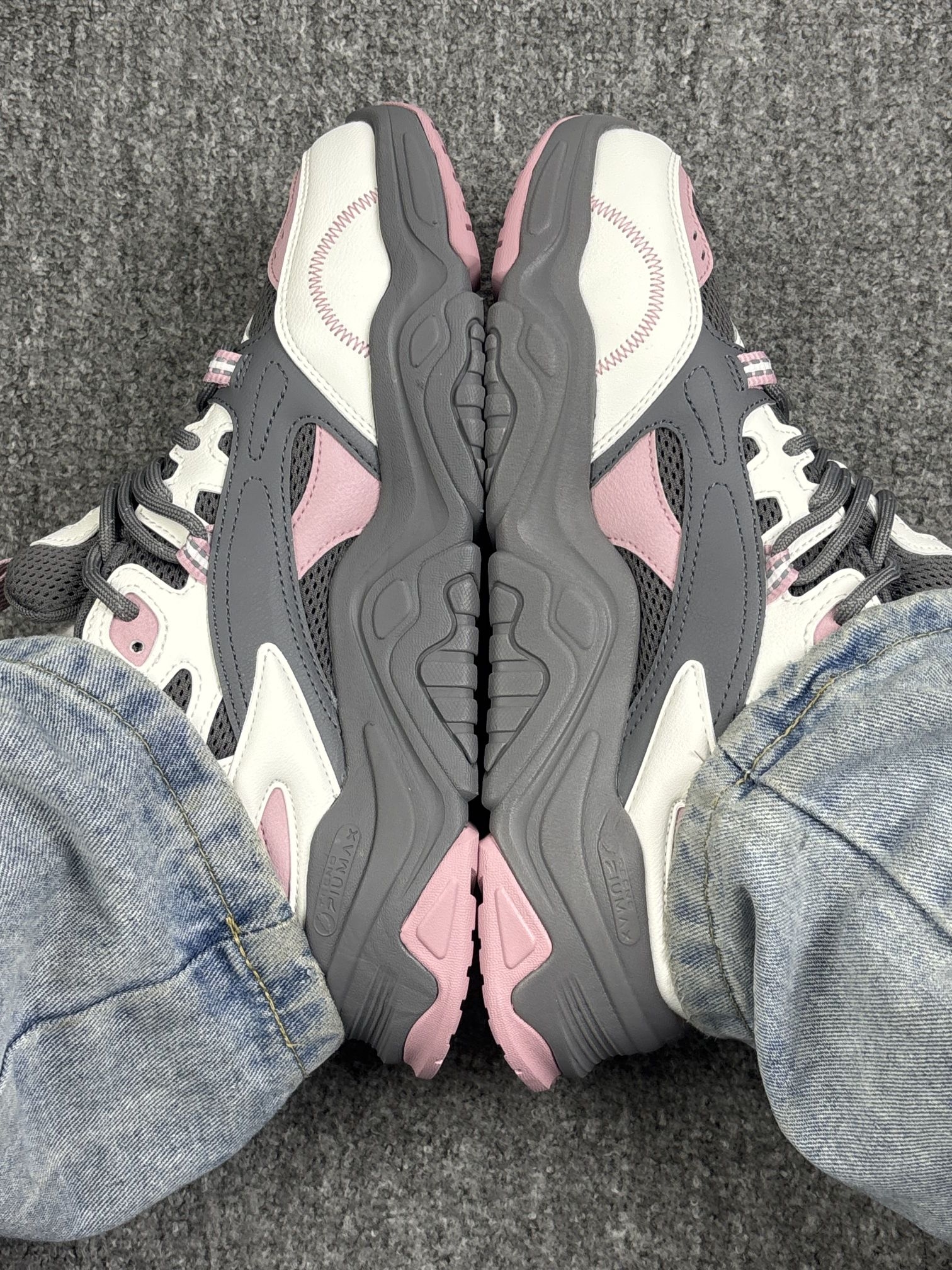 脚感方面还挺意外的,鞋床的软度刚好,日常走路逛个两小时街,脚底不会有硌得慌的感觉,后跟的包裹性也还行,不会磨后跟。鞋身是网面拼接的材质,现在穿透气度够,不会闷脚。 但缺点也很明显,鞋型偏宽,我正常脚型穿起来前掌有点空,得系紧鞋带才不会晃🏃♀️;而且鞋身的黑粉拼色虽然颜值在线,可网面部分特别容易沾灰,出门走一圈鞋面就显脏,得经常擦。另外鞋底的防滑性一般,在瓷砖有水的地面走,能感觉到有点滑,这点得...