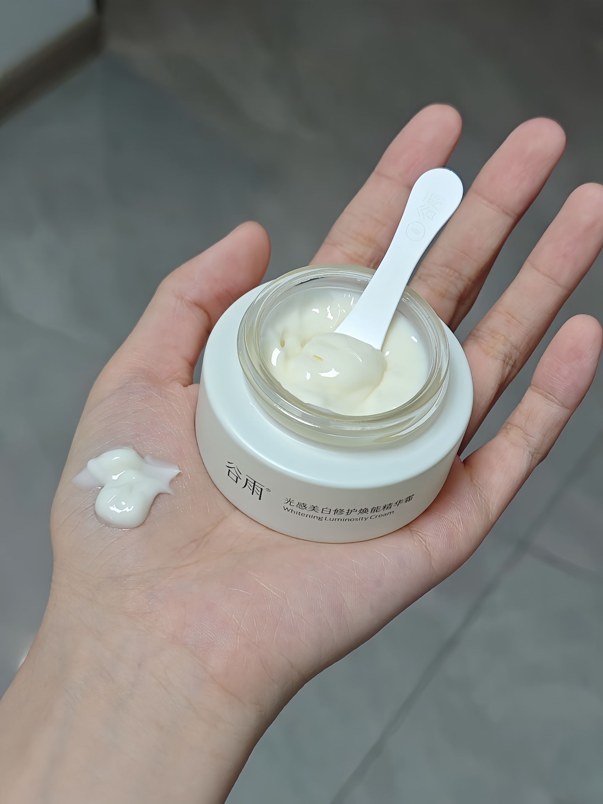 今天分享的这套谷雨雪肌水乳霜亲测过 是适合干敏皮(我的肤质)以及混合皮使用的~ 雪肌水的质地是比较清爽的,涂在脸上没一会就会被吸收,而乳液的质地是滋润的但不会黏黏的,建议温热手掌心按压会加快吸收! 精华面霜的质地是浓稠的,有点像老酸奶的质地,适合秋冬使用~感觉可以把前面补的水锁住封住!