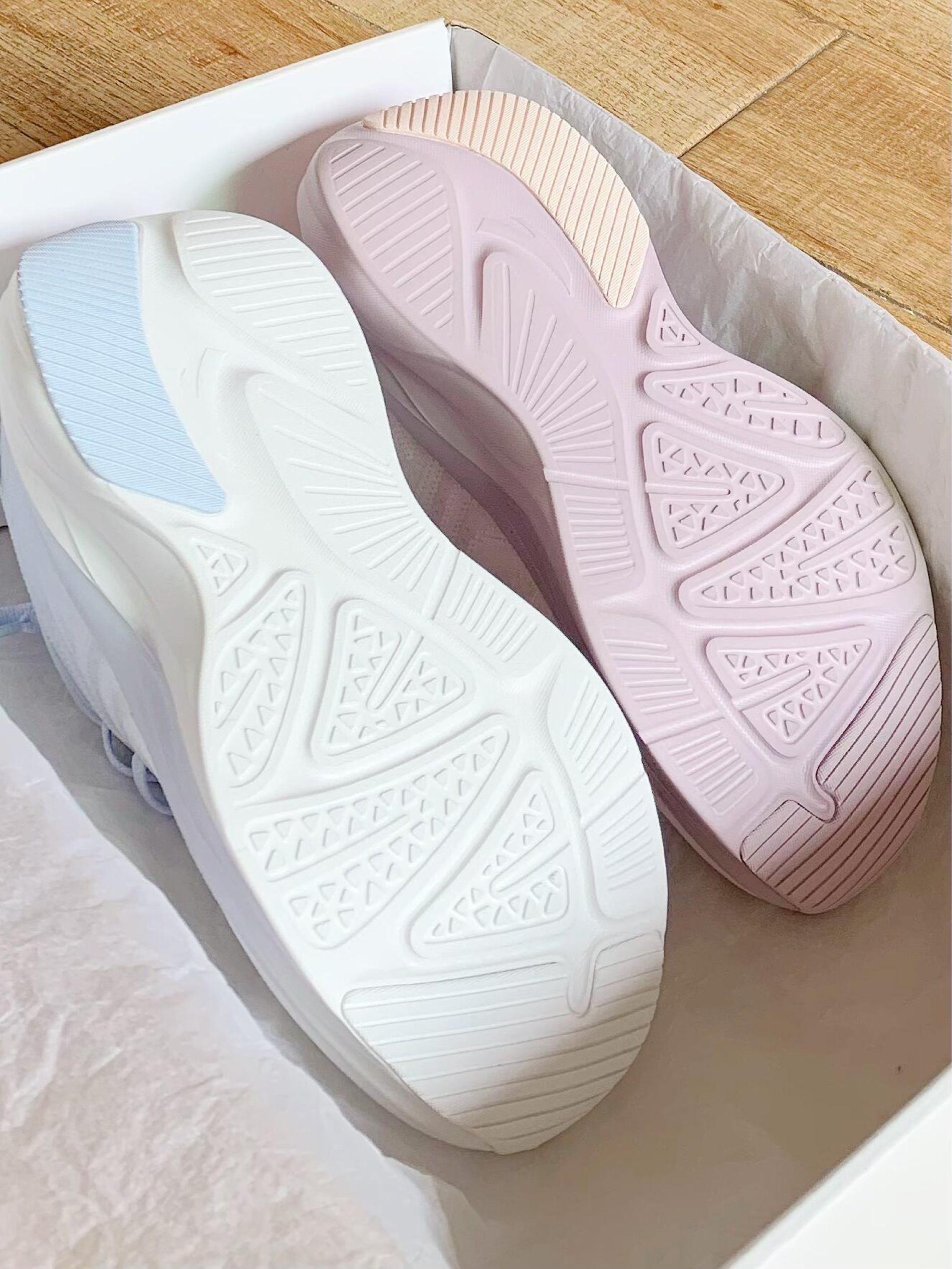 最近入手的俩双超便宜颜值狠狠在线的网面跑鞋🥰 🧊冰川蓝很有清新感~ 💗余粉白就很有少女感呀.超级好看 脚感都是很轻便!轻到飞起~ 穿起来太舒服了 网面透气性也不错.不闷脚,俩双换着穿刚刚好