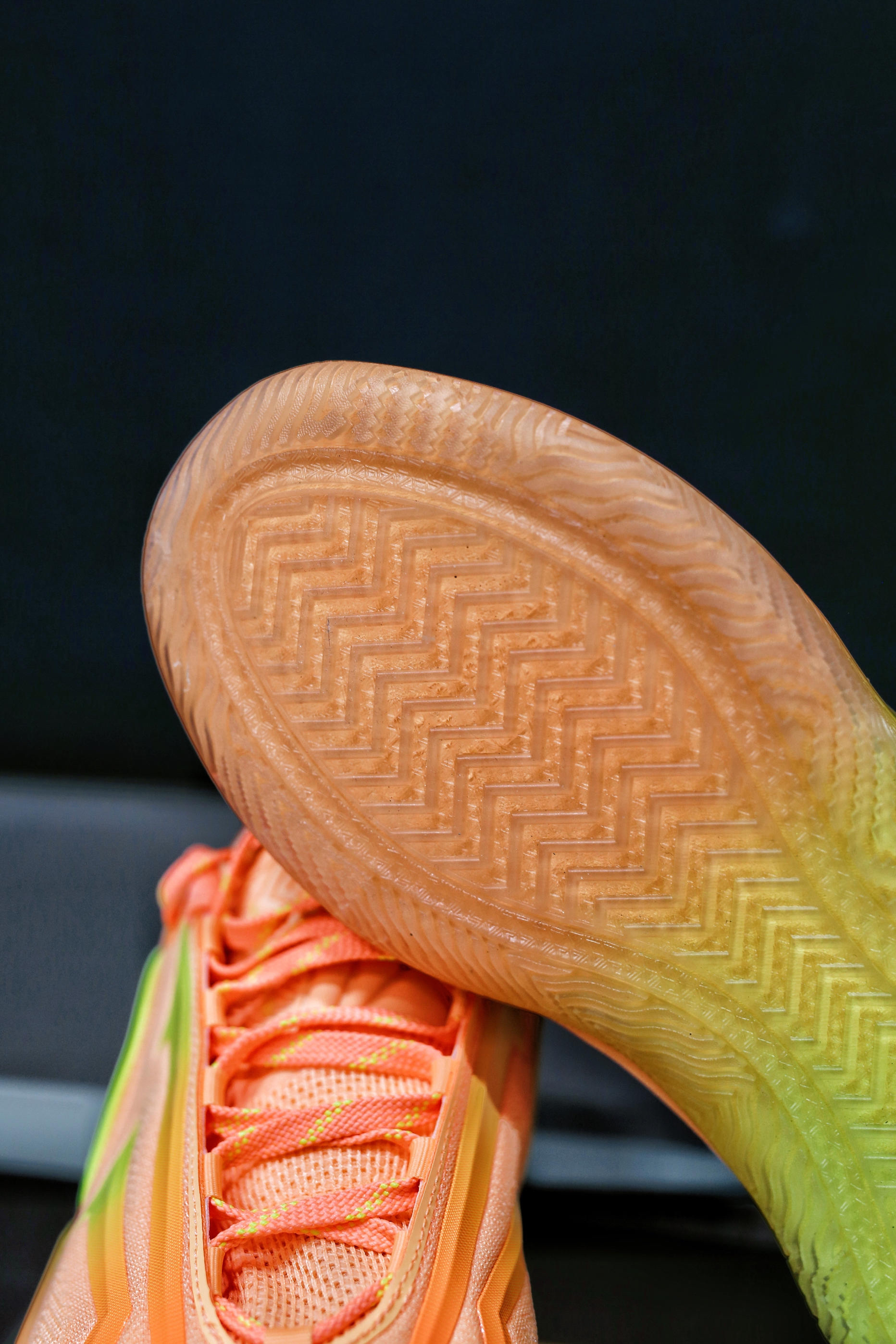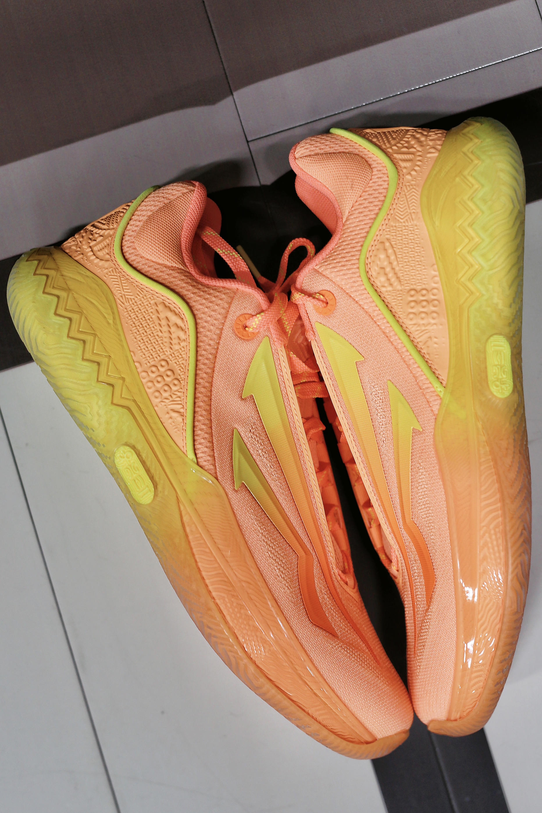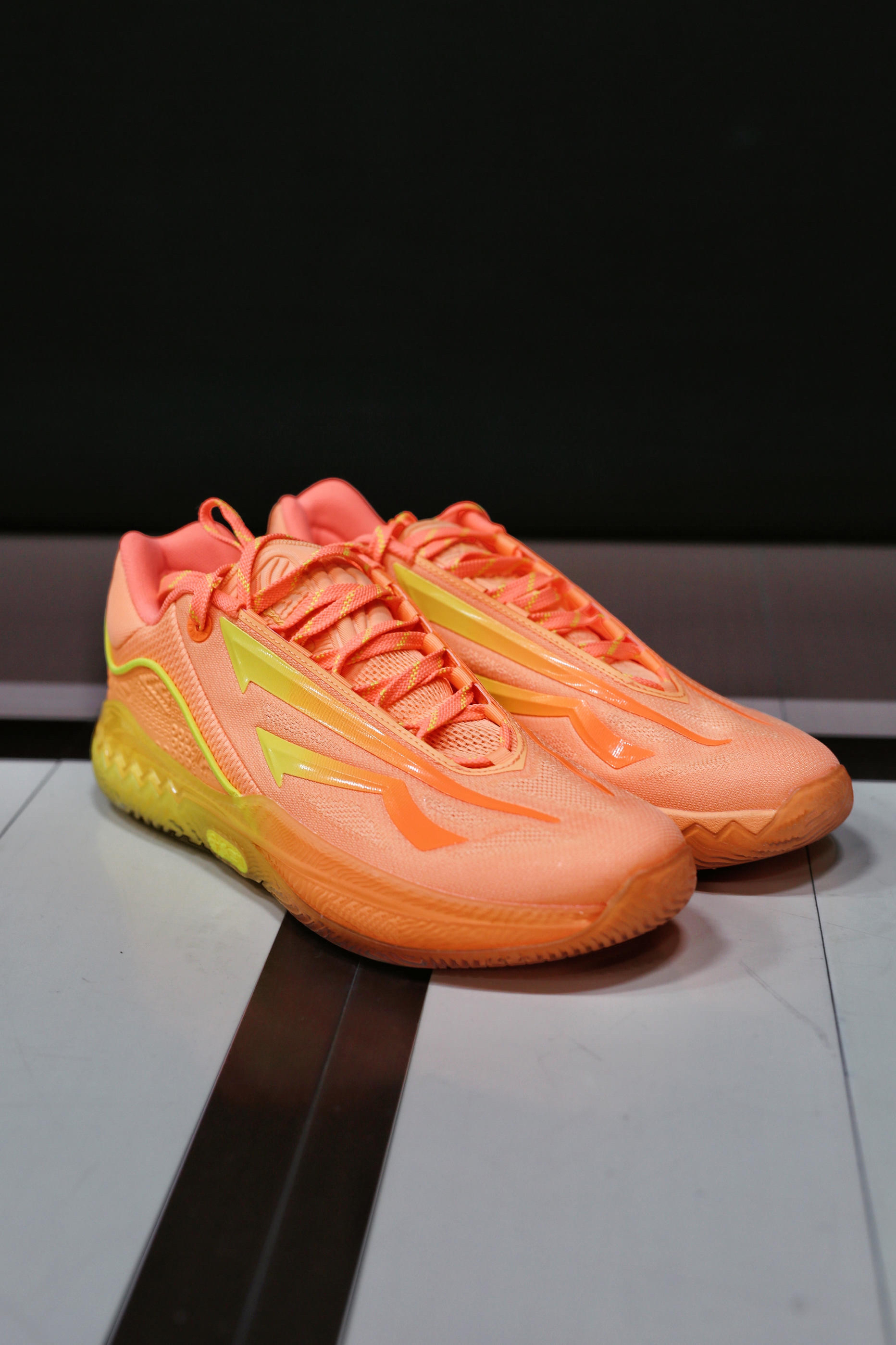 安踏欧文先驱二代即将上线新配色-曜日 带点粉的橙色配合柠檬黄渐变让这鞋身相当亮眼 让你穿着它在球场上想低调都难 配合变向晃瞎对手吧
