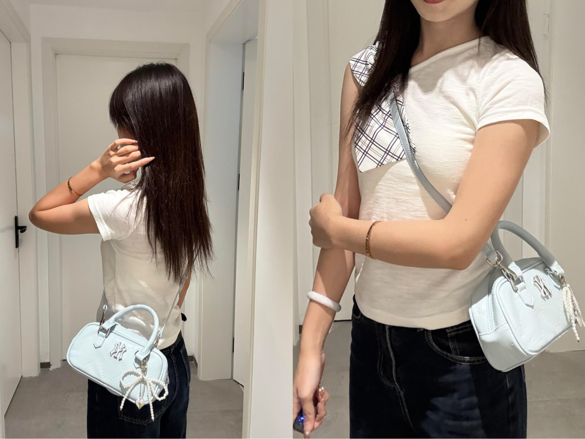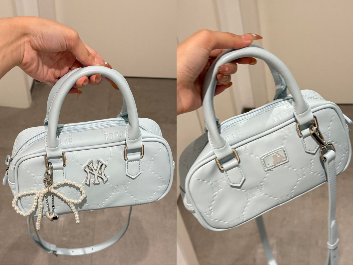 入手这款MLB包啦,淡蓝色超清新,暗纹压花精致,手提斜挎都好看。容量装钥匙、口红这些小物件没问题,自重轻背着不累。不过装太多东西会有点鼓,影响精致感~ 整体很适合夏天搭配,日常出街实用又吸睛✨