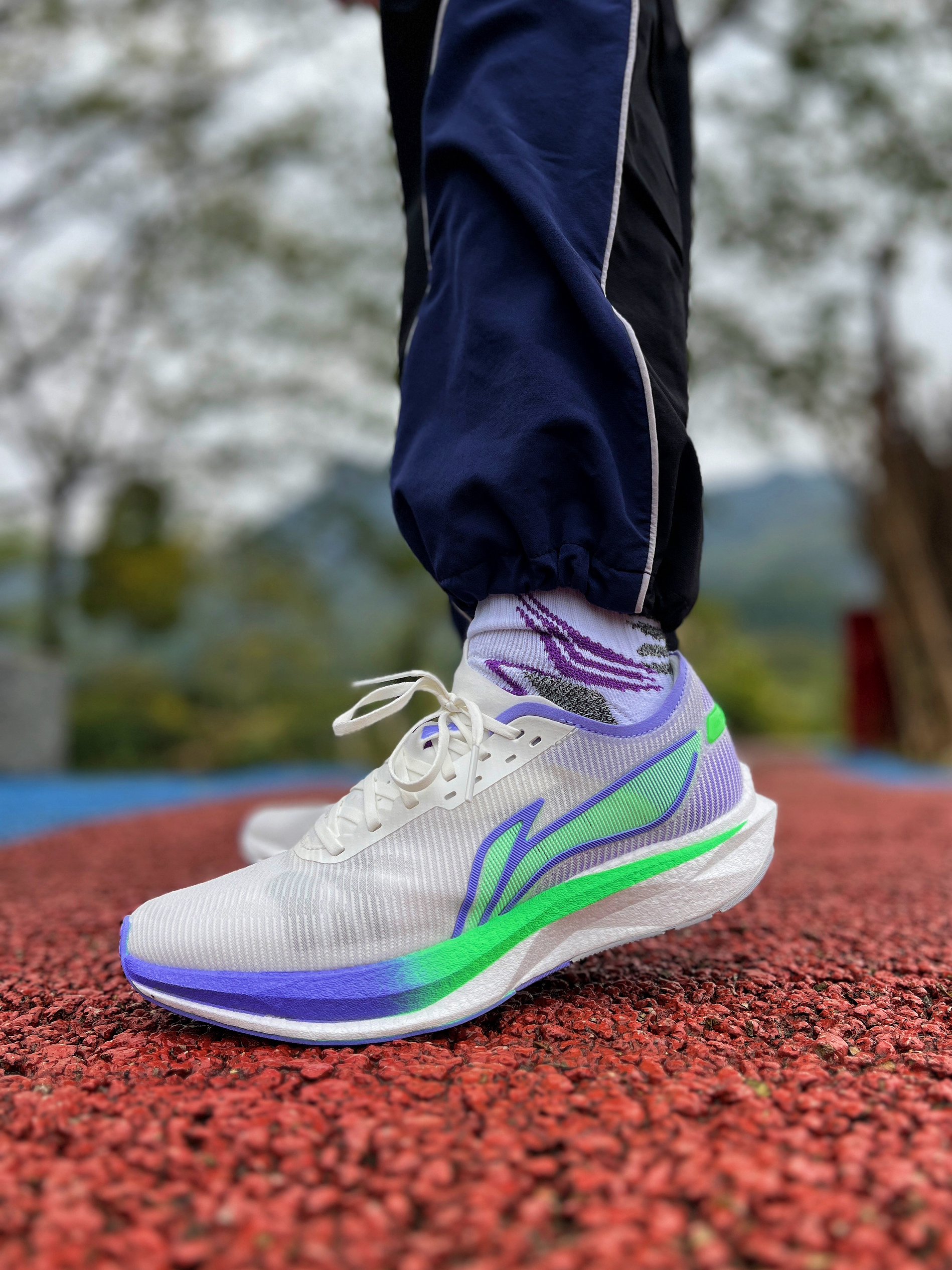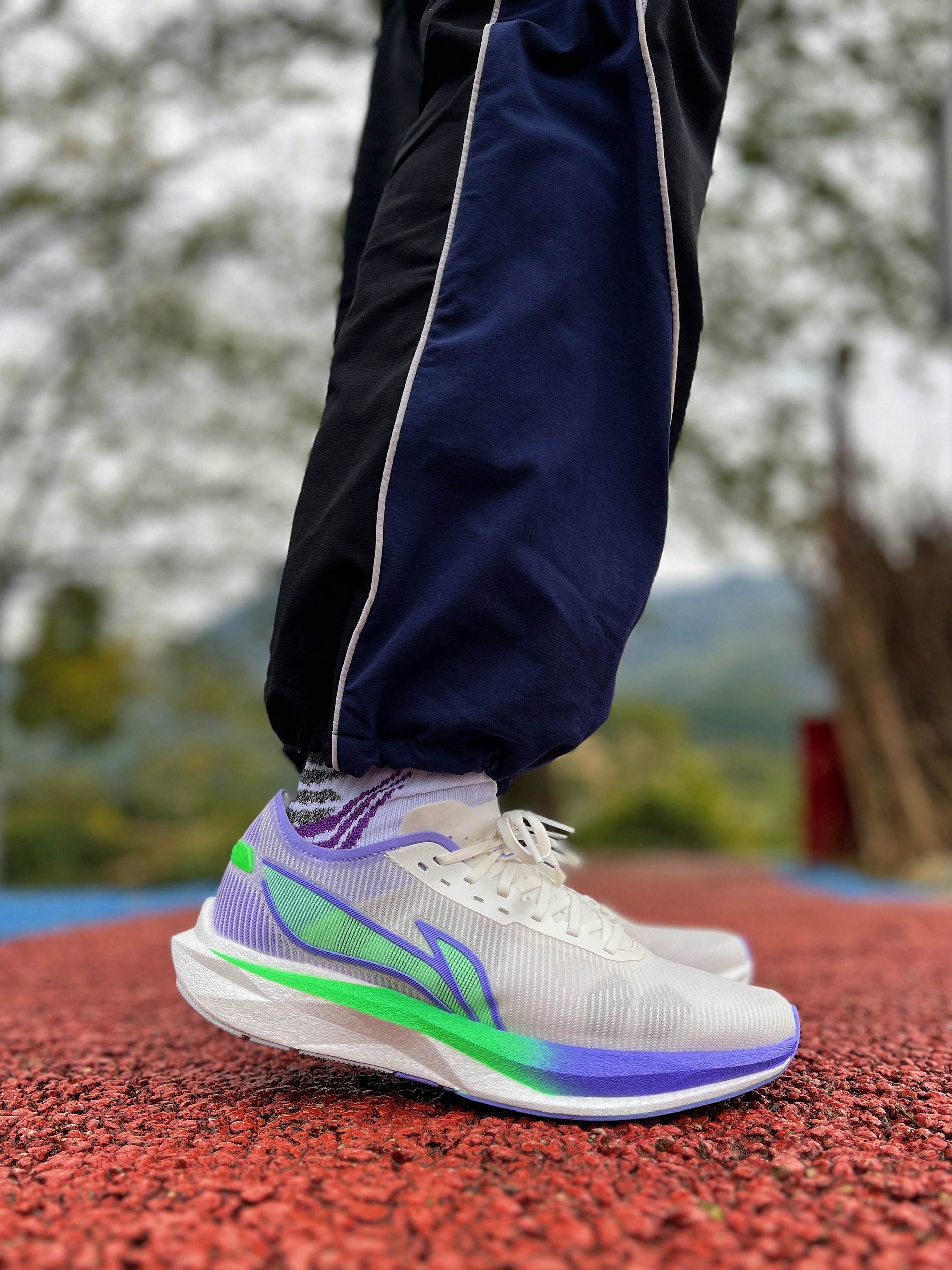 嗨~大家好!今天给大家上脚李宁追风跑鞋~中底是全掌䨻科技加聚核芯配置,跑起来又稳又弹,回弹特别快,提速效果超棒! 外底抓地力很给力,这双鞋更适合在塑胶场地上用来竞速或者日常训练,实用性拉满~