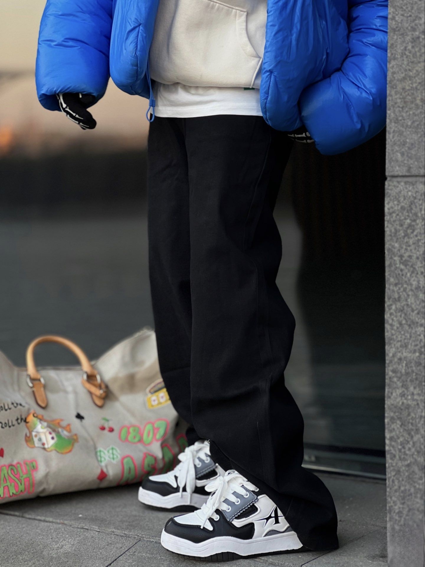高街选手真的一直在线! 冬日穿搭效果还是我喜欢的那个样子! 叠穿卫衣和棉服 廓形感潮流感都拿捏住了! 选择黑色直筒长裤撞色感与百搭感都稳住了 拖地长度效果与面包鞋拼接选择 这样的美式高街你觉得怎么样?