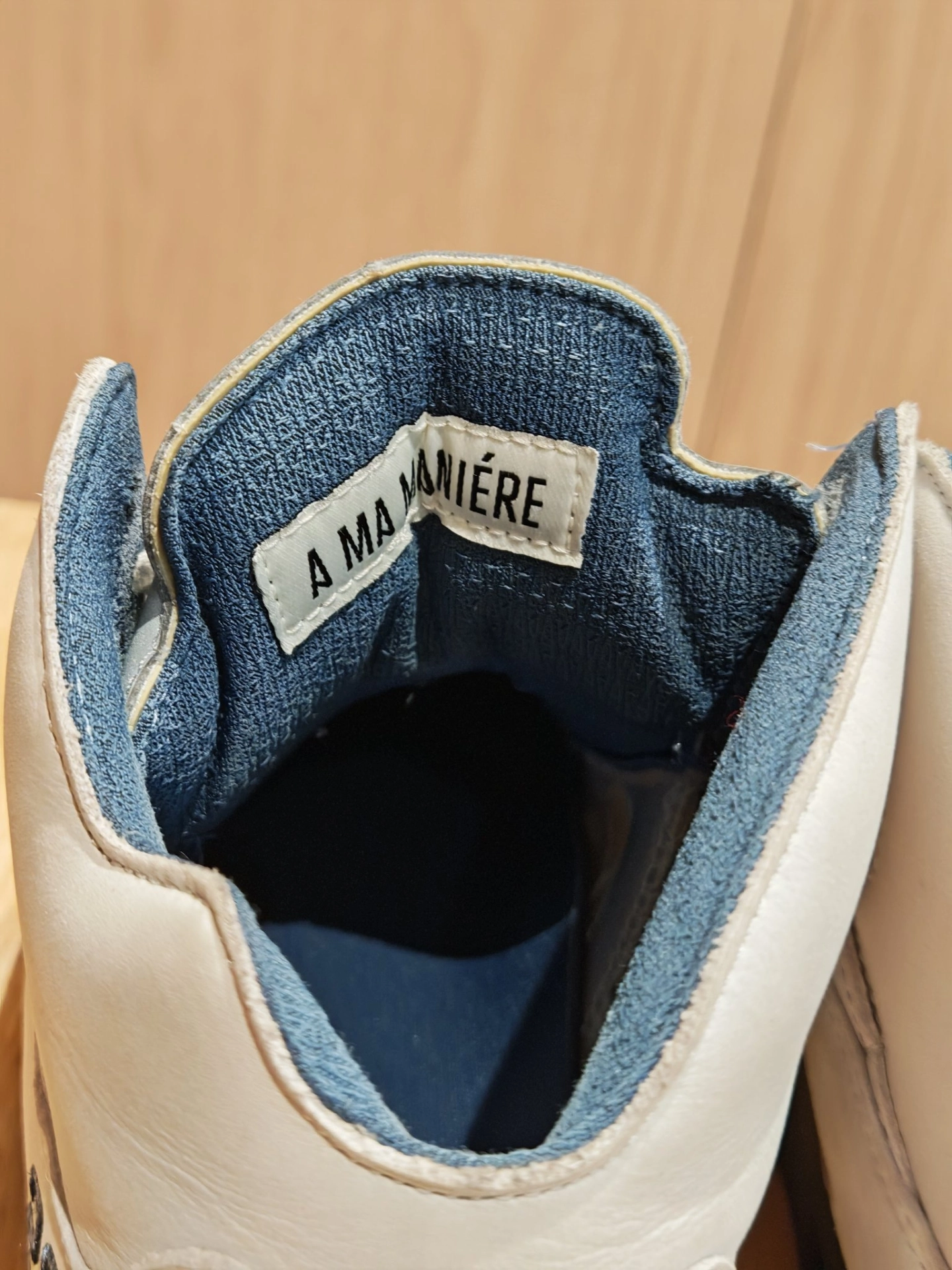 A MA MANIÉRE x Jordan Air Jordan 5 "Photon Dust" 做旧米白是我很喜欢的通勤鞋,不知道是不是因为名字里本来就带“尘土”,它沾了些自然的灰后居然更有感觉了,浅黄细节和蓝黑点缀慢慢融出旧感,裤脚扫过的脏痕倒衬得复古味更足了。 #复古球鞋收藏家