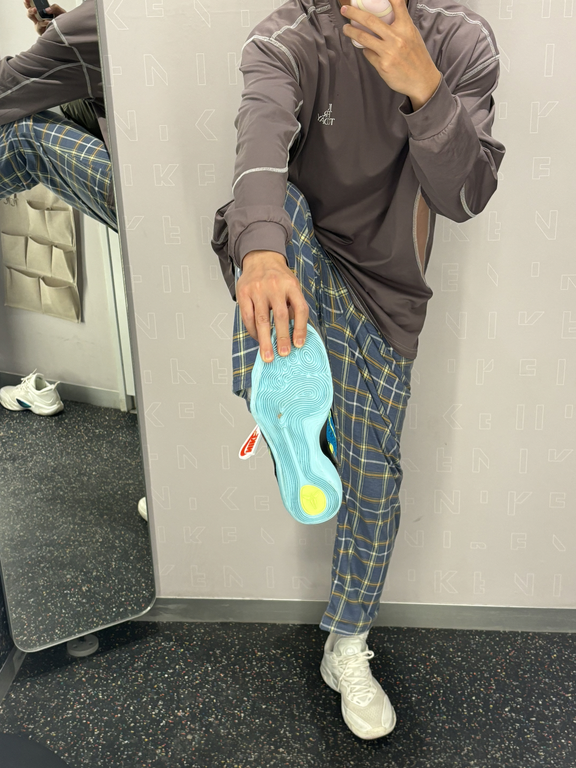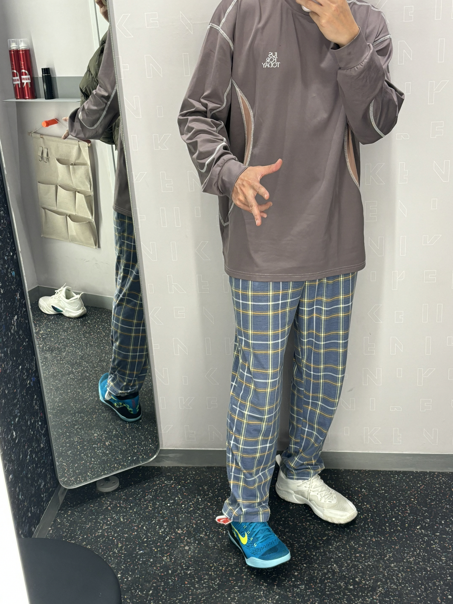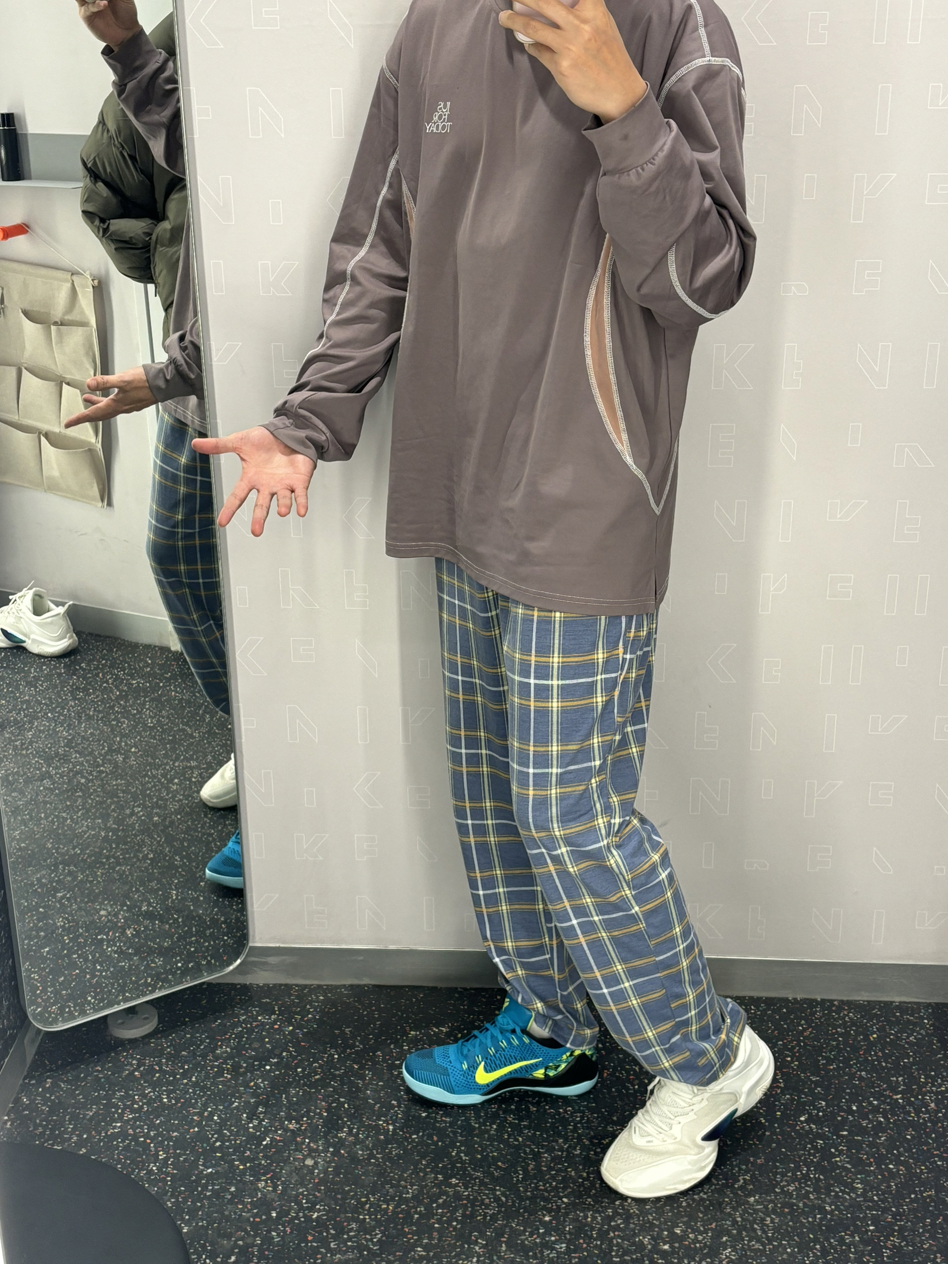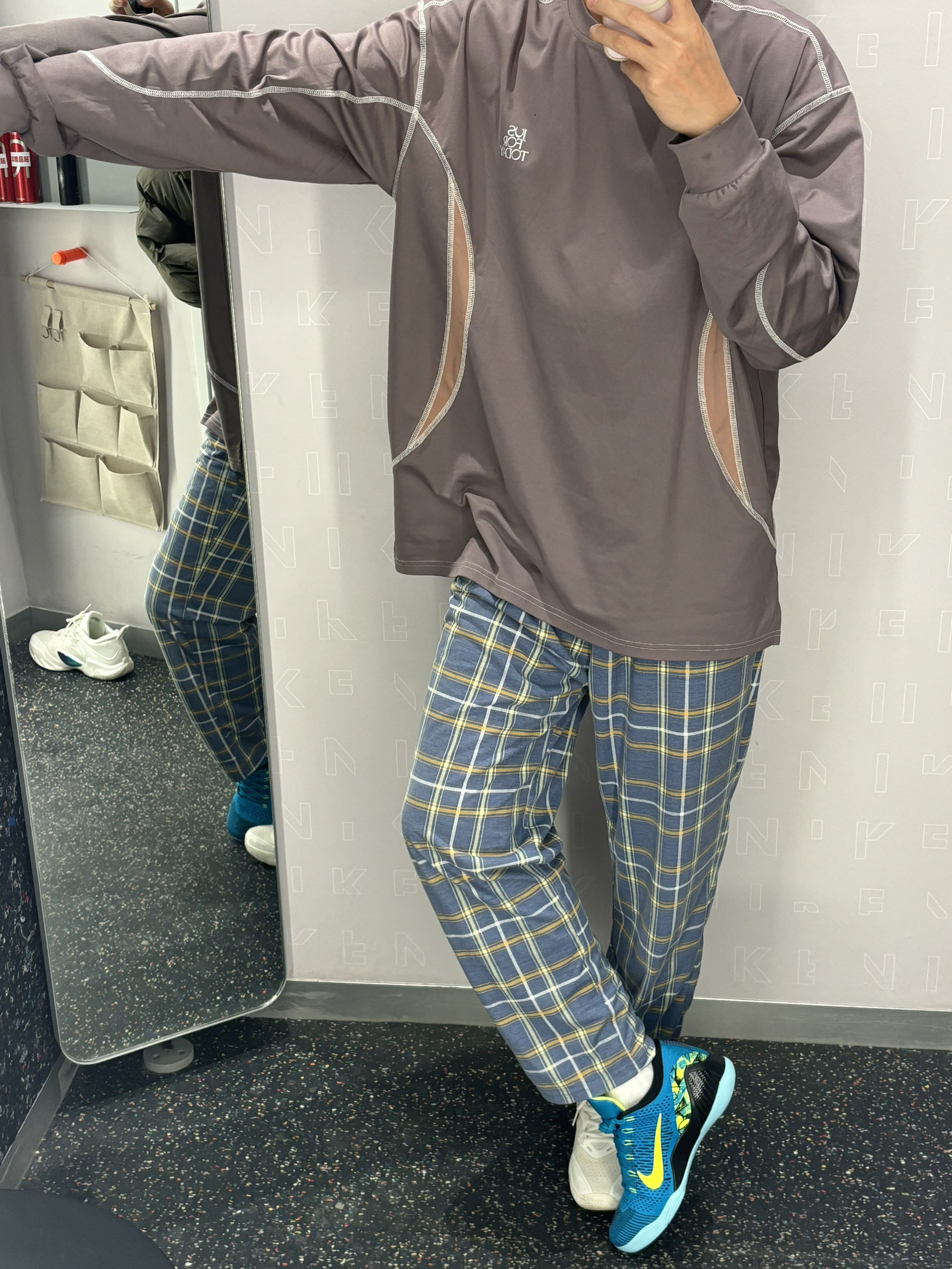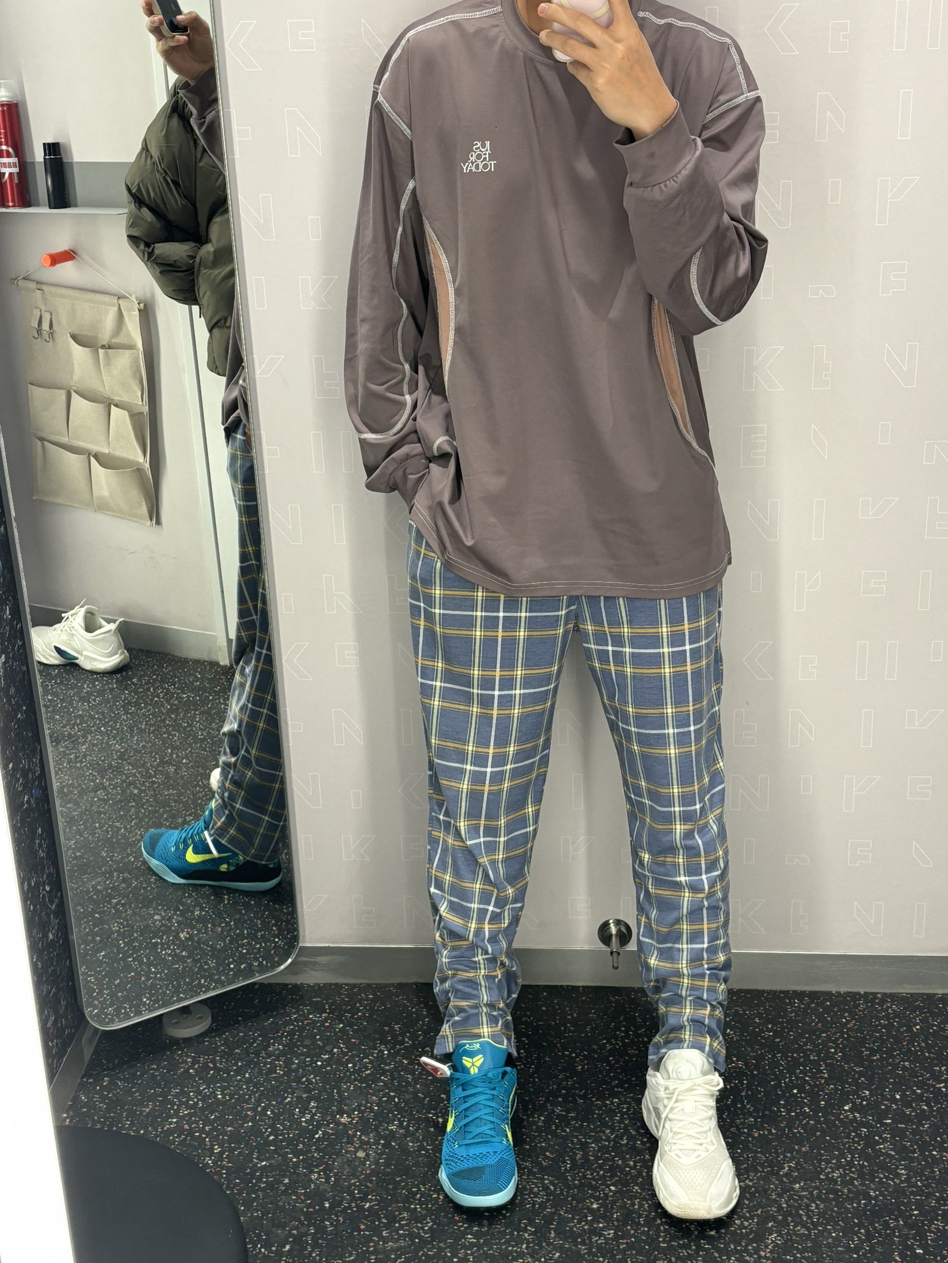 我的年度穿搭关键词就是chill风 我的内搭核心就是它了 难道就是这件投篮服吗 👔棕褐色还是很百搭的 他是棉和聚酯纤维的有一定弹性 又不会起静电⚡️还比较保暖 👖搭配一条简单直筒的格子长裤就行 很休闲的chill风不失高级感 👟科比9绿松石收尾就行
