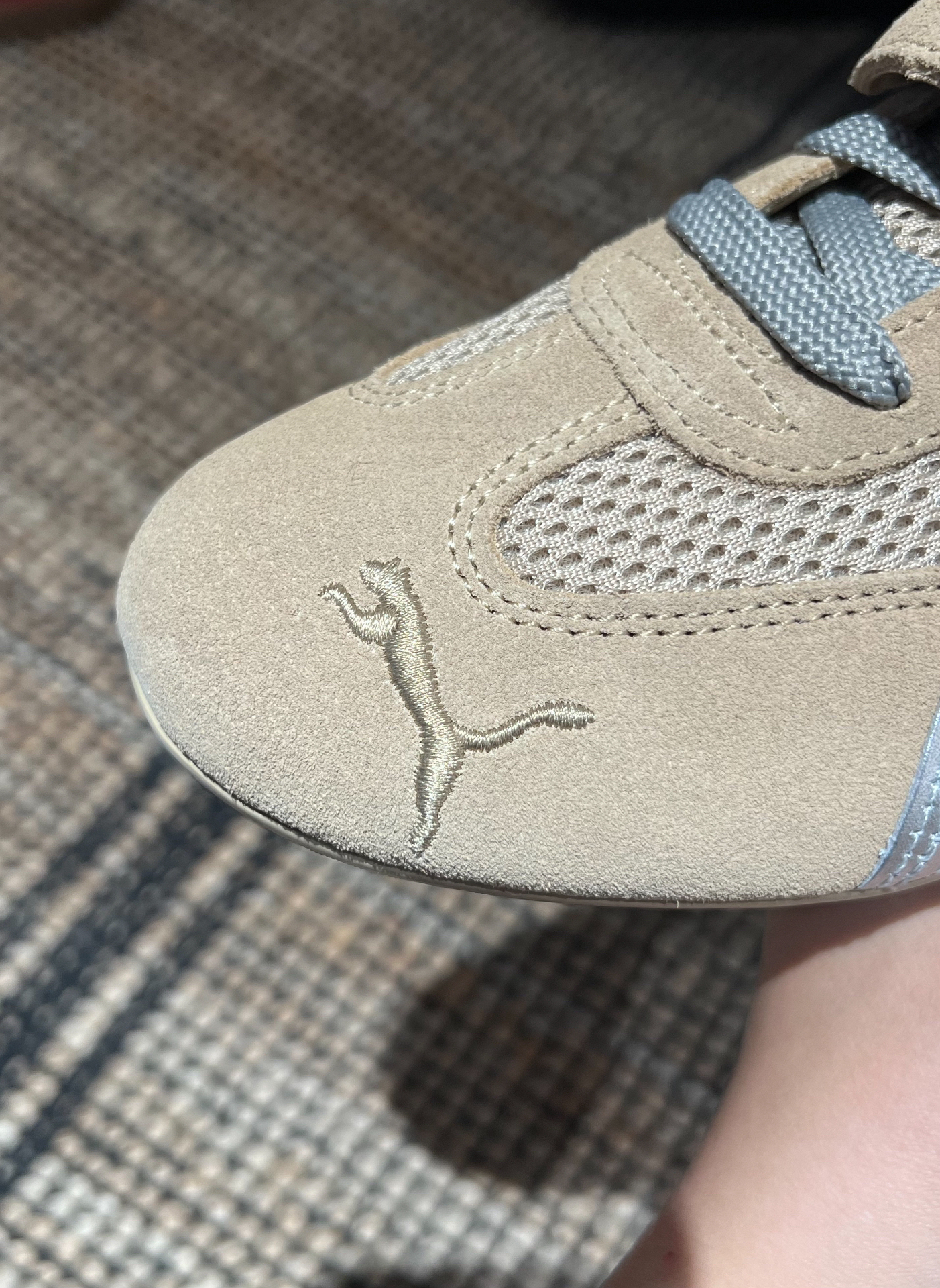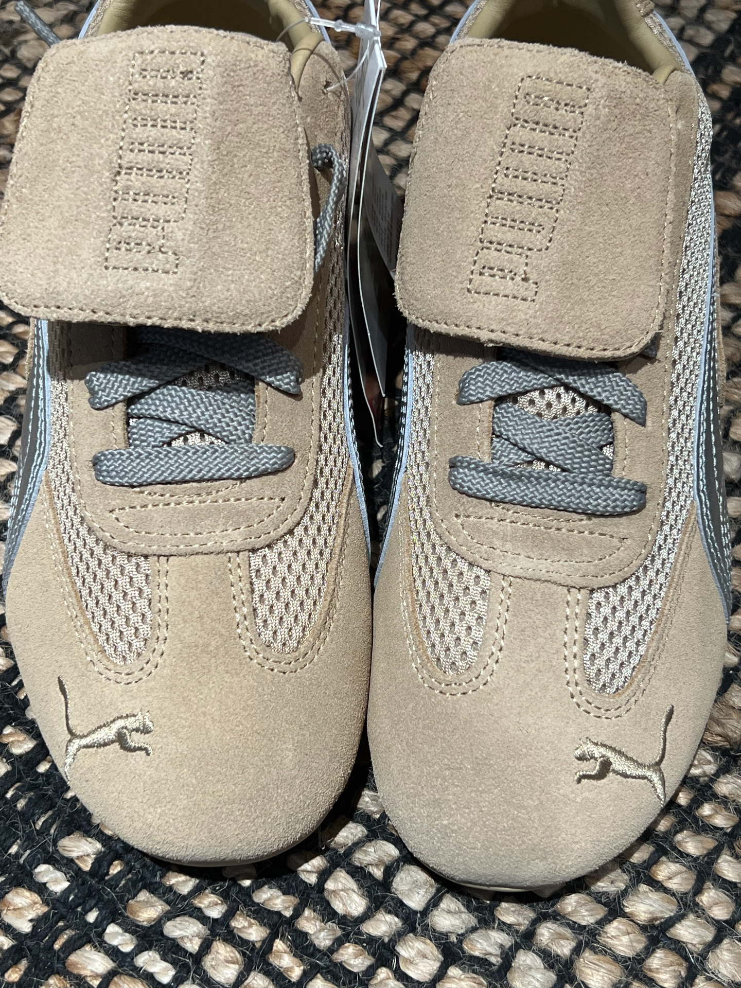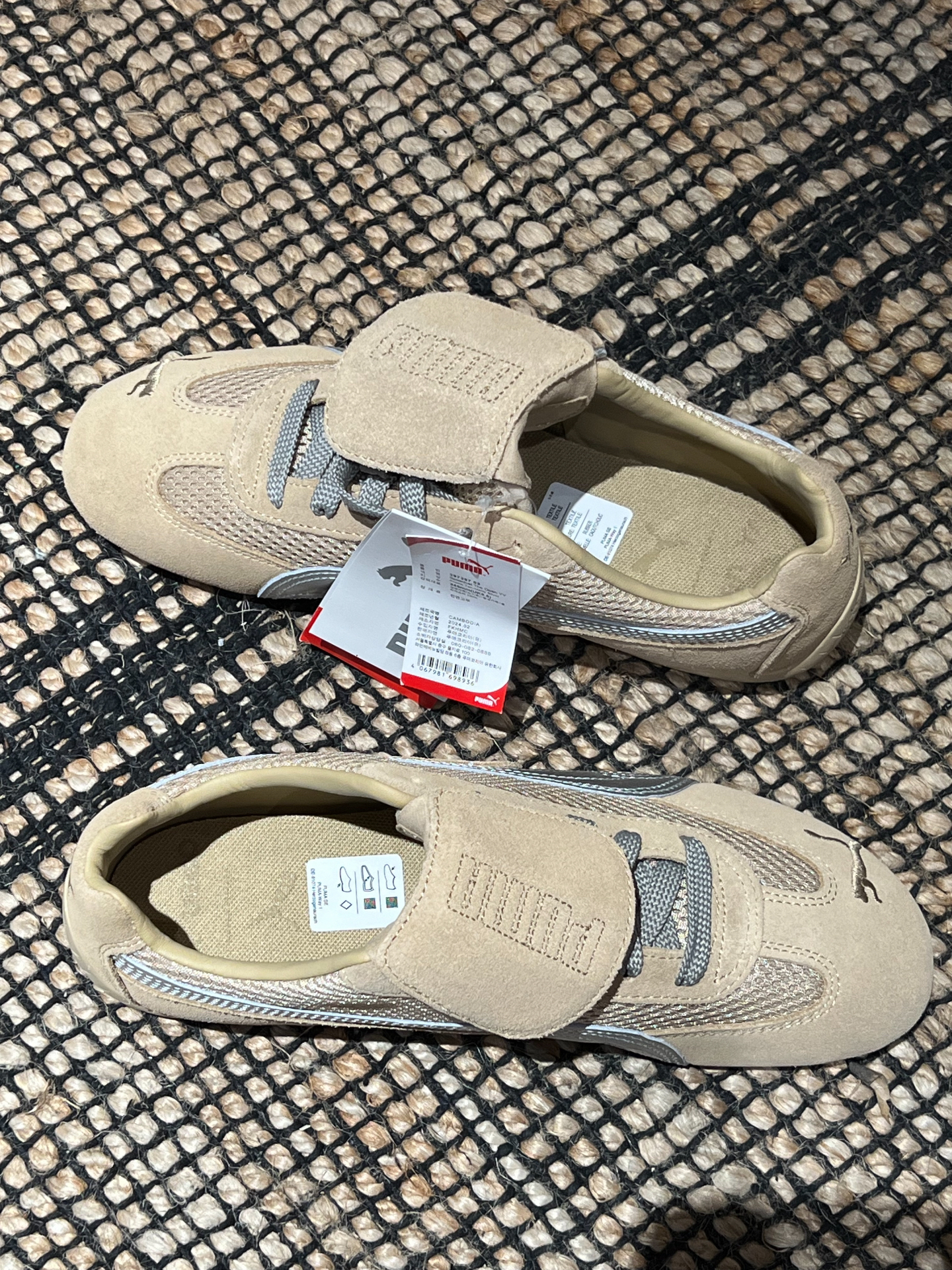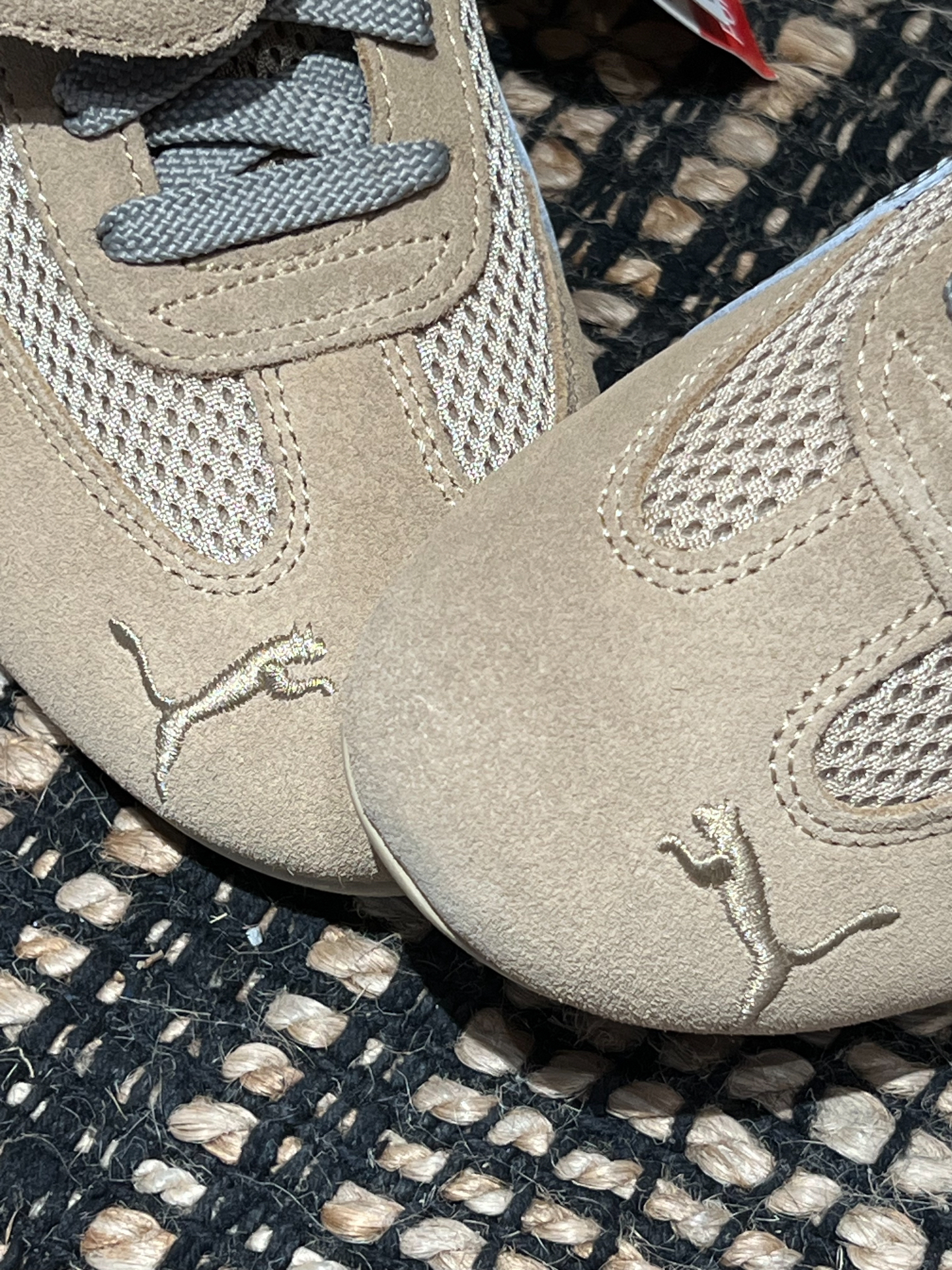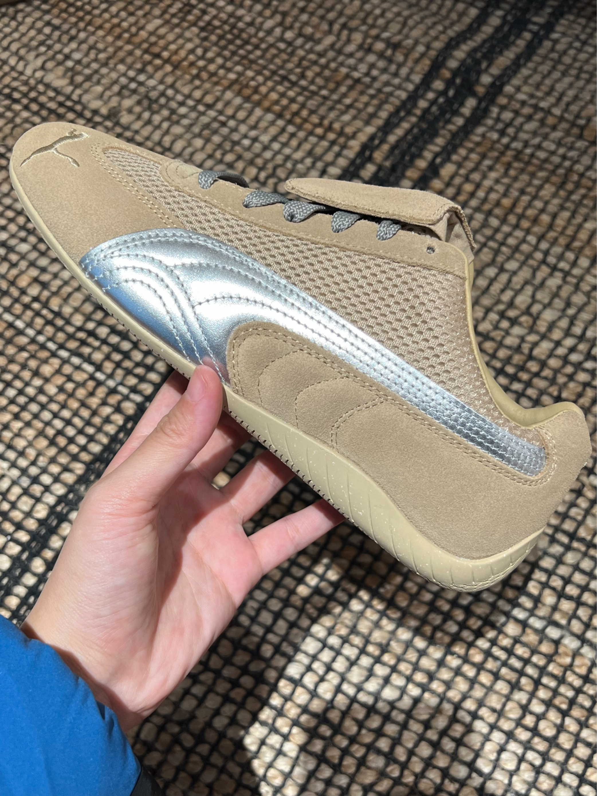 Puma Speedcat x Open Yy 继Samba以后复古鞋型的爆火,Puma老款鞋型 Speedcat的热度也居高不下,尤其是与 Open Yy的联名,各大明星潮人纷纷上脚演绎 外面材质是翻毛皮的,搭理起来稍微有点麻烦,但架不住帅!后跟是两个不同的刺绣侧边是银色的小豹子logo 超喜欢这种小巧思! 脚感是很轻盈有点像穿芭蕾舞鞋很舒服,网面也很透气,个人感觉不偏码