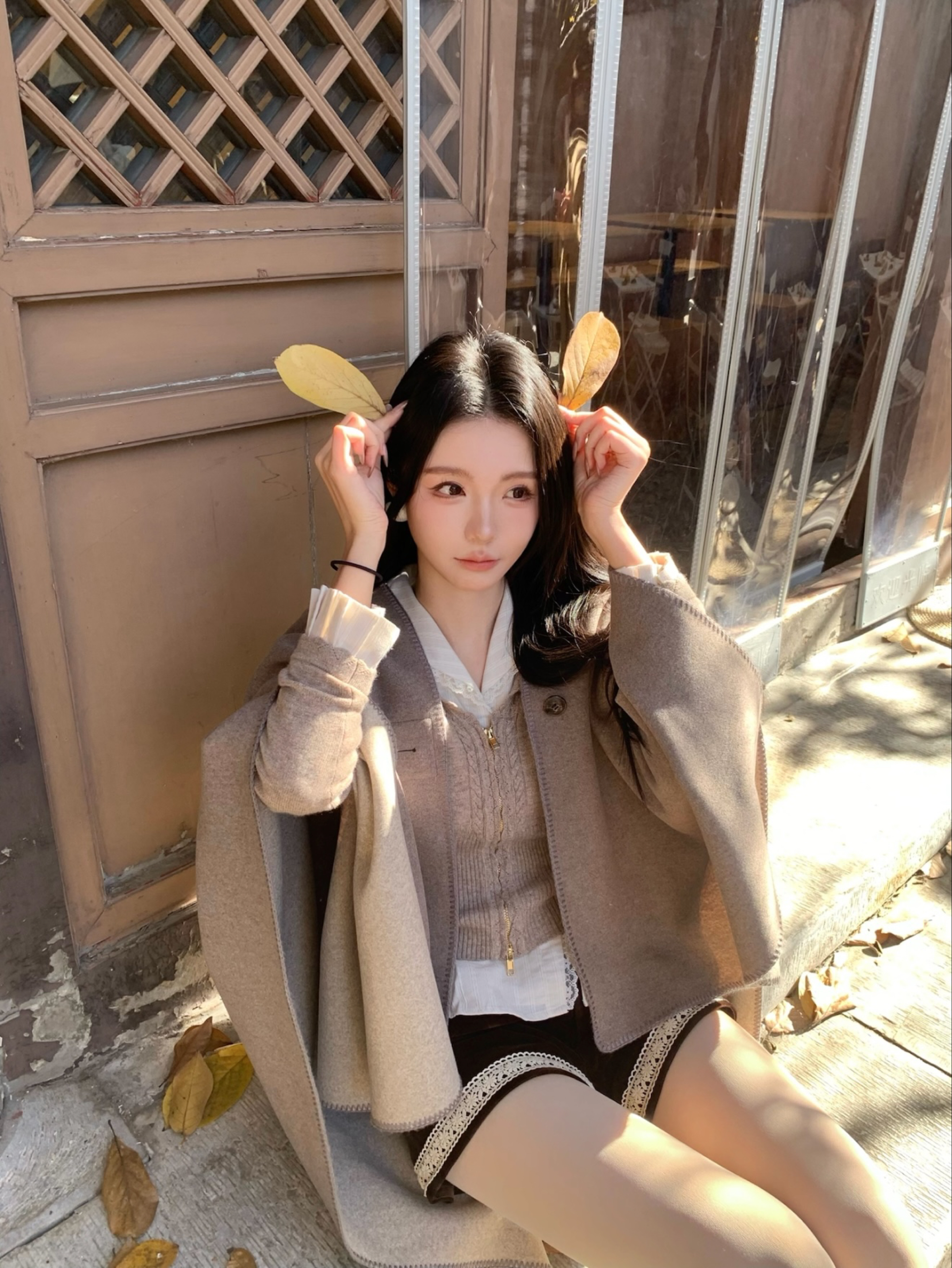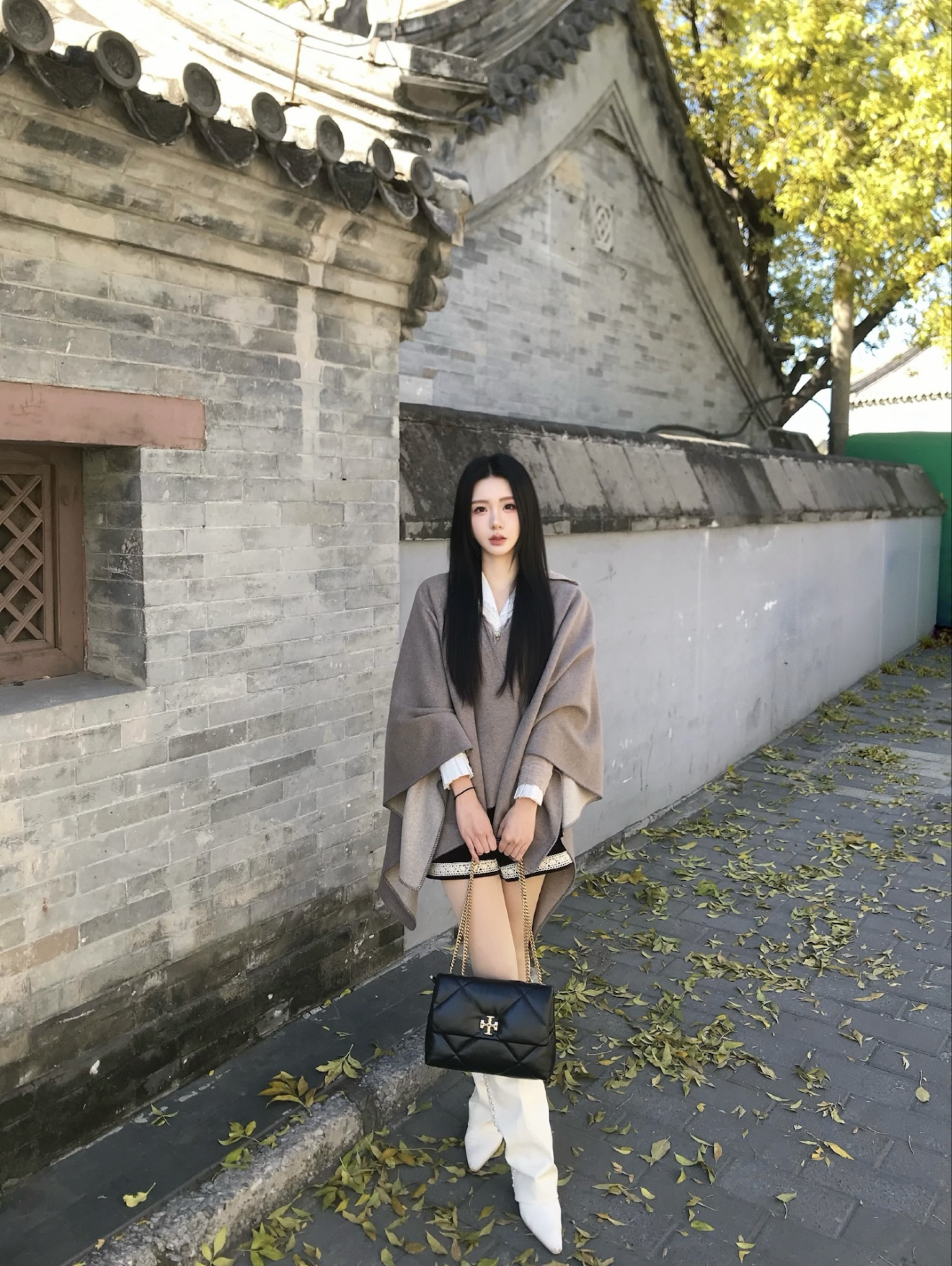 北京的秋天🍂真的美极了 金黄的树叶➕斗篷外套➕靴子 妥妥的韩剧女主那味有了