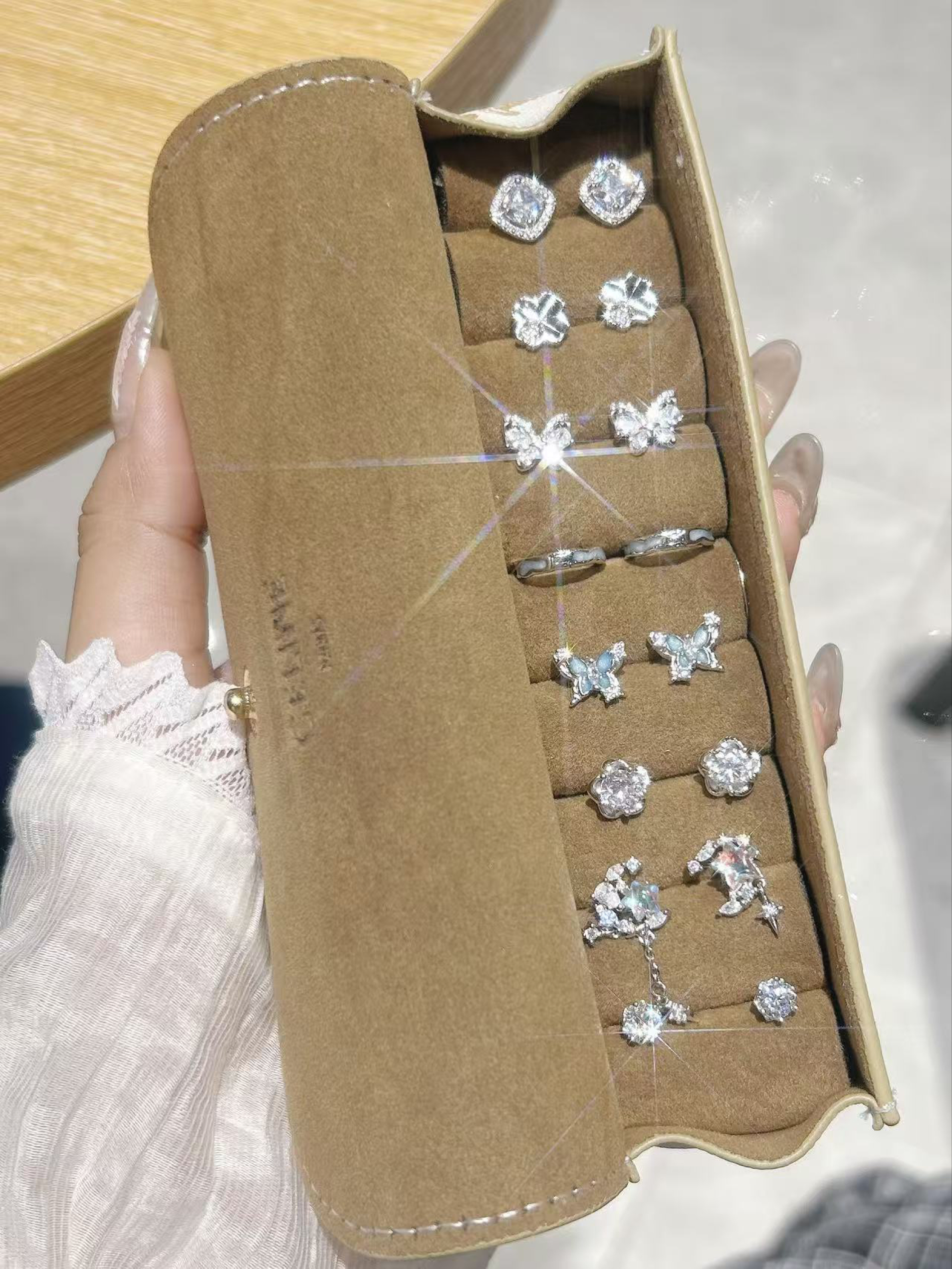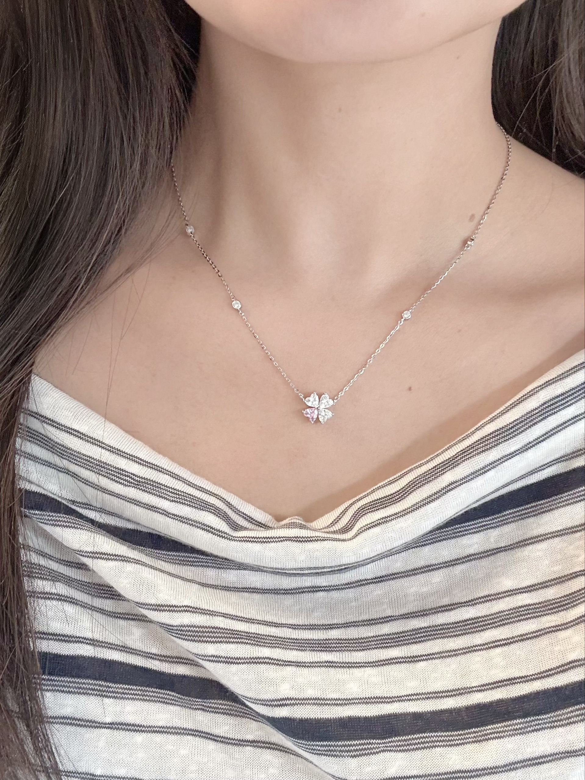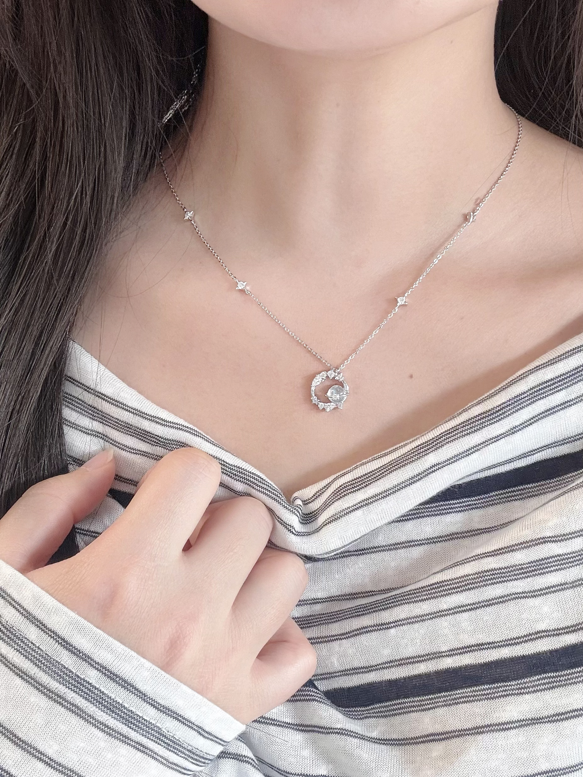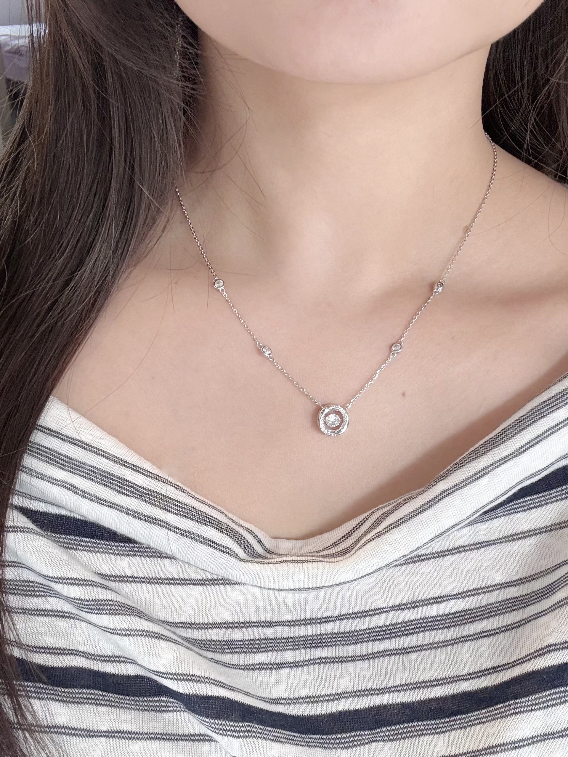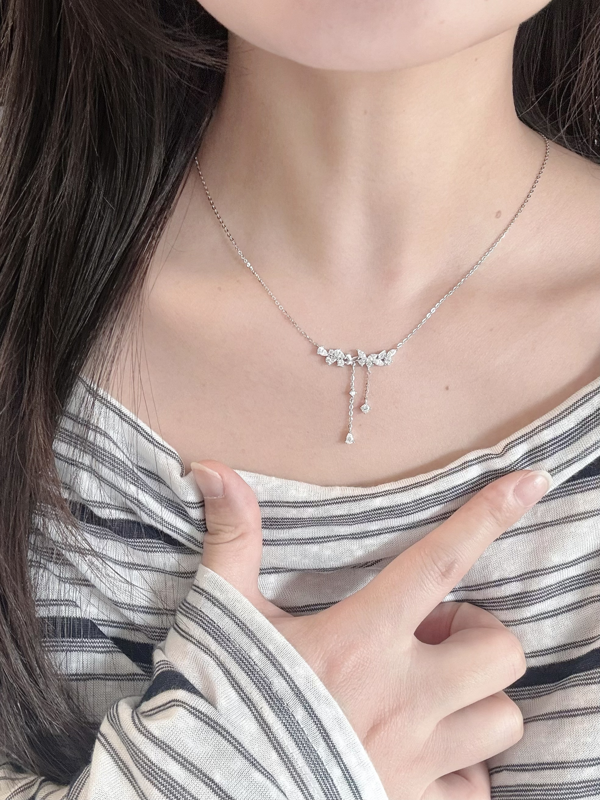 是我从夏天戴到冬天的项链耶 这几条都挺百搭的平时随便搭也好好看👀 有简约的也有流苏的…各有各的美啦 我觉得不管是穿一字肩上衣还是v领的都可以戴哦 在灯光下就是blingbling的很闪很精致 周末和姐妹逛街拍照戴着也挺出片啦~
