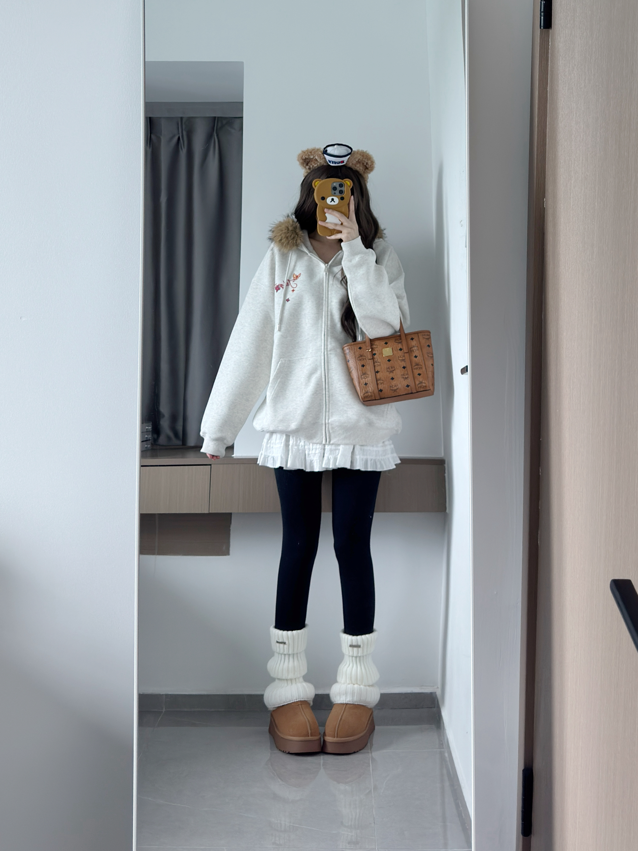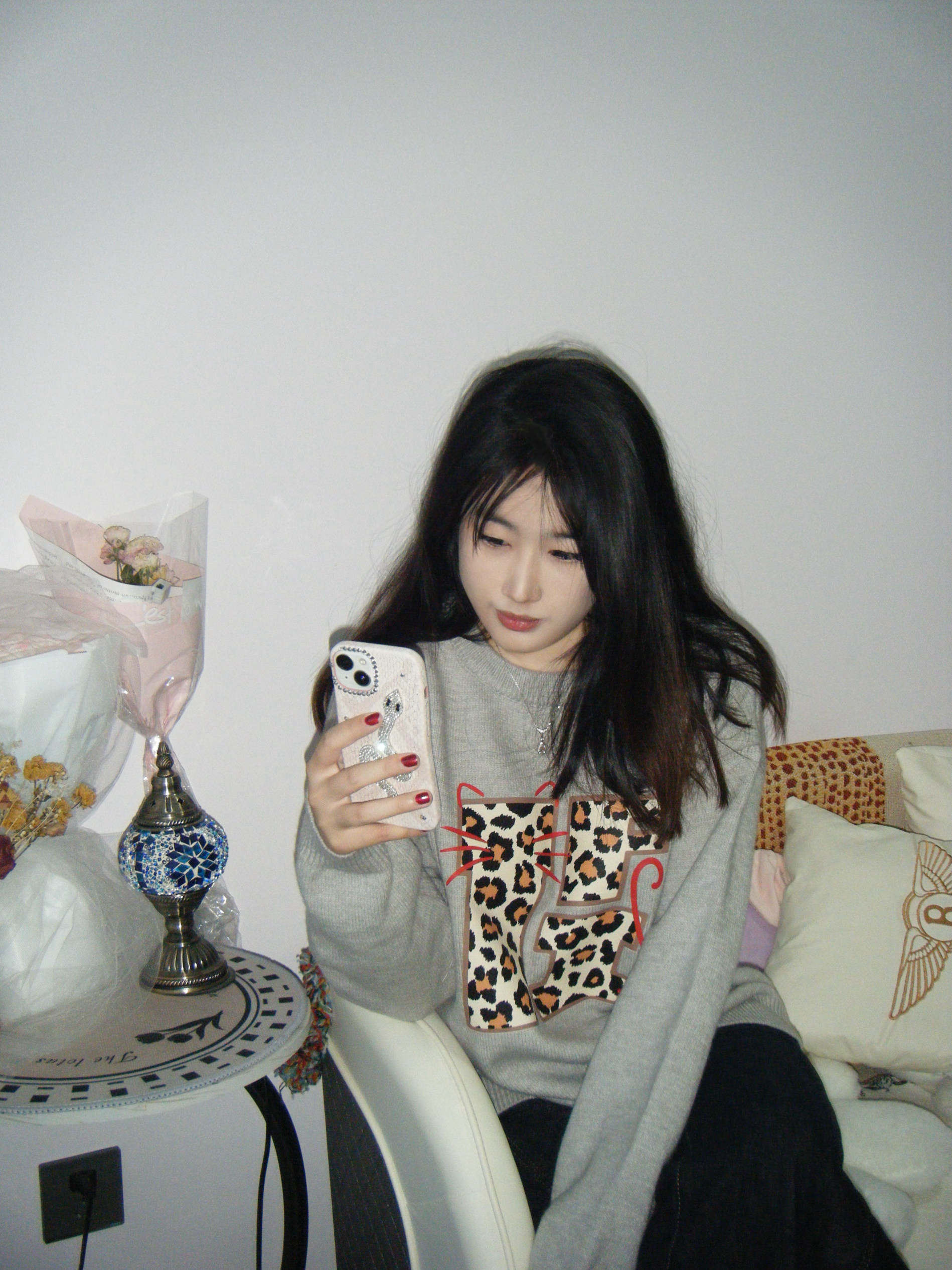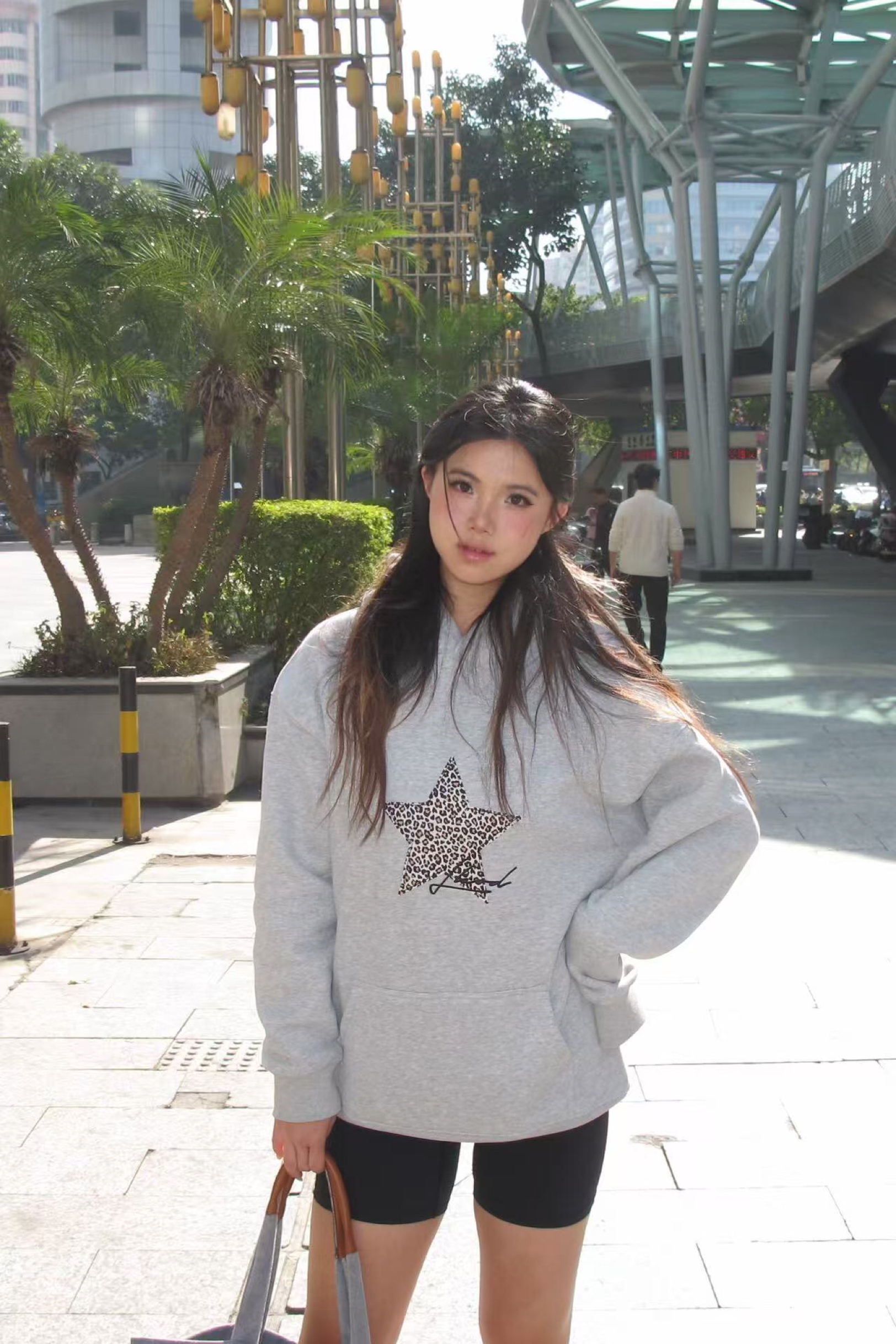 浅灰色卫衣太戳我啦!豹纹小猫图案又乖又有点小野性,配深色牛仔裤随性又舒服~ 宅家自拍或者日常出门都适配,软乎乎的面料裹在身上,慵懒氛围直接拉满~