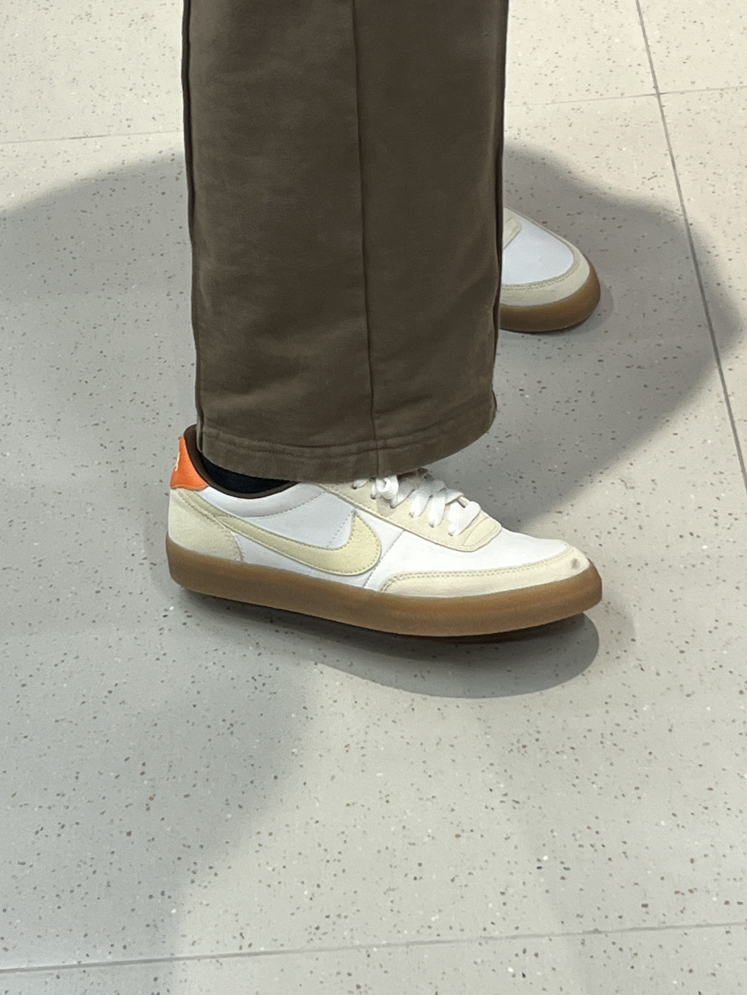 几年前买过普通款的killshot穿了几年都没坏,这次属于回购啦,一款看似普通但是又很有实力的板鞋,好看百搭! 这双鞋显脚长,脚部包裹感好,穿着我也不累脚,而且重点是很百搭,对我这种打工人来说真的很友好了,不用每天想着穿这么搭配!!!美得很🤭